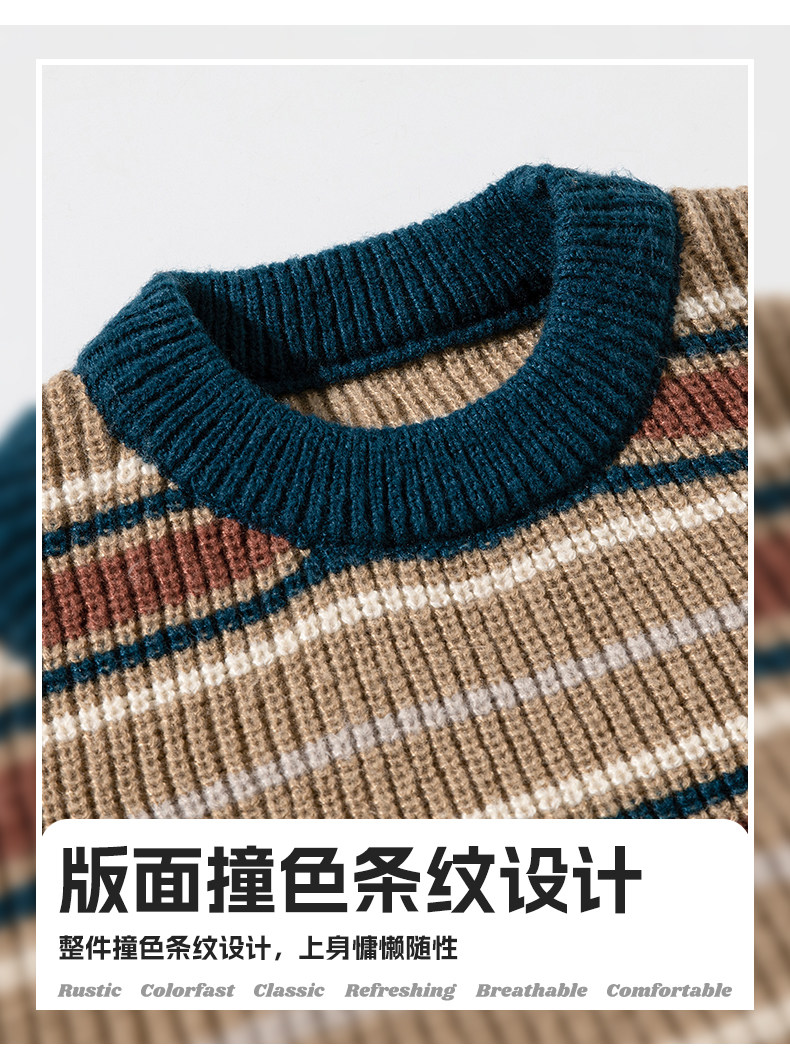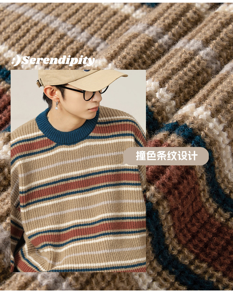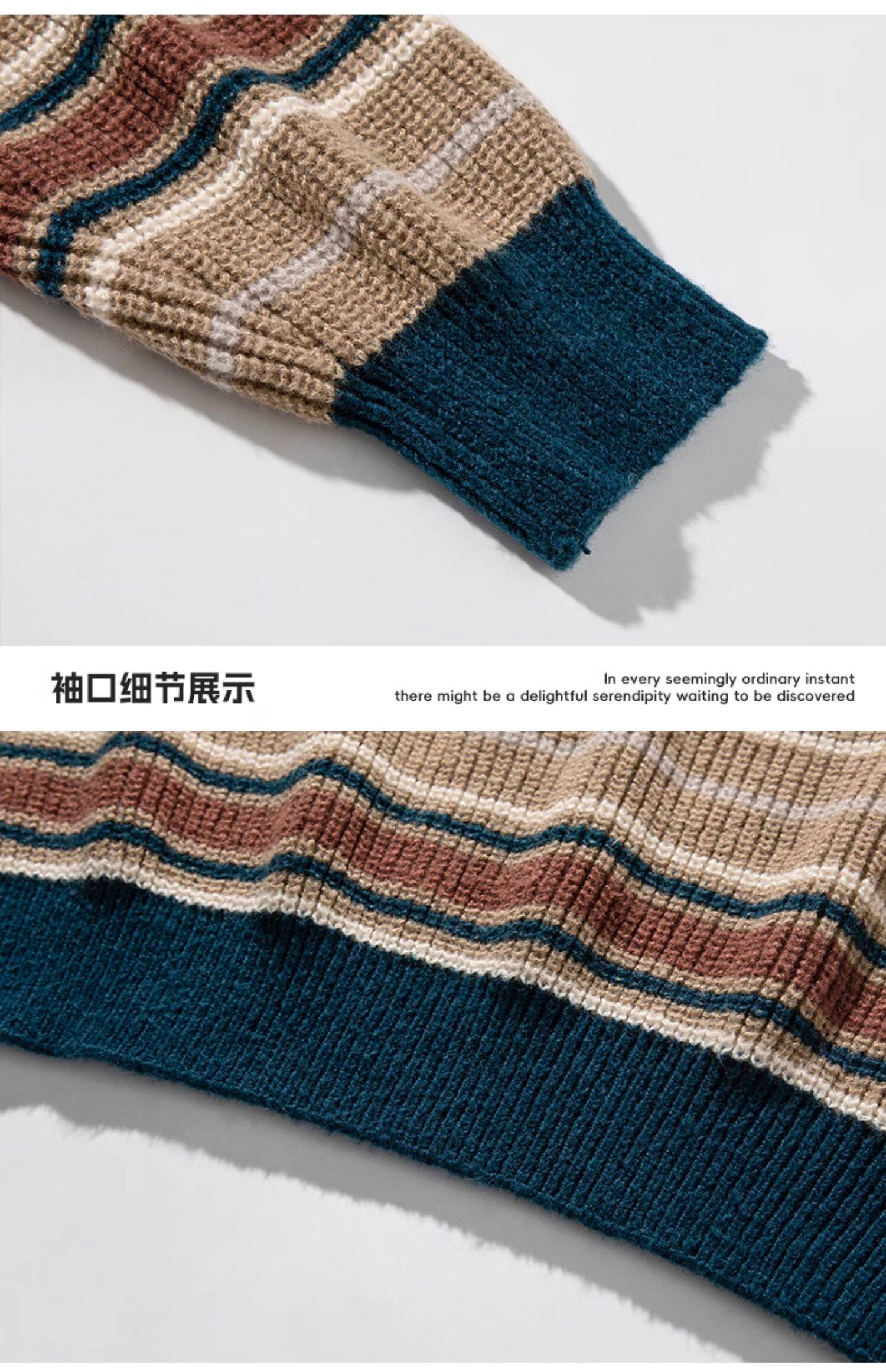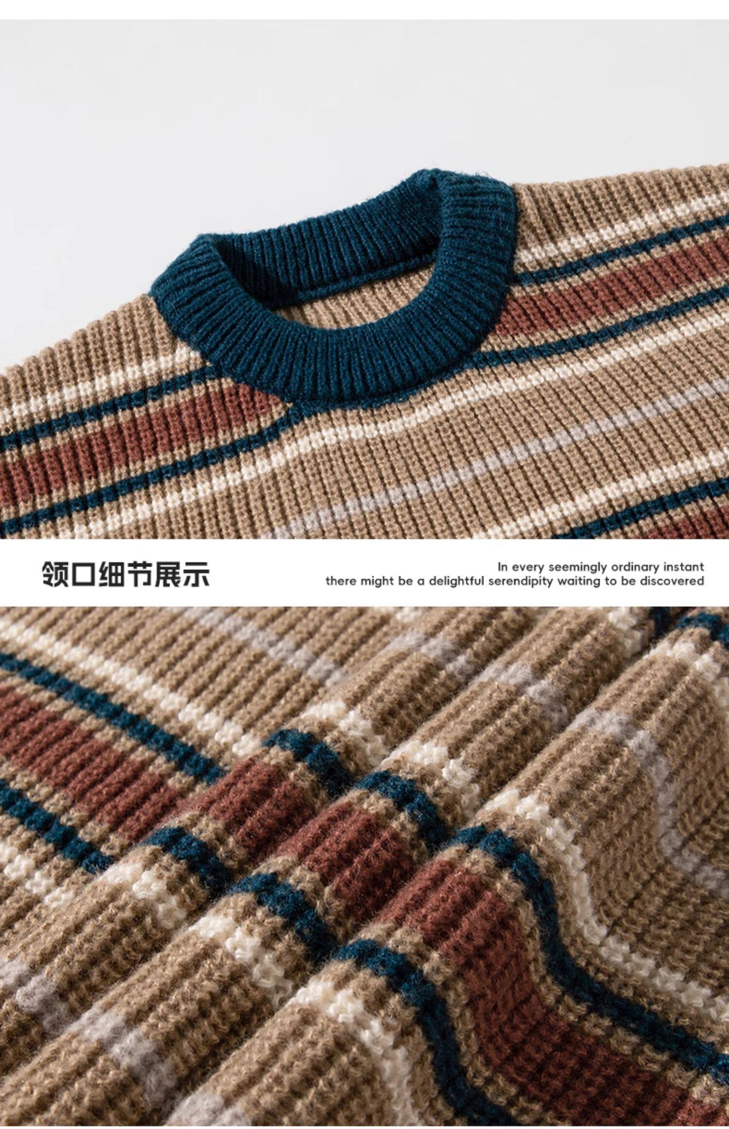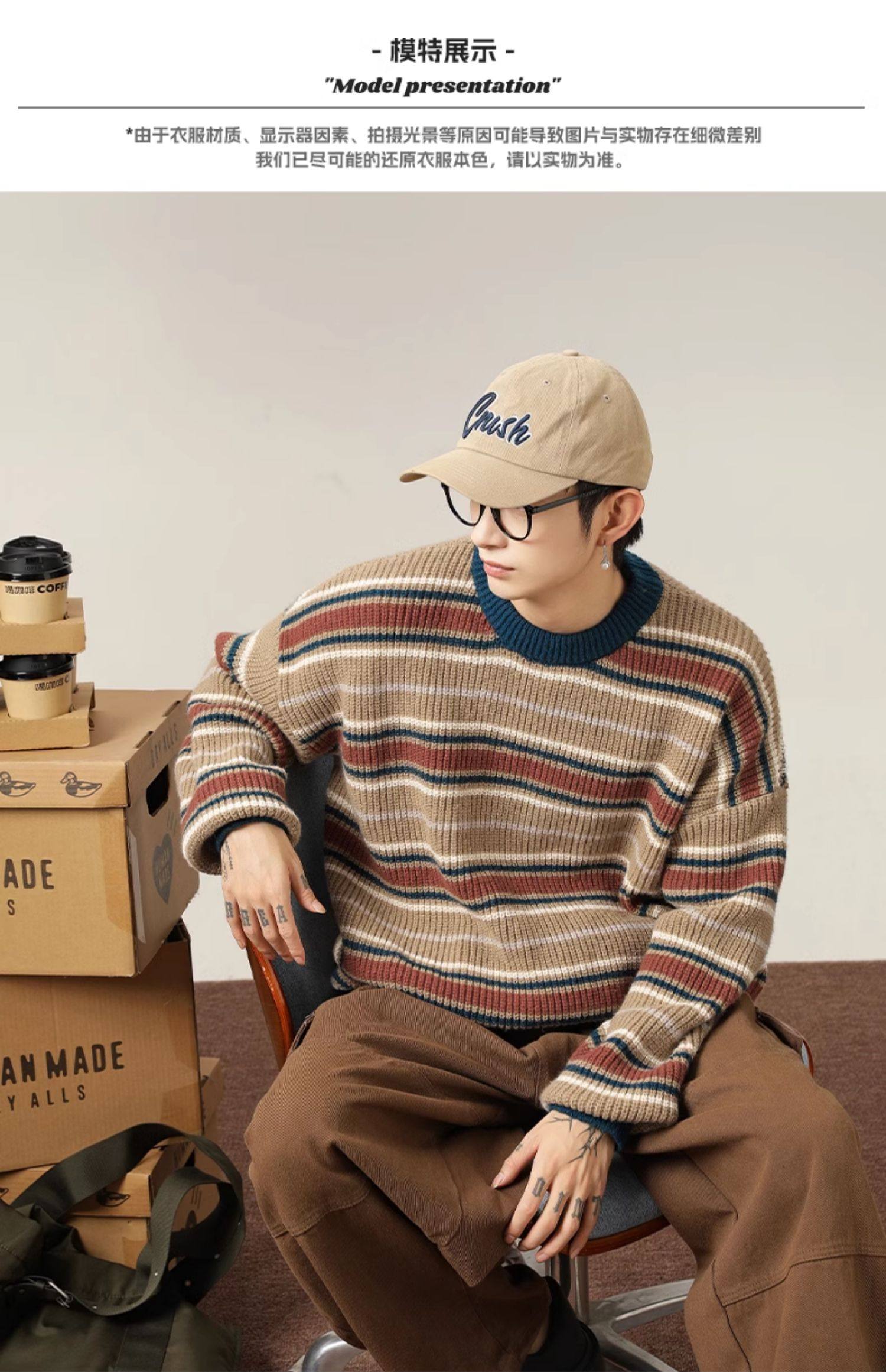 WASSUP ISSUE美式圓領針織衫男款秋冬季高級感痞帥復古條紋毛衣男