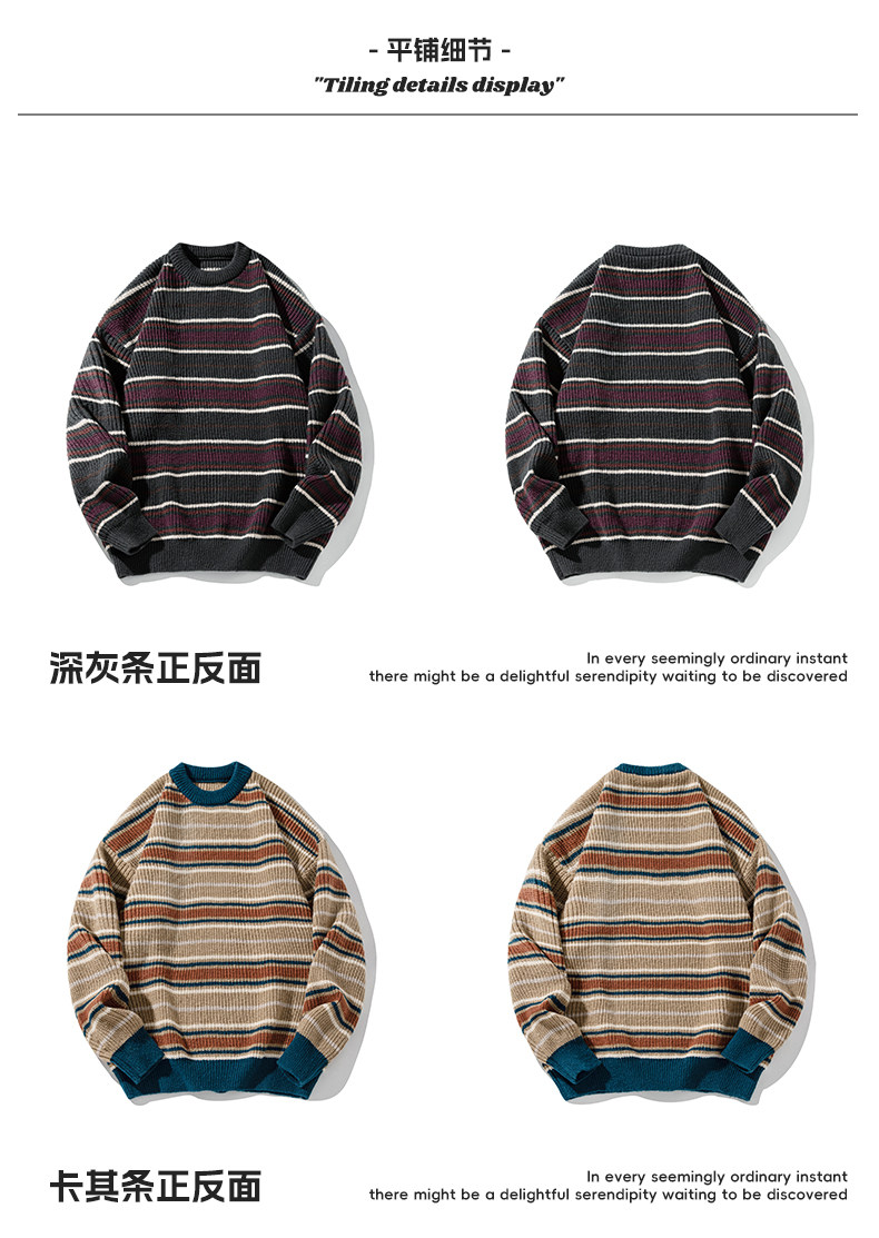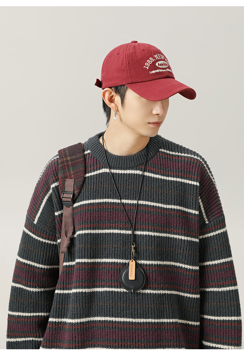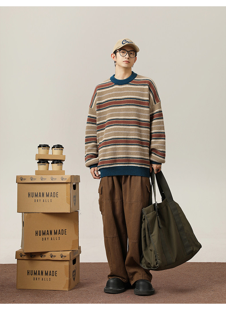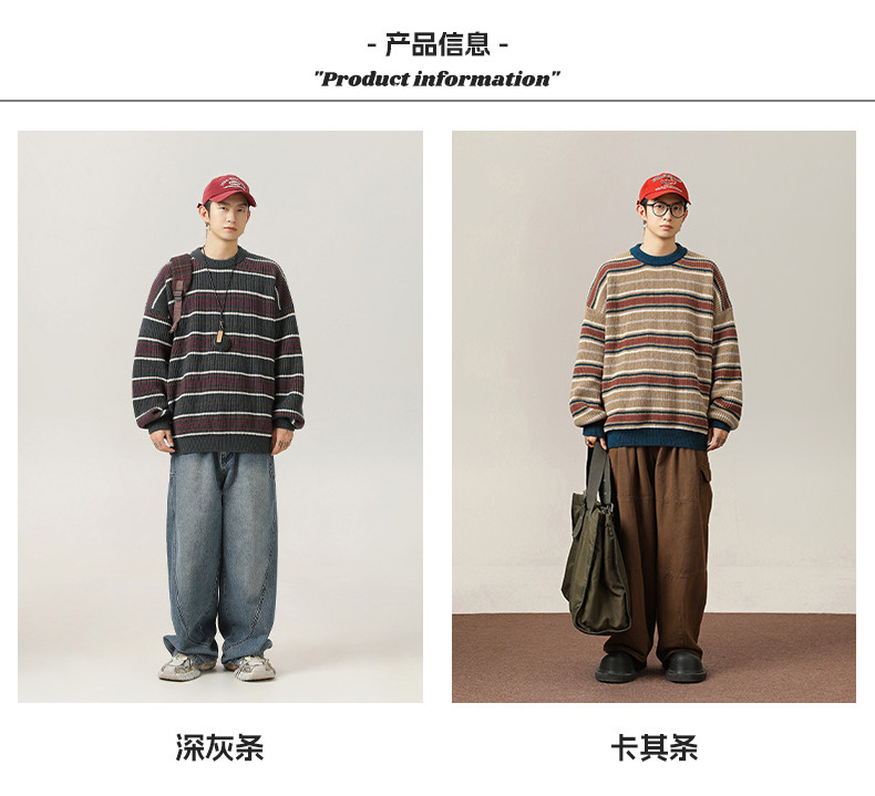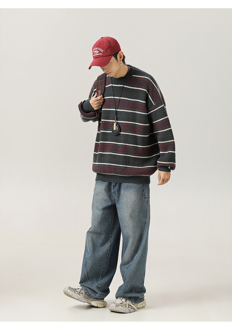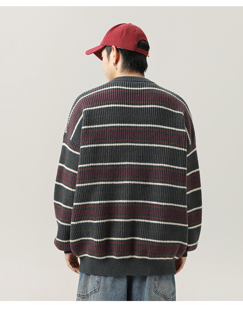 WASSUP ISSUE美式圓領針織衫男款秋冬季高級感痞帥復古條紋毛衣男