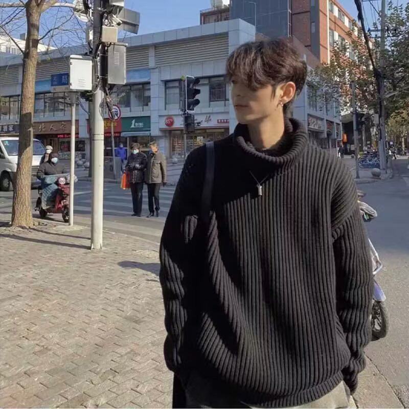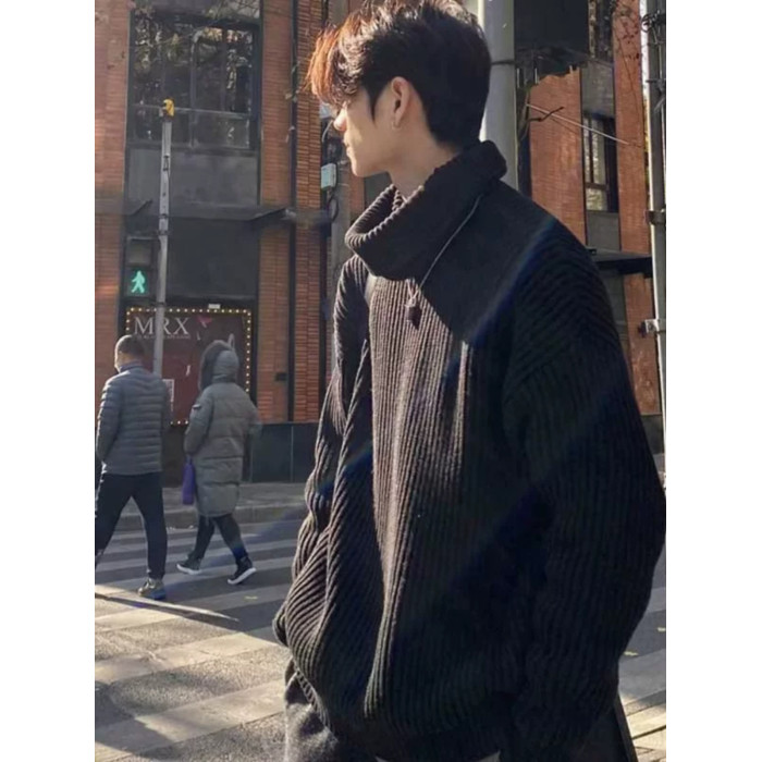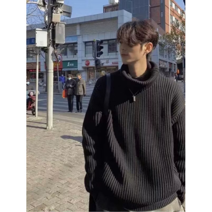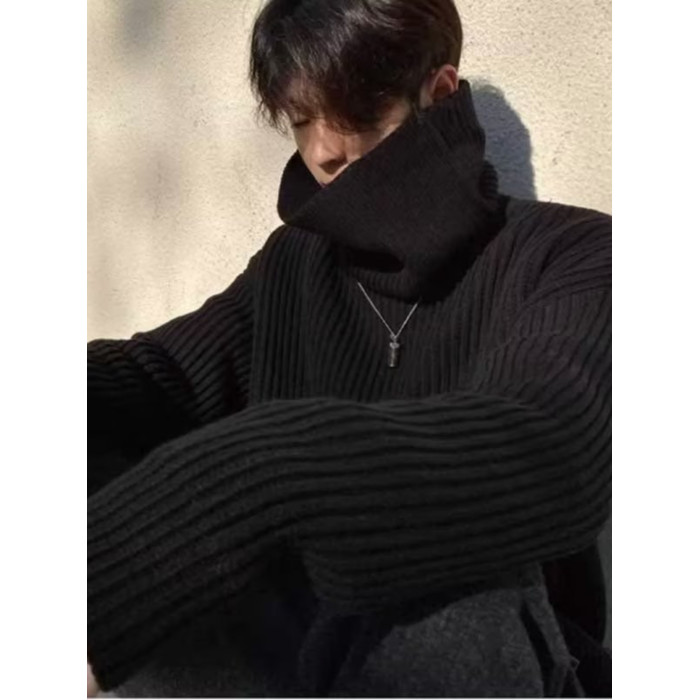黑色高領毛衣男秋冬季日系慵懶寬松加厚內搭打底針織衫痞帥高級感