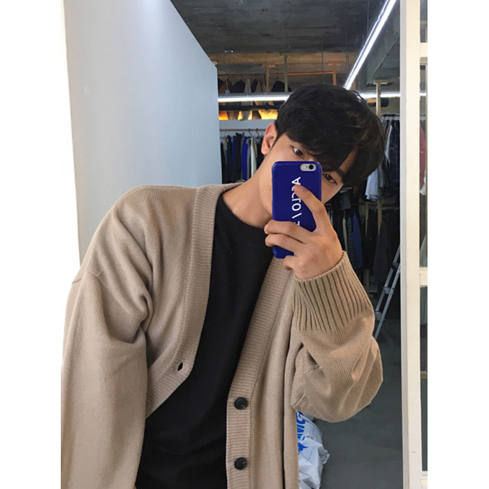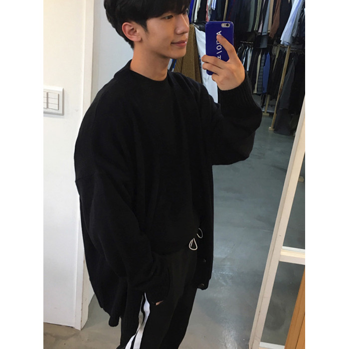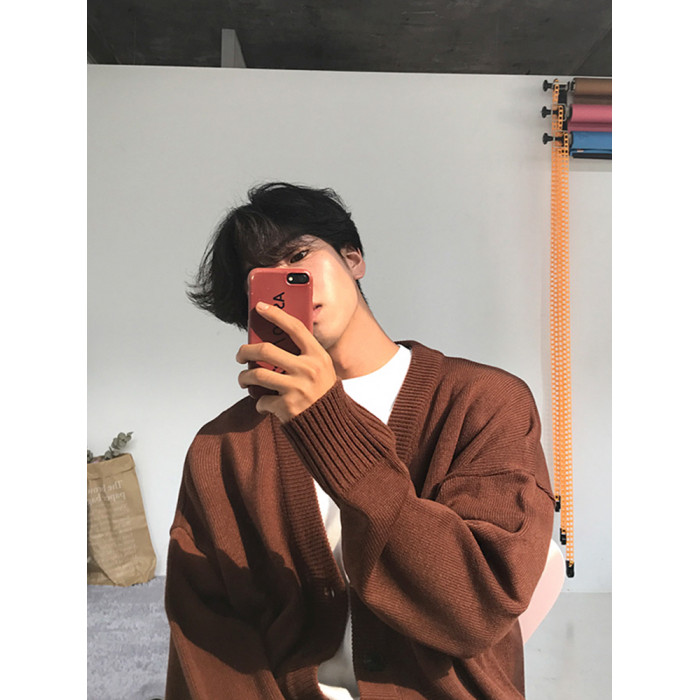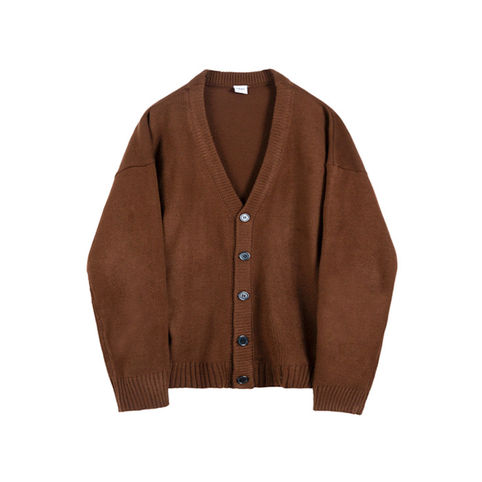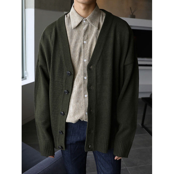 MRCYC老錢風針織衫男寬松大毛衣V領單排釦純色針織毛衣開衫外套男