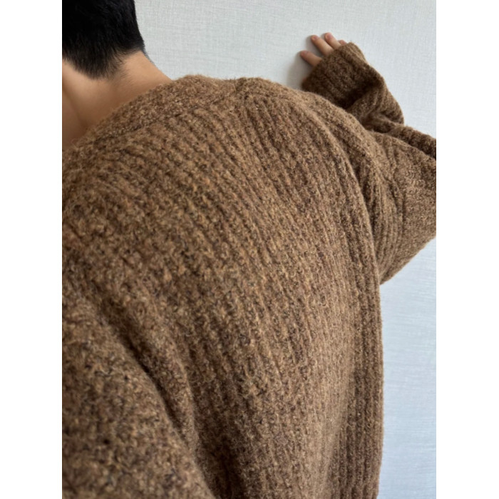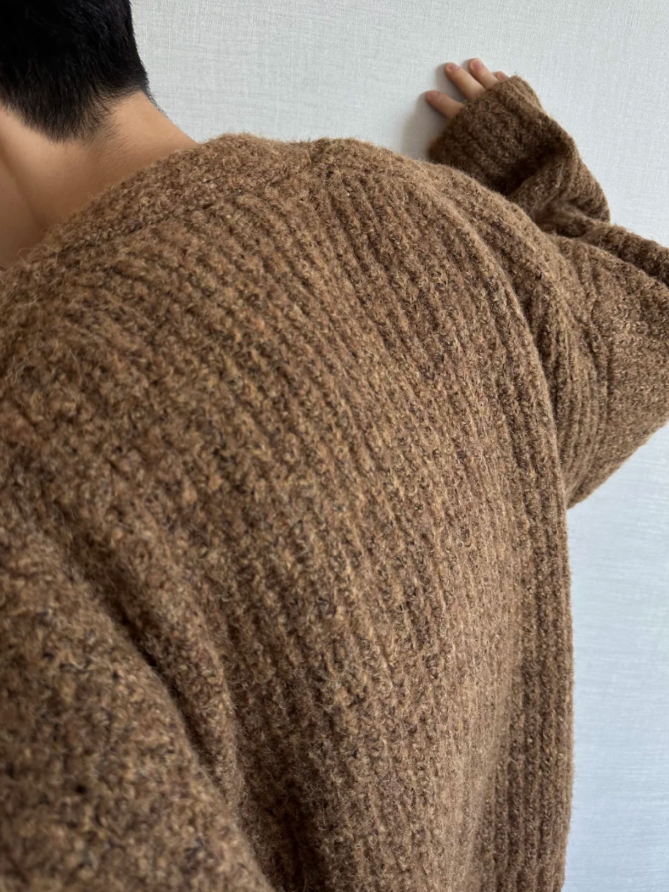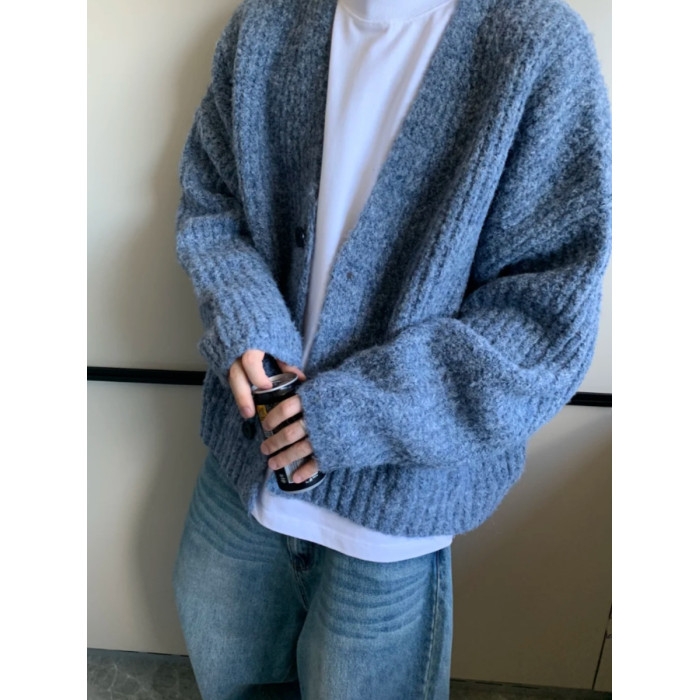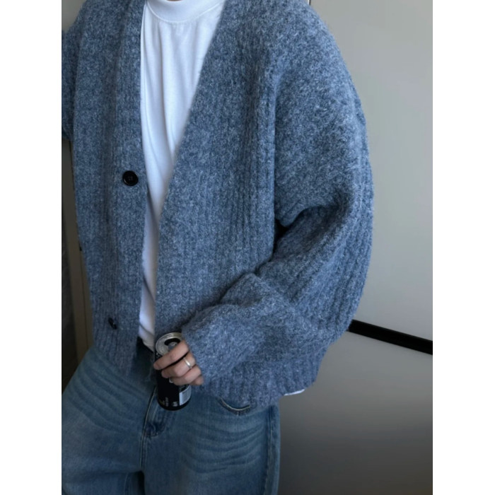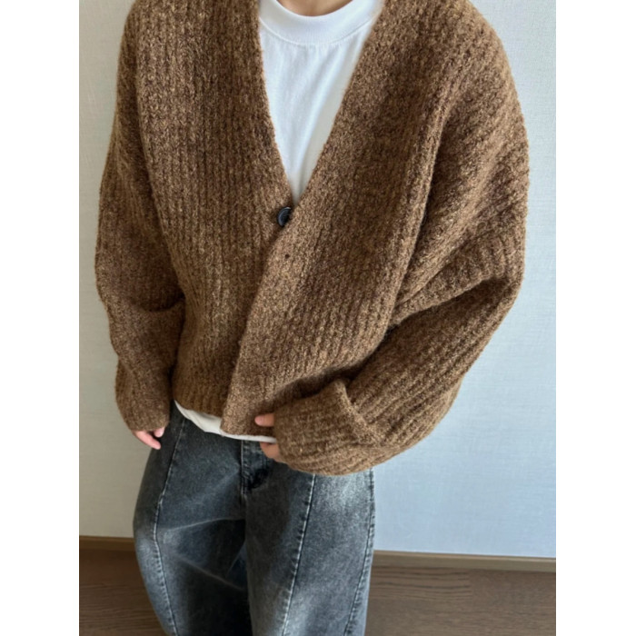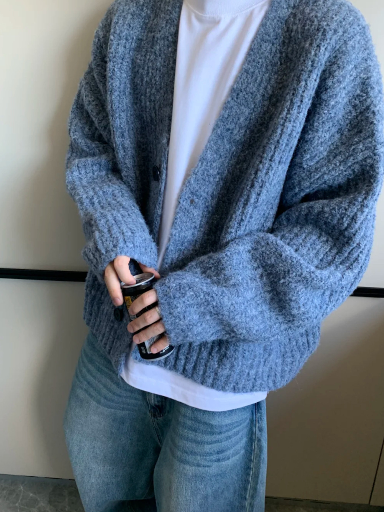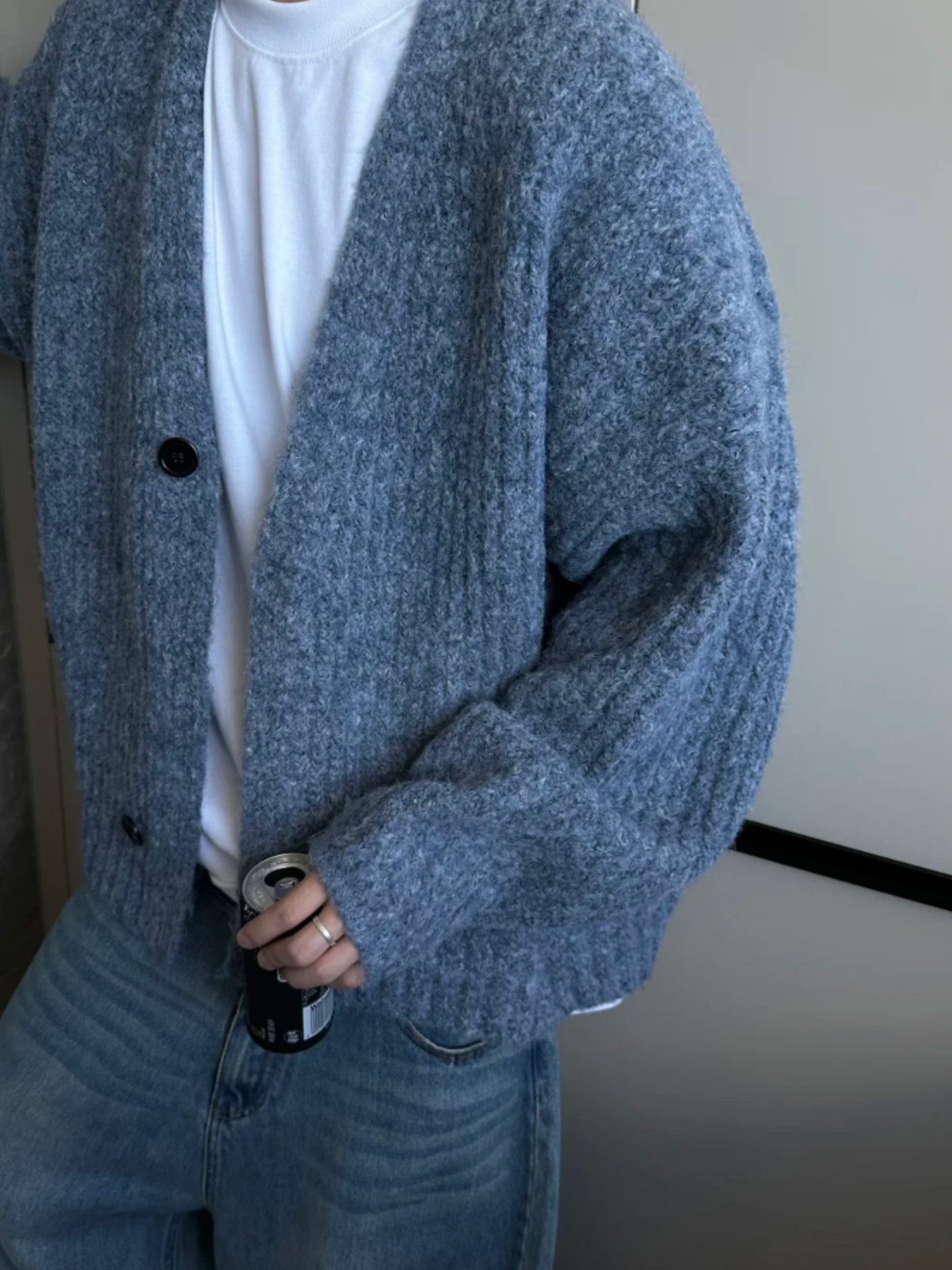 美式復古秋冬重磅混色短寬粗線針織開衫毛衣男休閒寬松外套