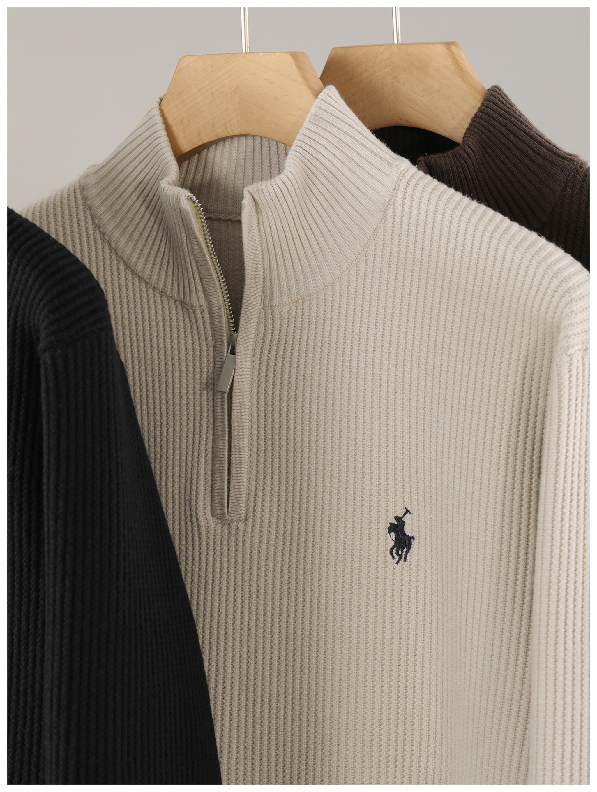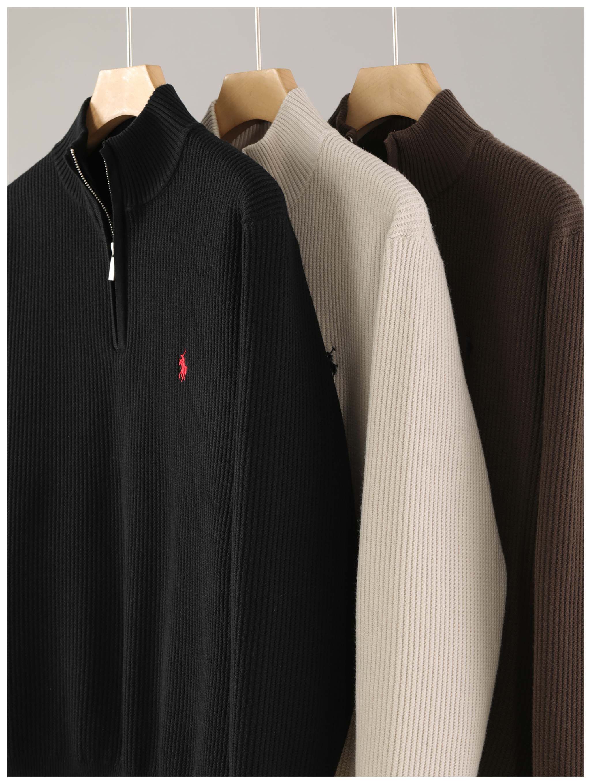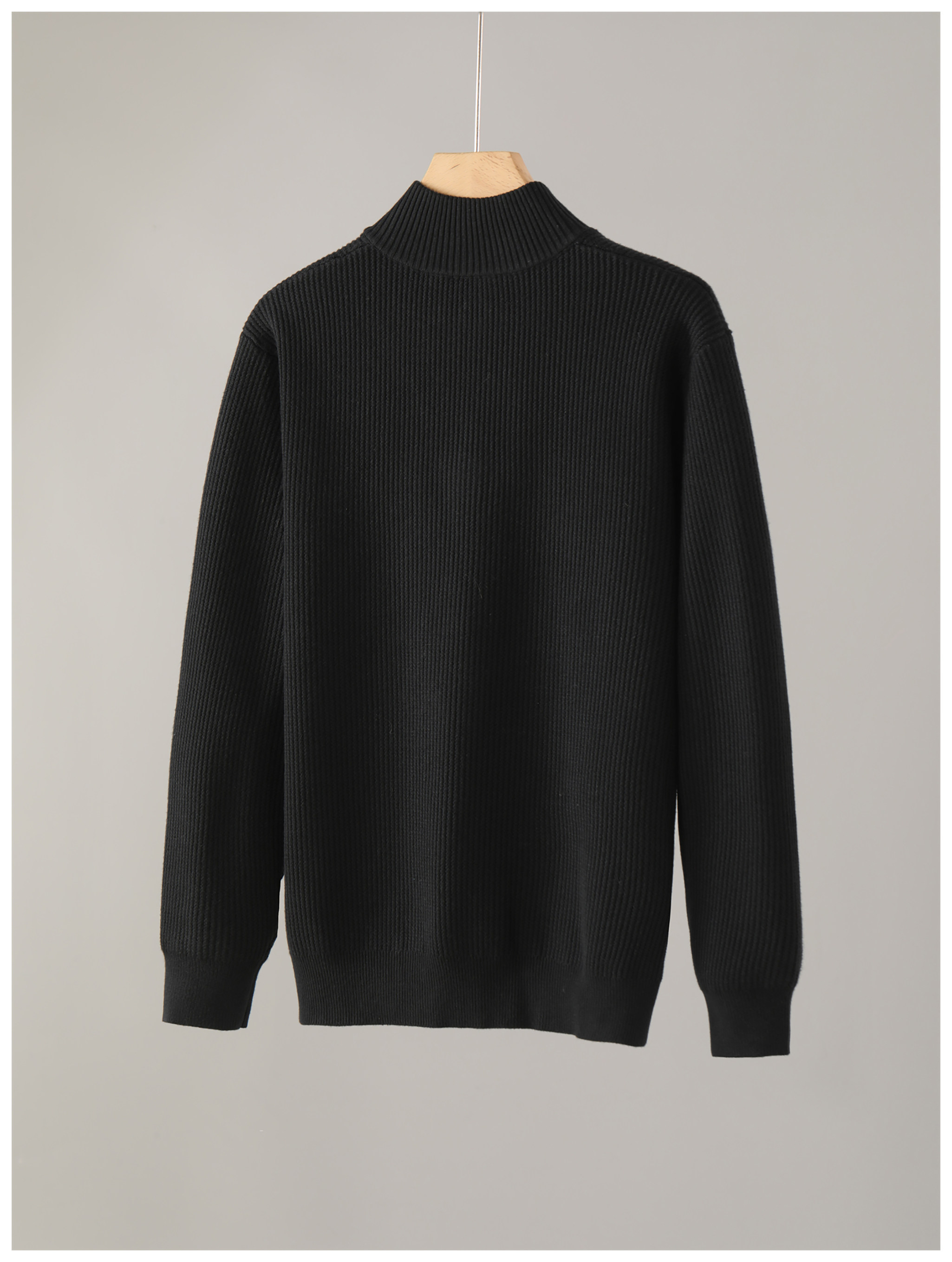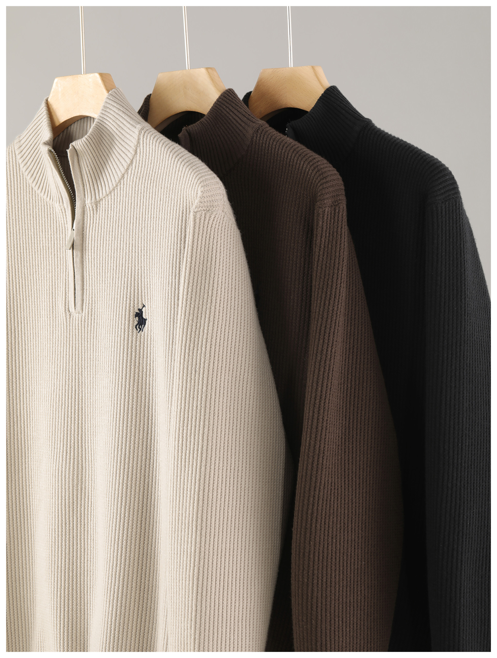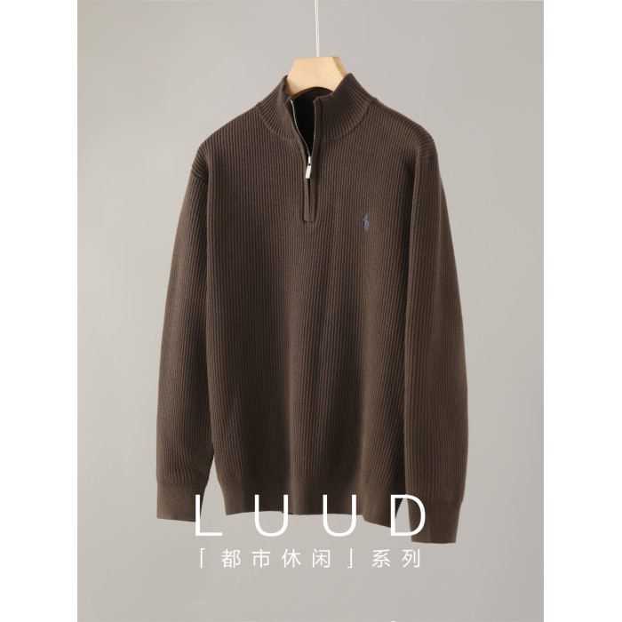LUUD 萊賽爾天絲暖絨拉鍊半開襟高領針織衫男秋冬季騎士刺綉毛衣