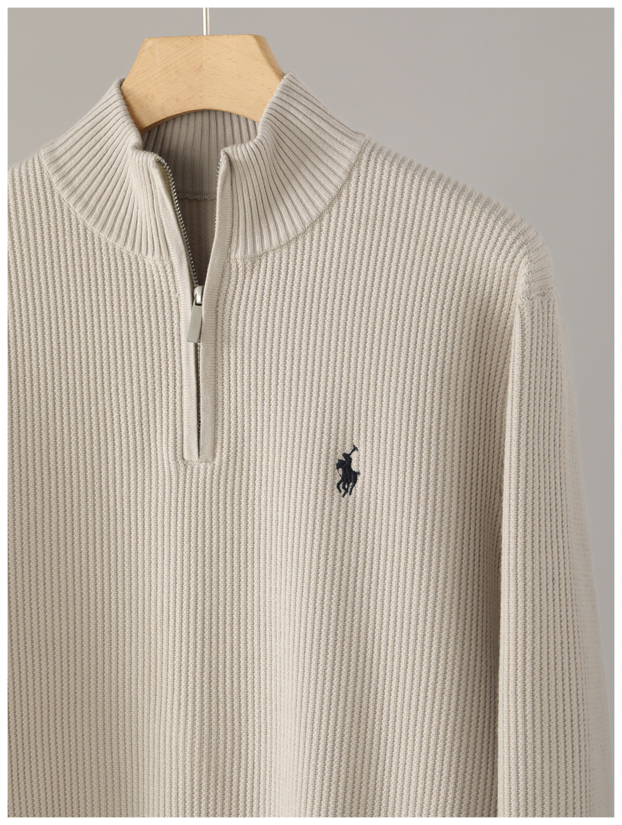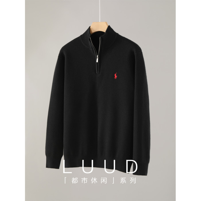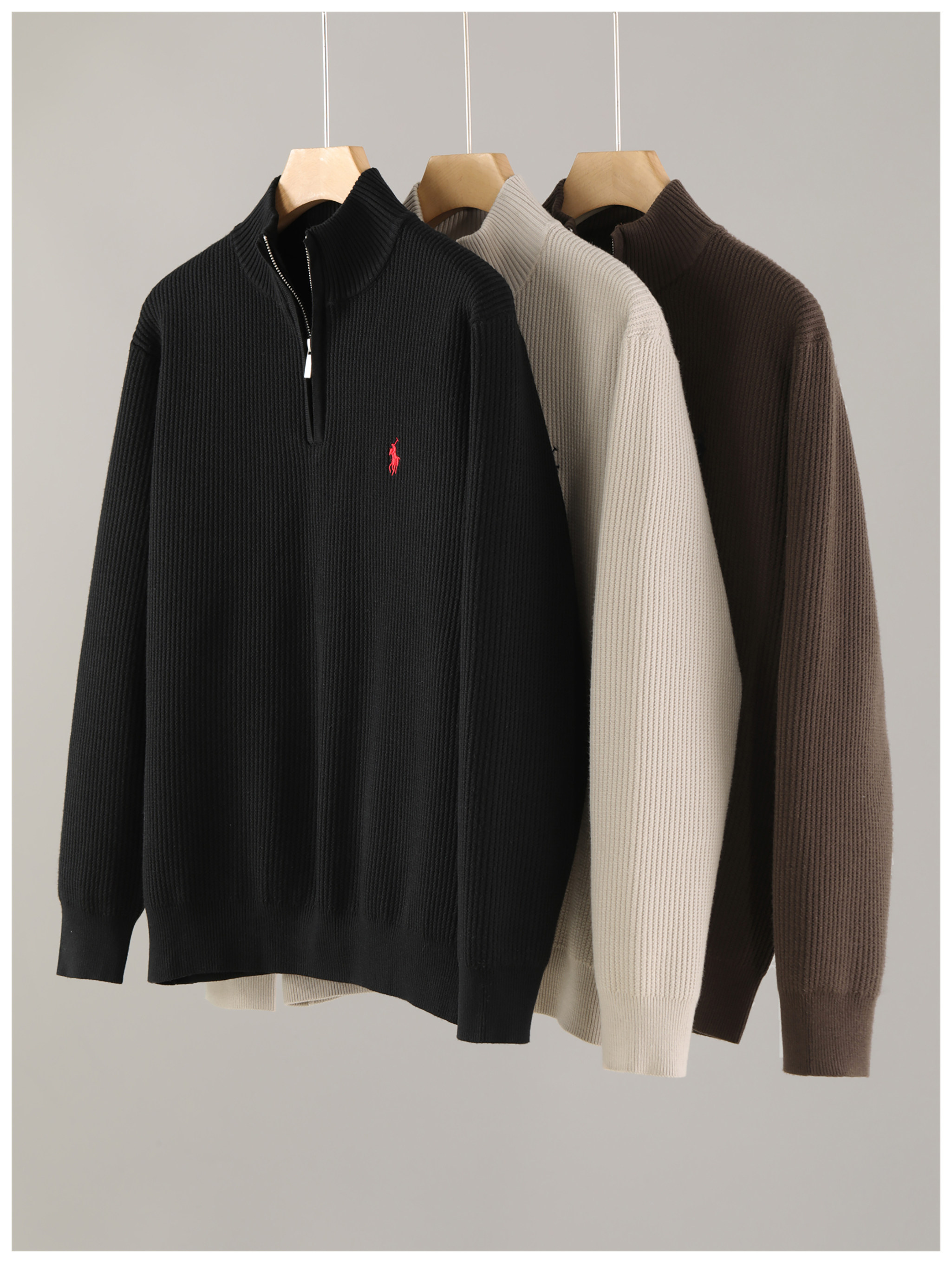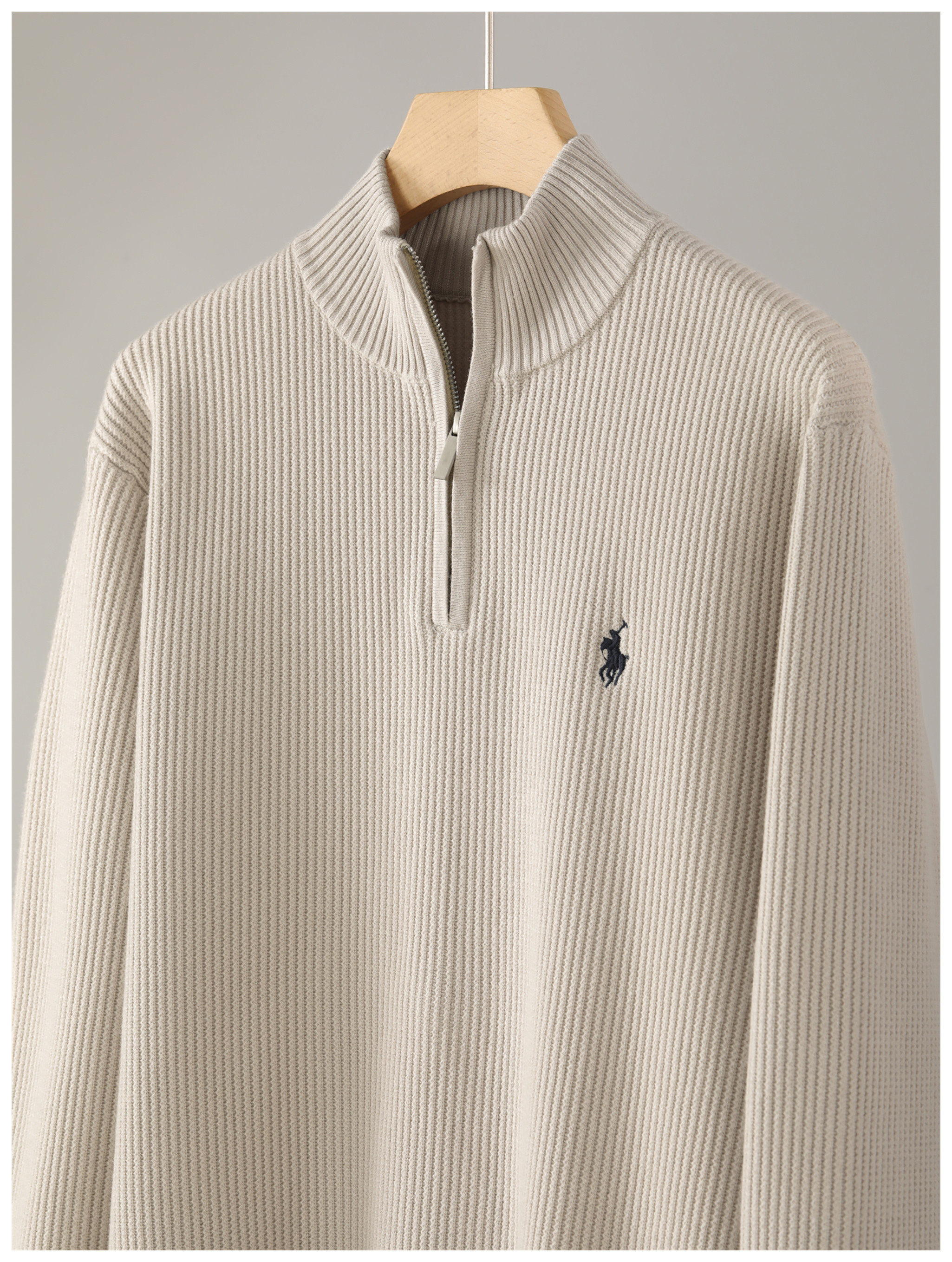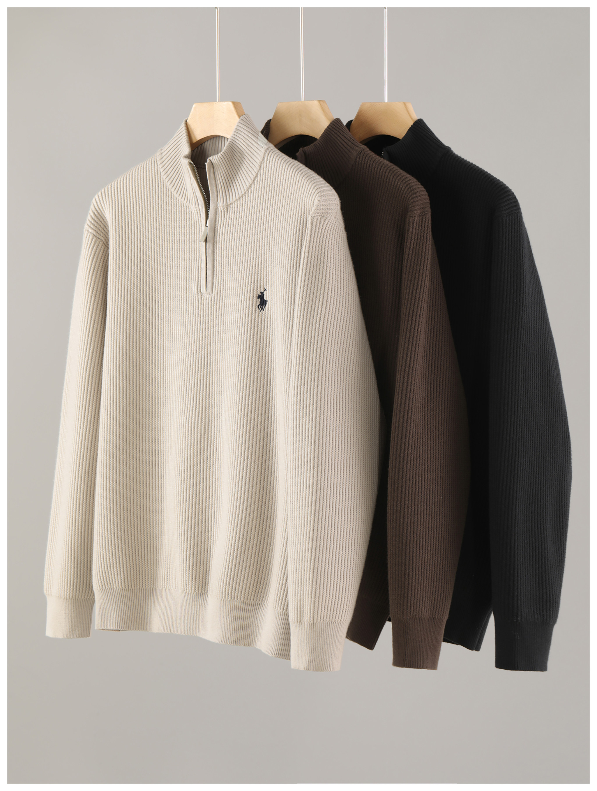 LUUD 萊賽爾天絲暖絨拉鍊半開襟高領針織衫男秋冬季騎士刺綉毛衣