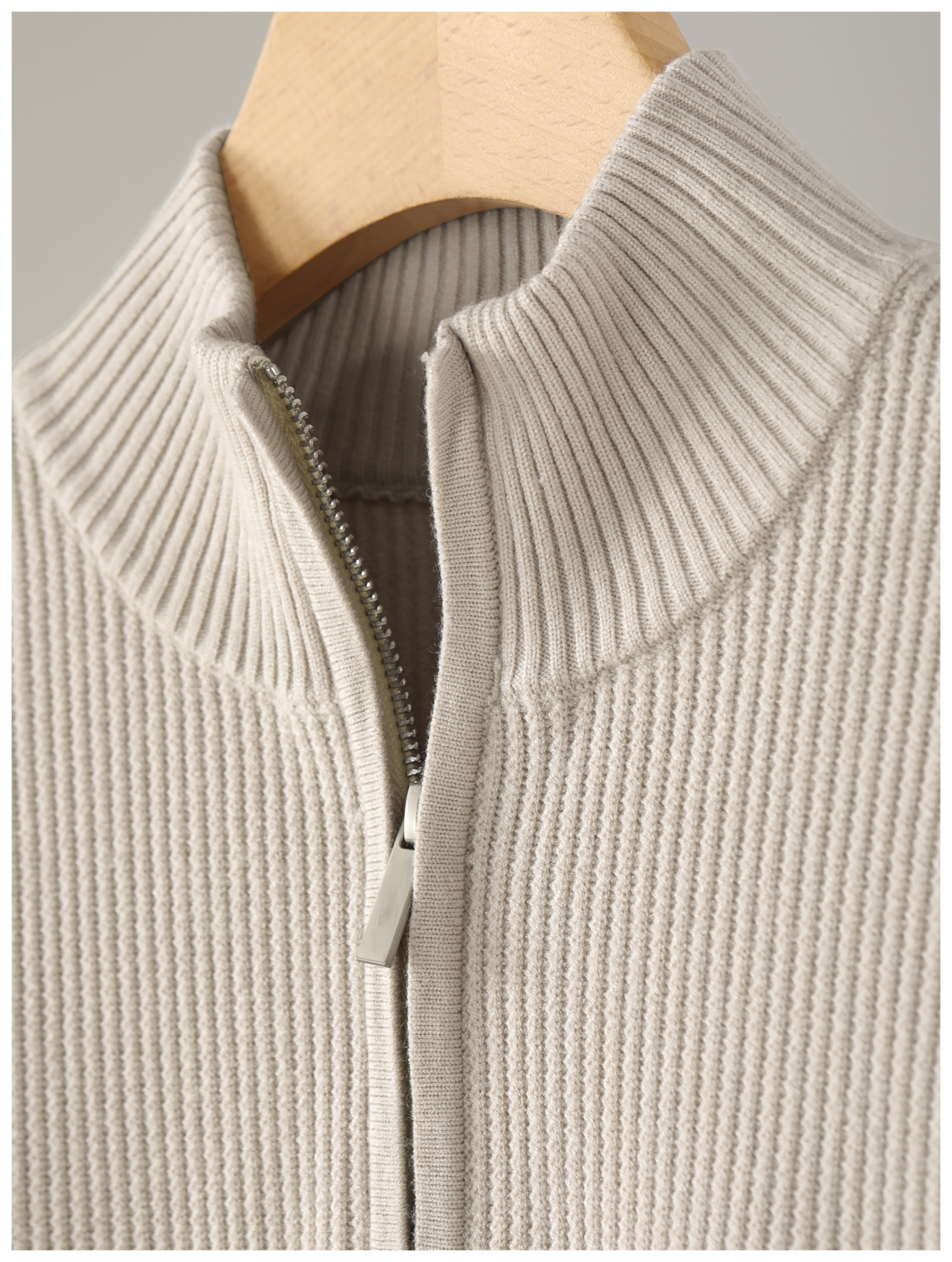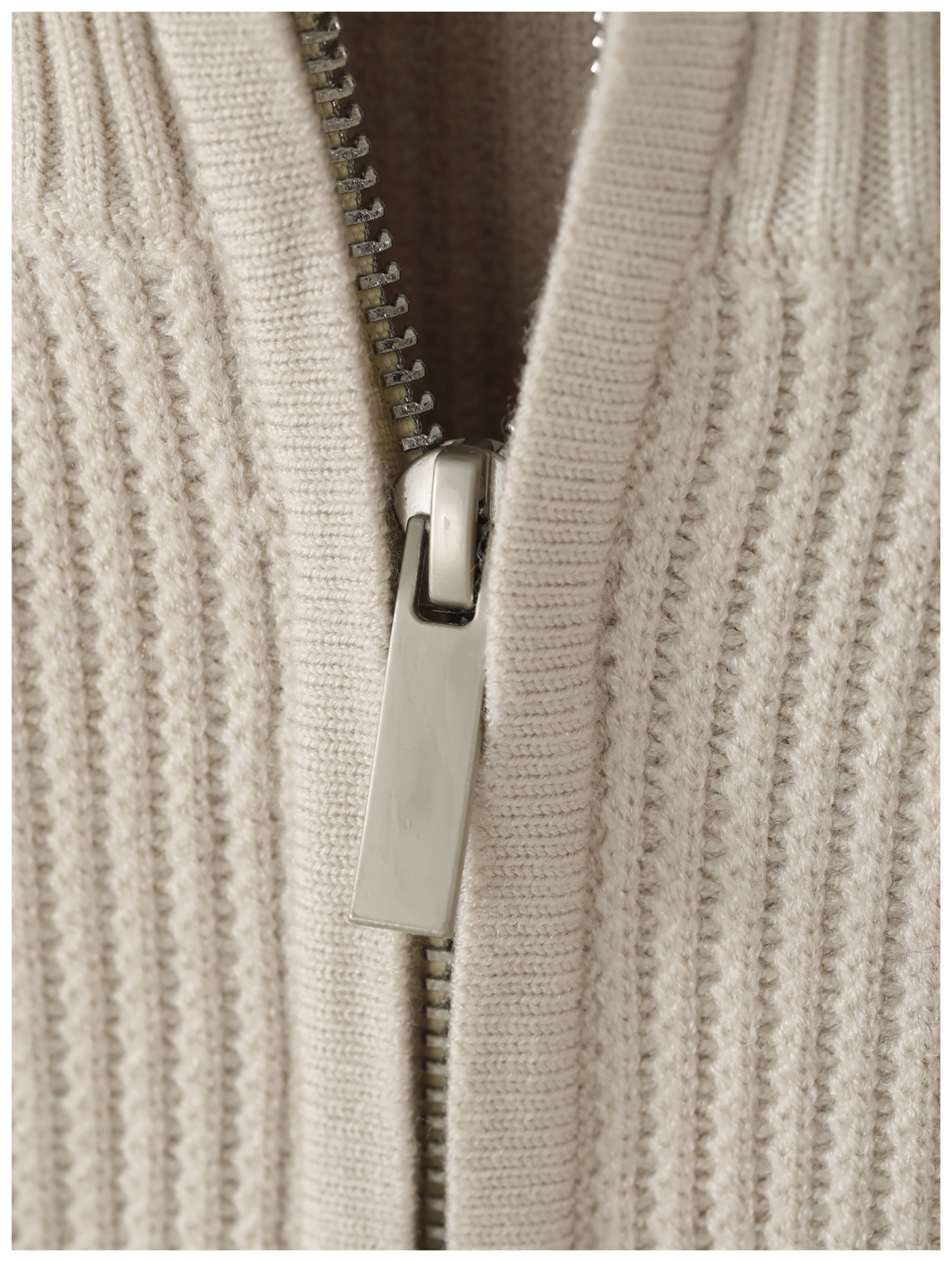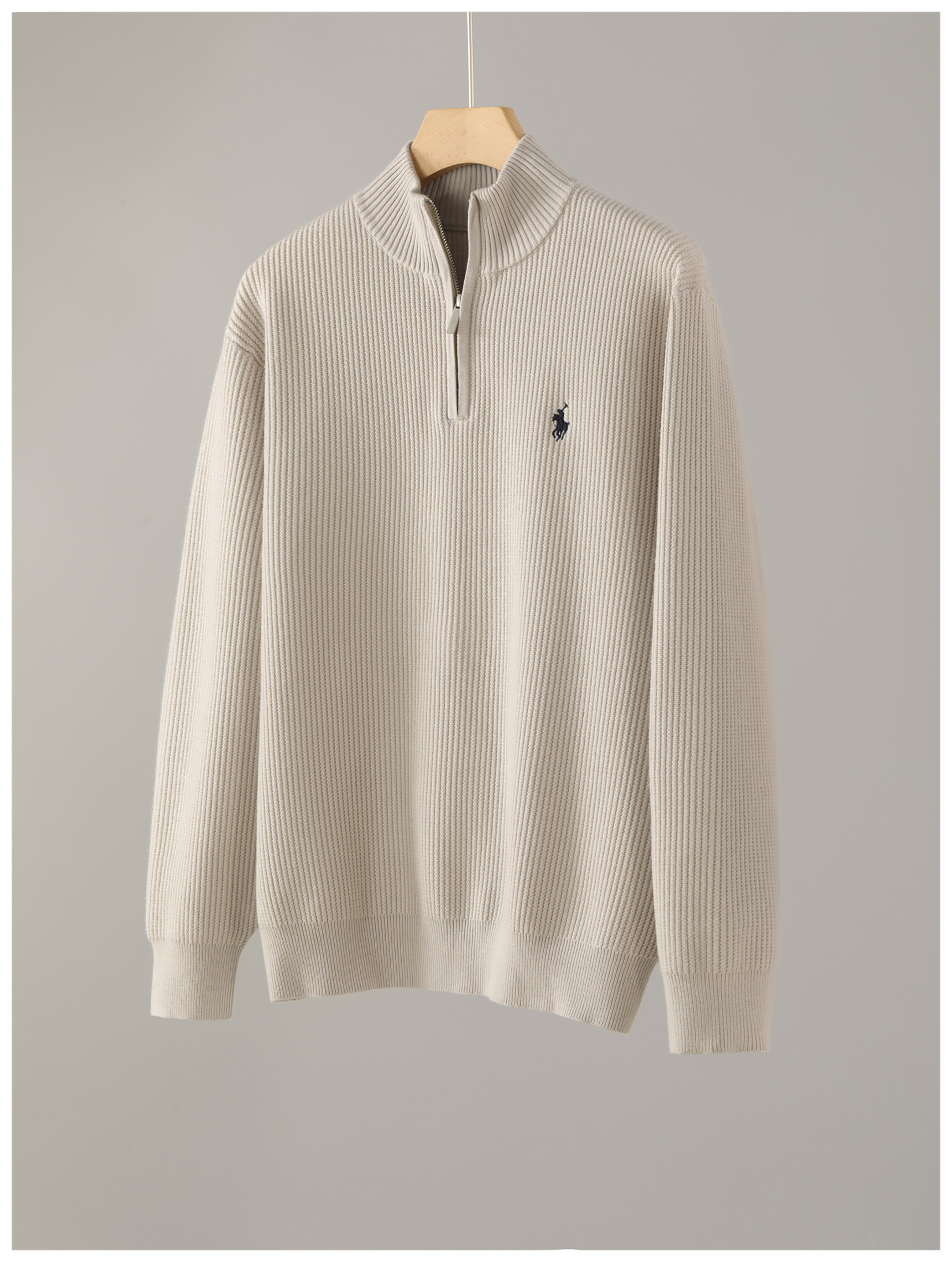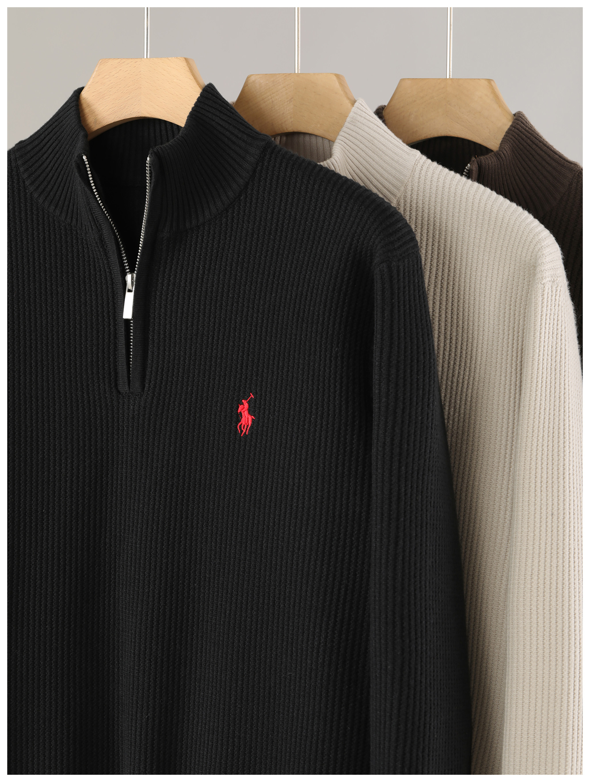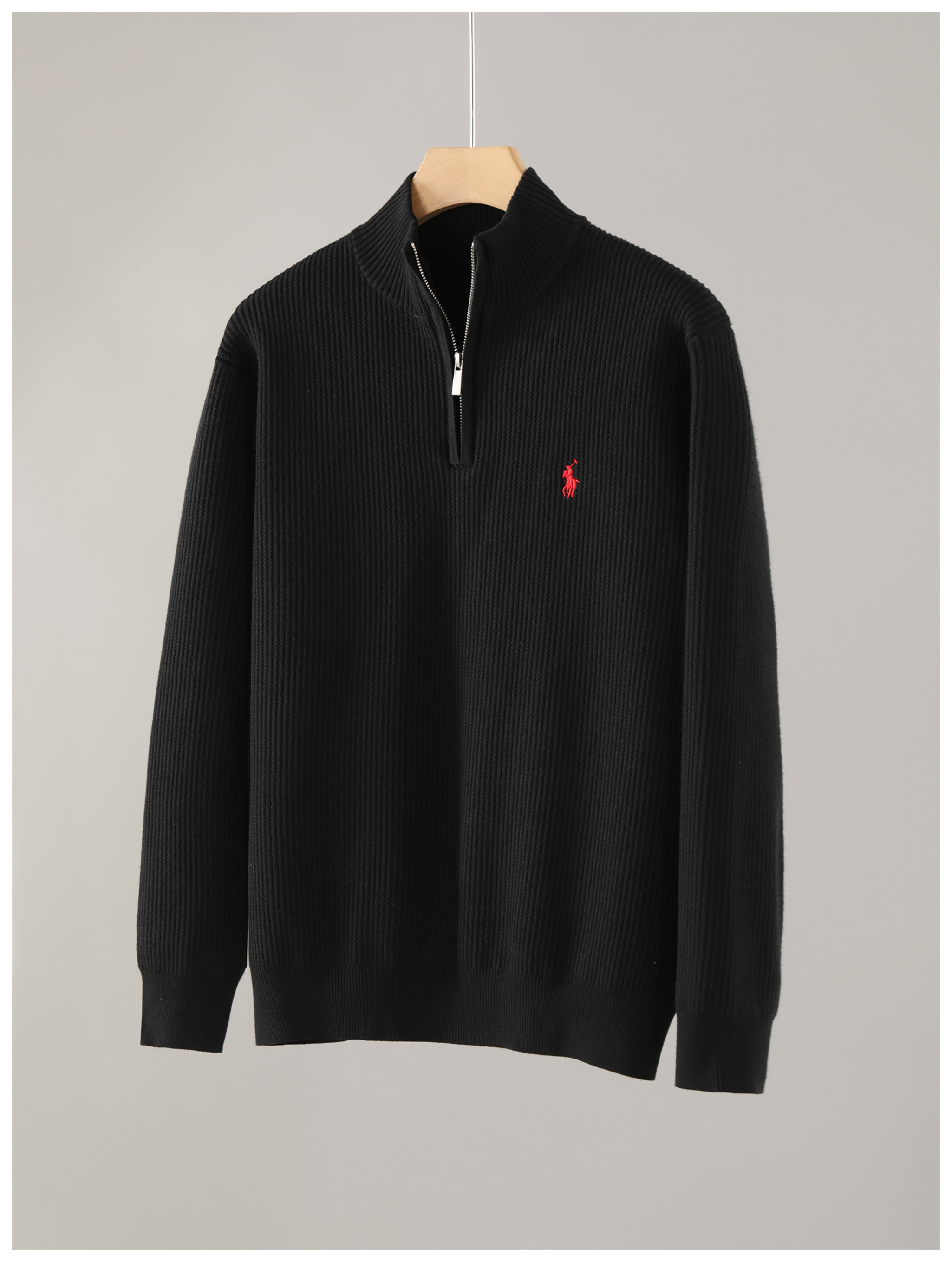 LUUD 萊賽爾天絲暖絨拉鍊半開襟高領針織衫男秋冬季騎士刺綉毛衣