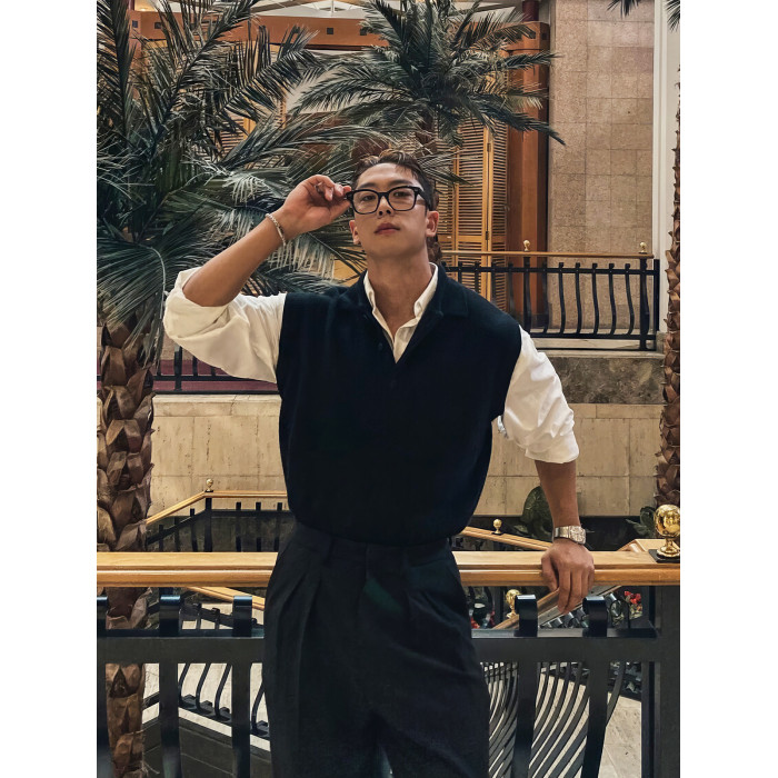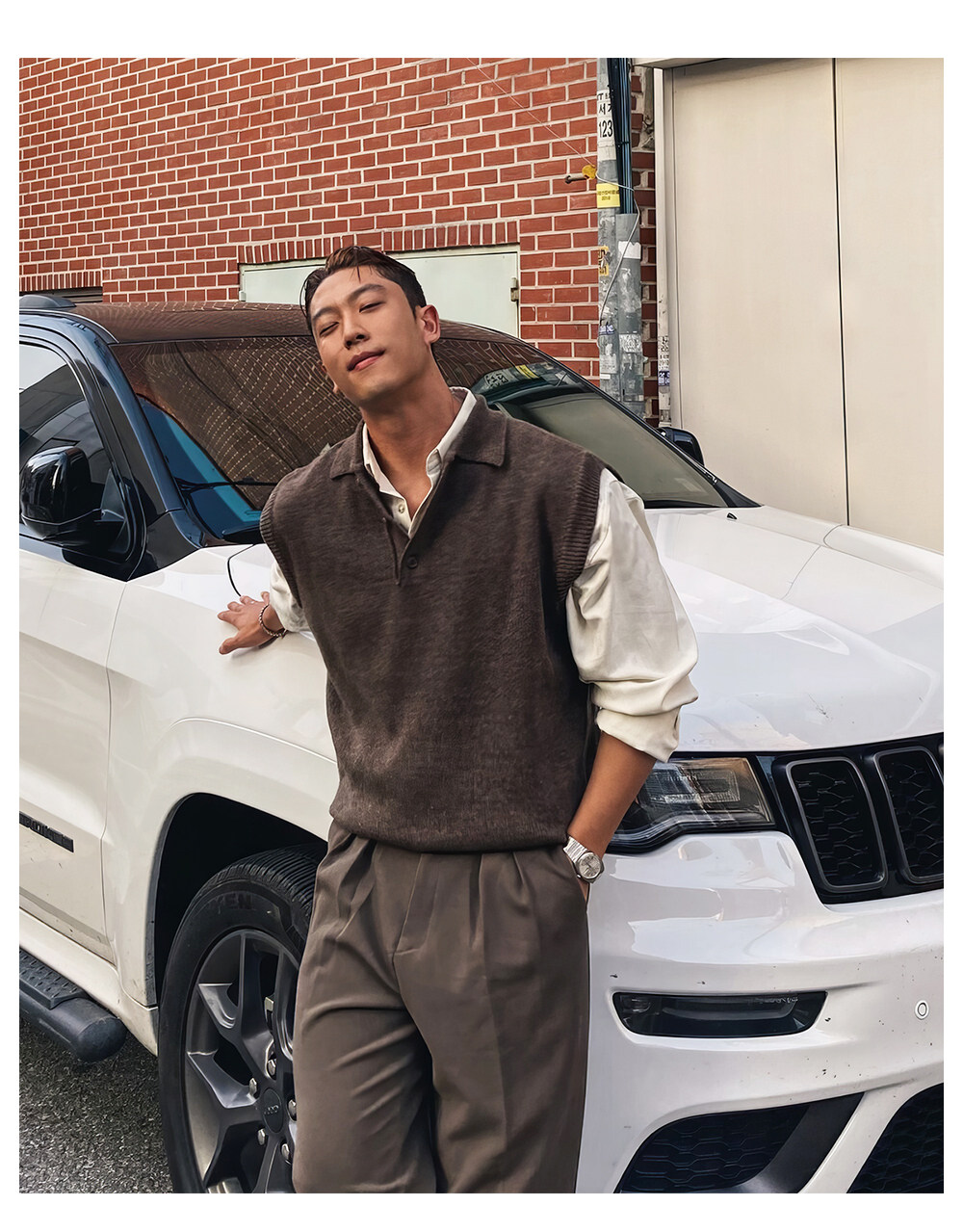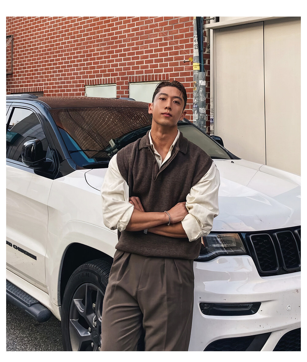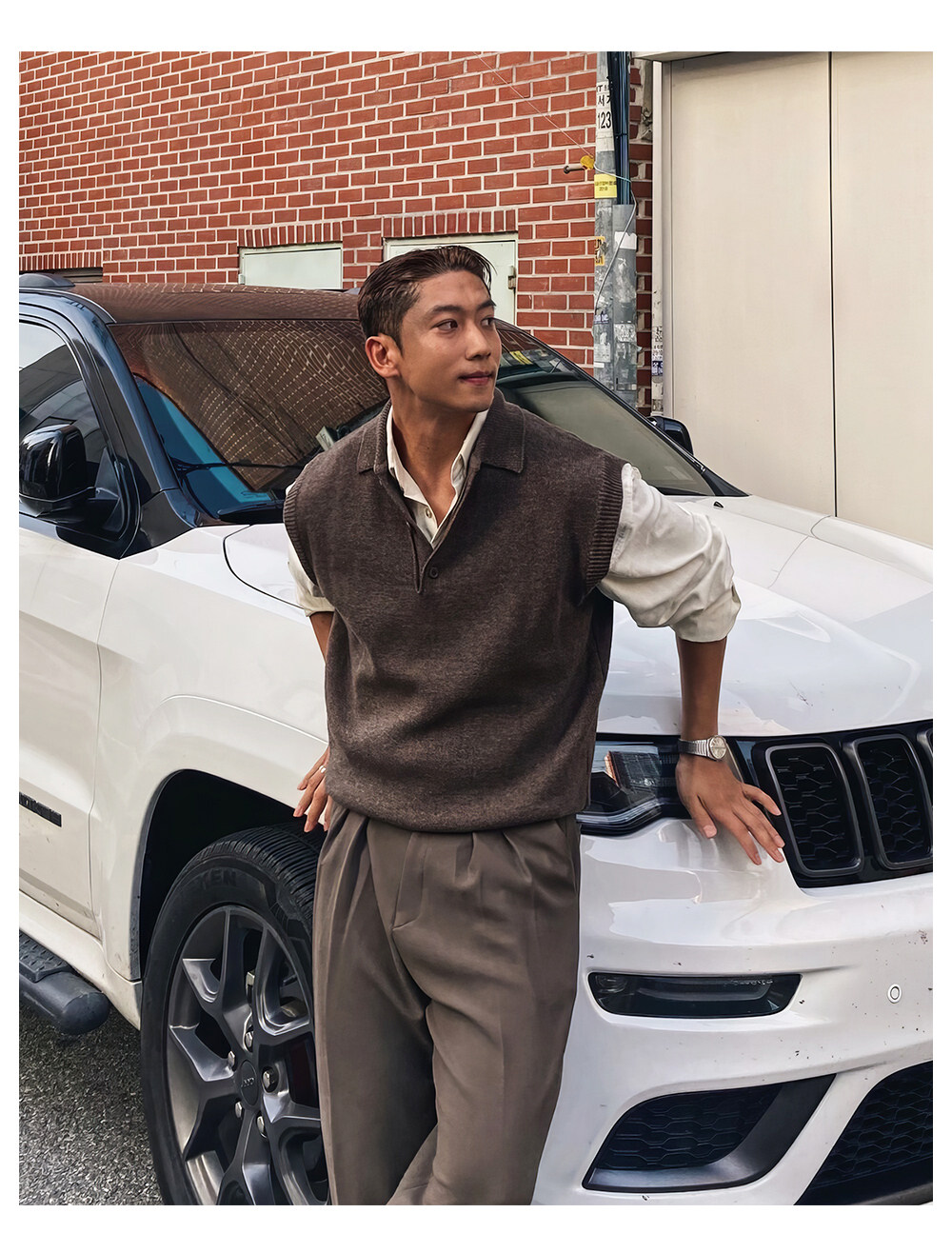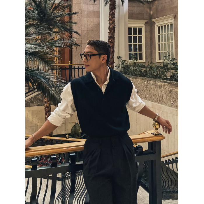 人夫感黑色毛衣背心男春秋復古輕熟風毛線衣輕奢商務休閒針織馬甲