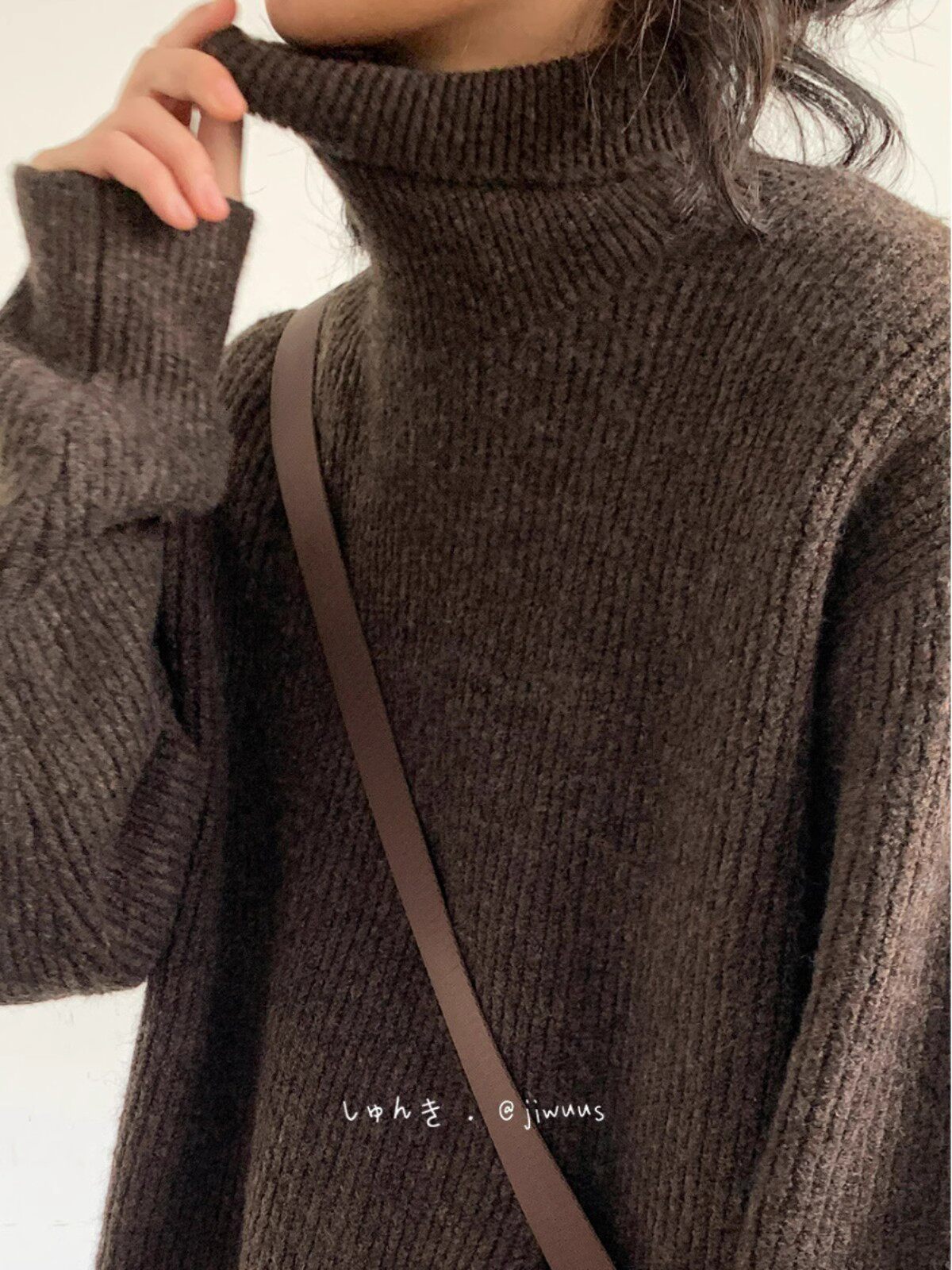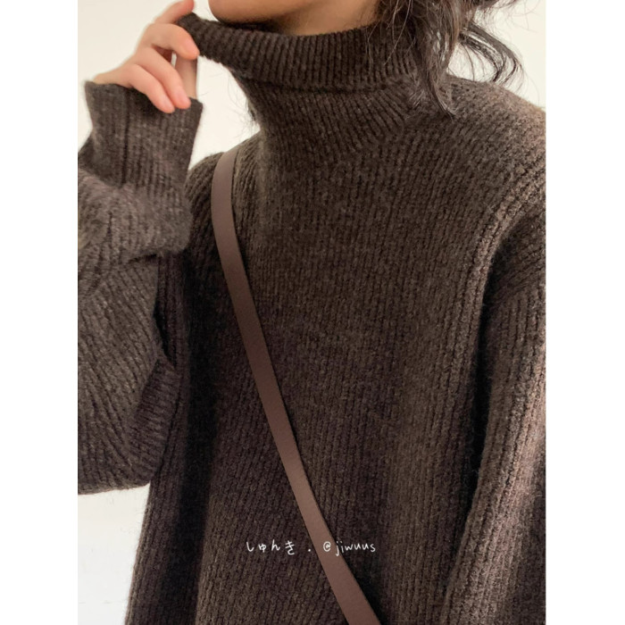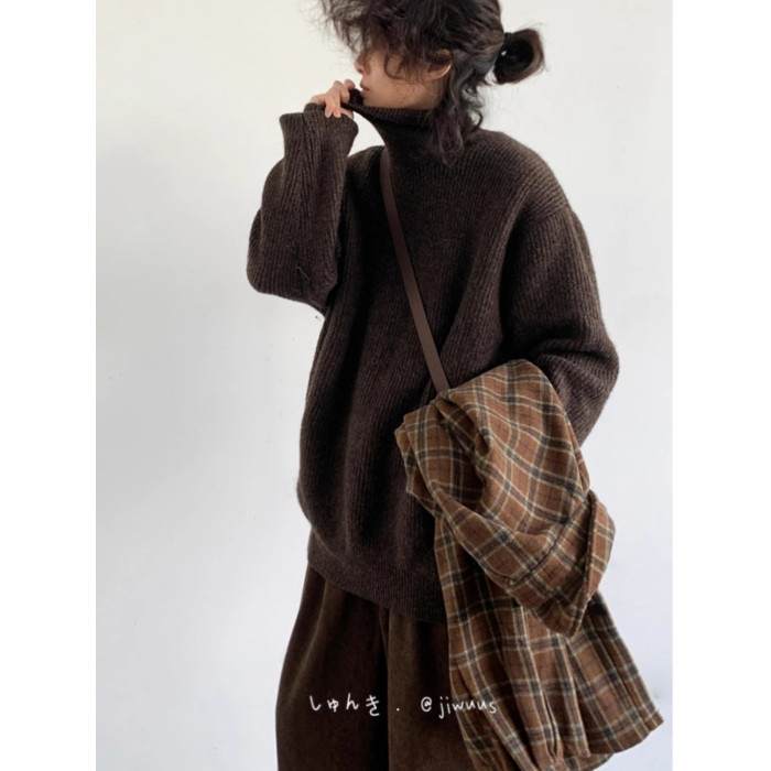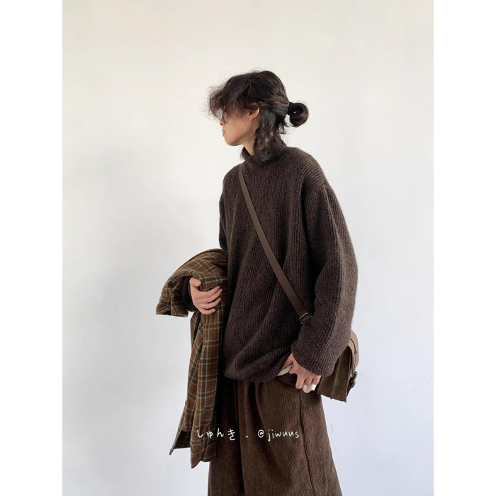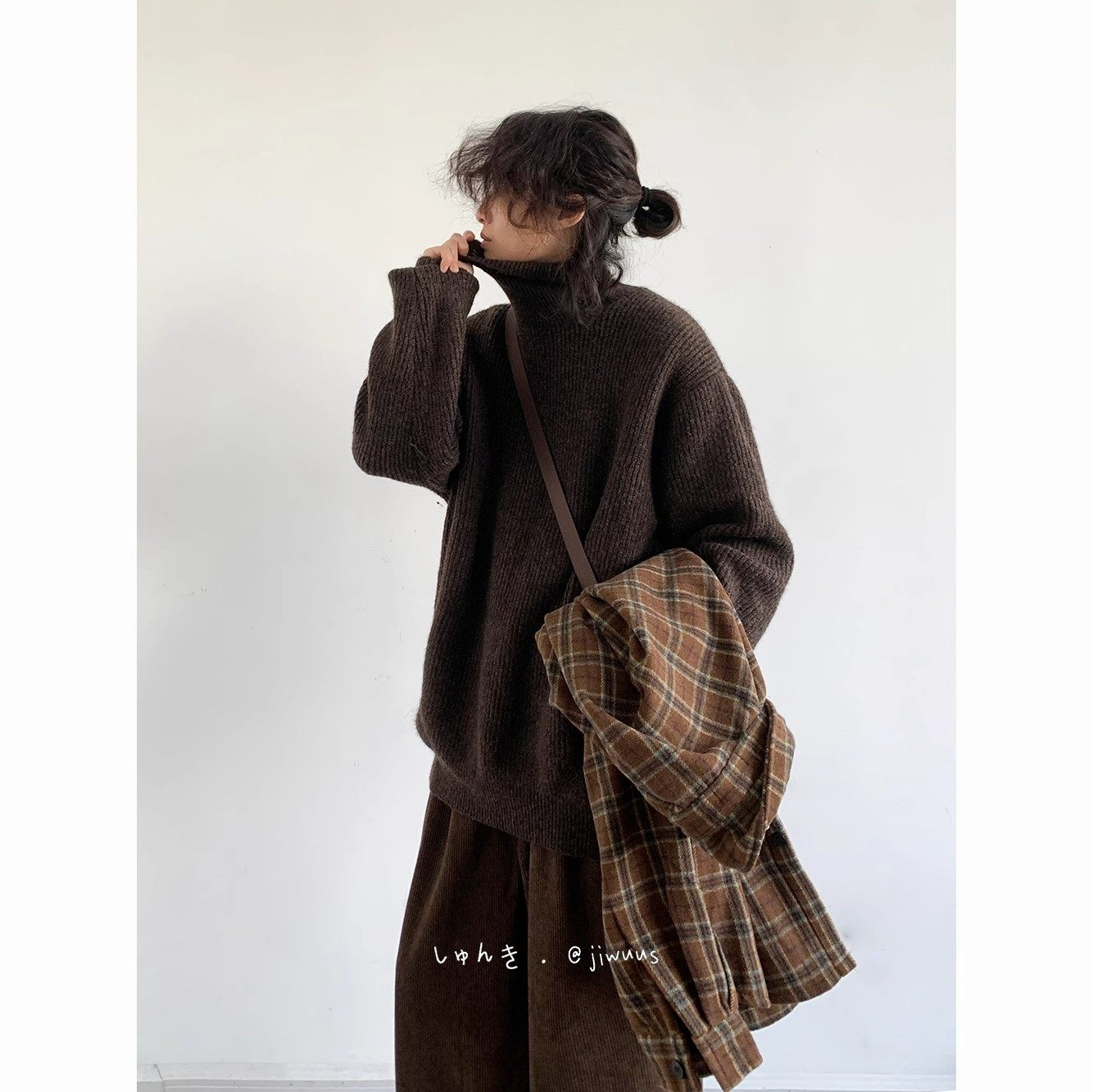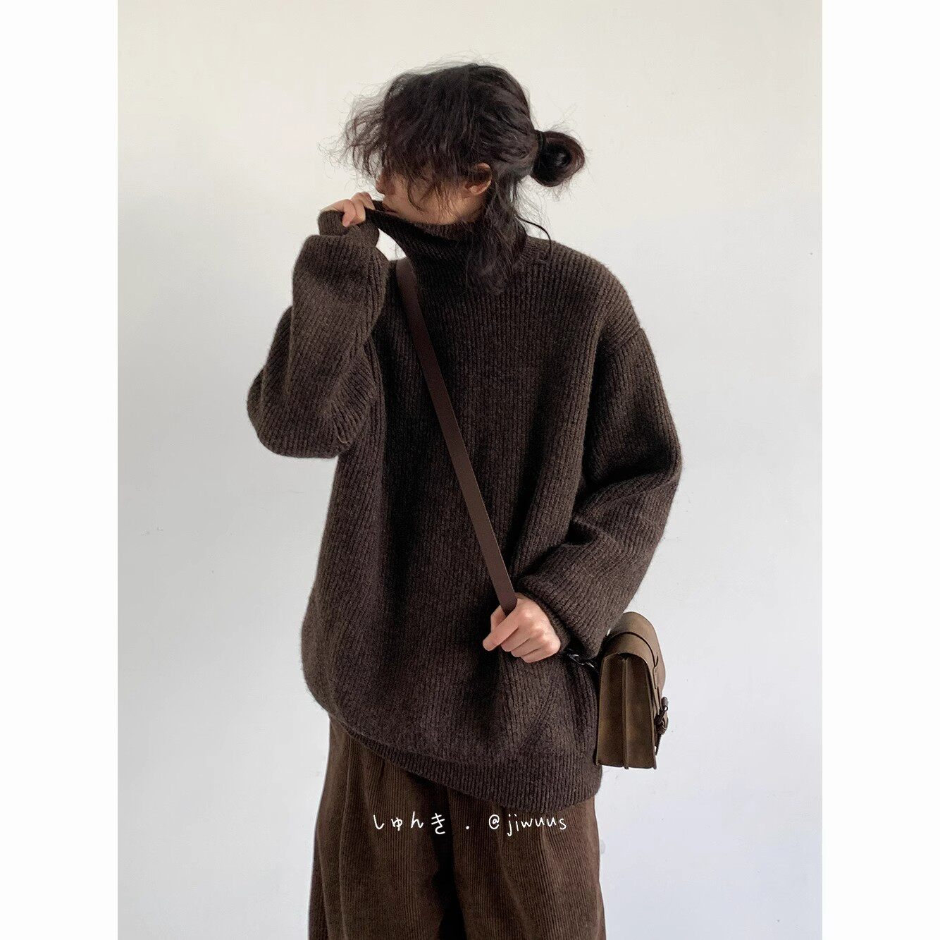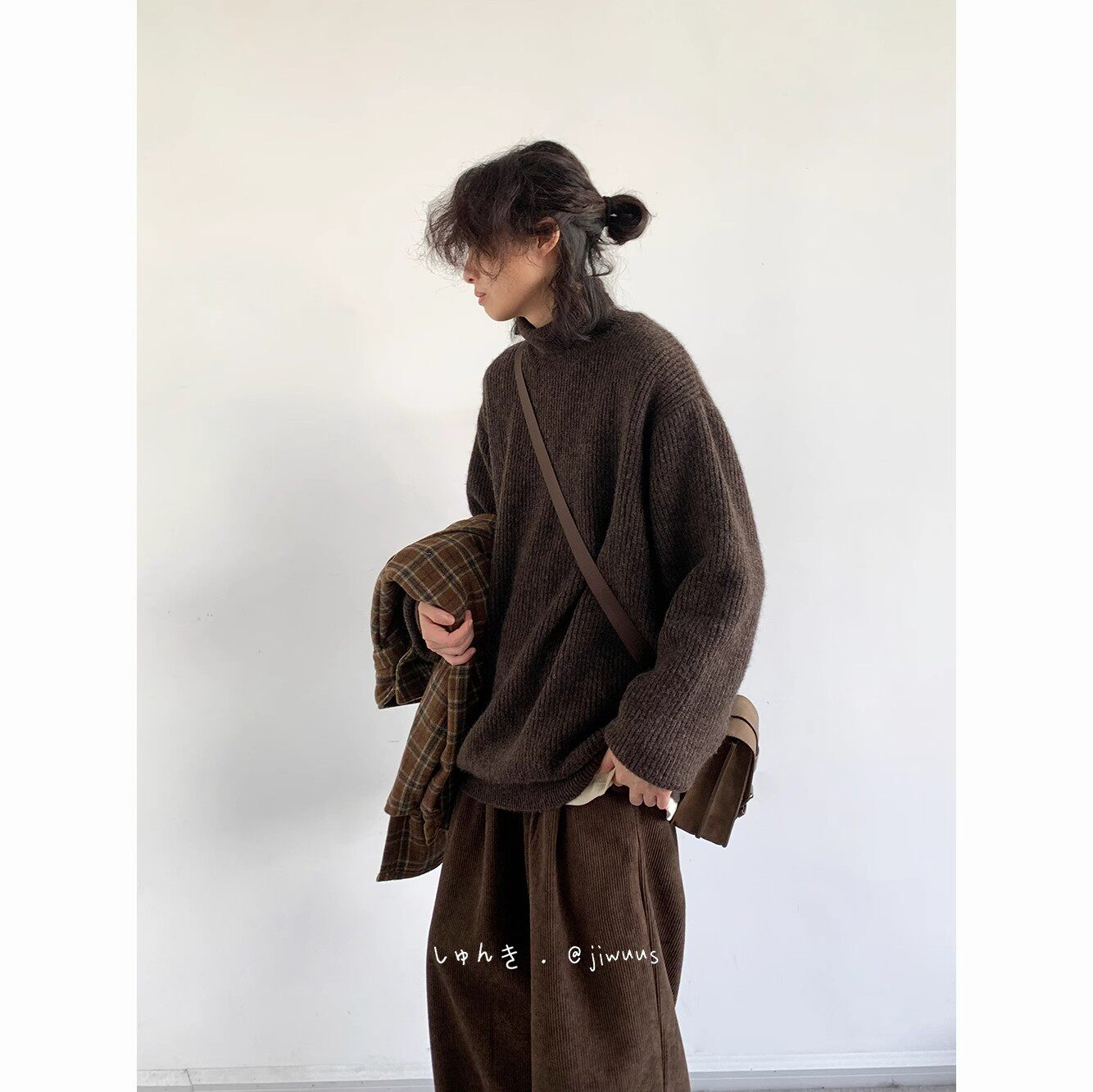 日系中性美拉德基礎款純色毛衣男女秋冬寬松高領百搭套頭針織上衣