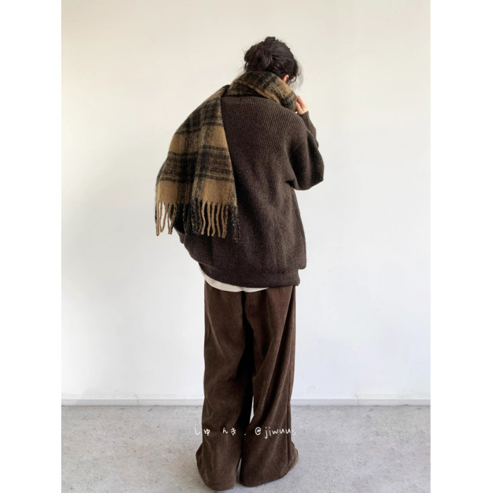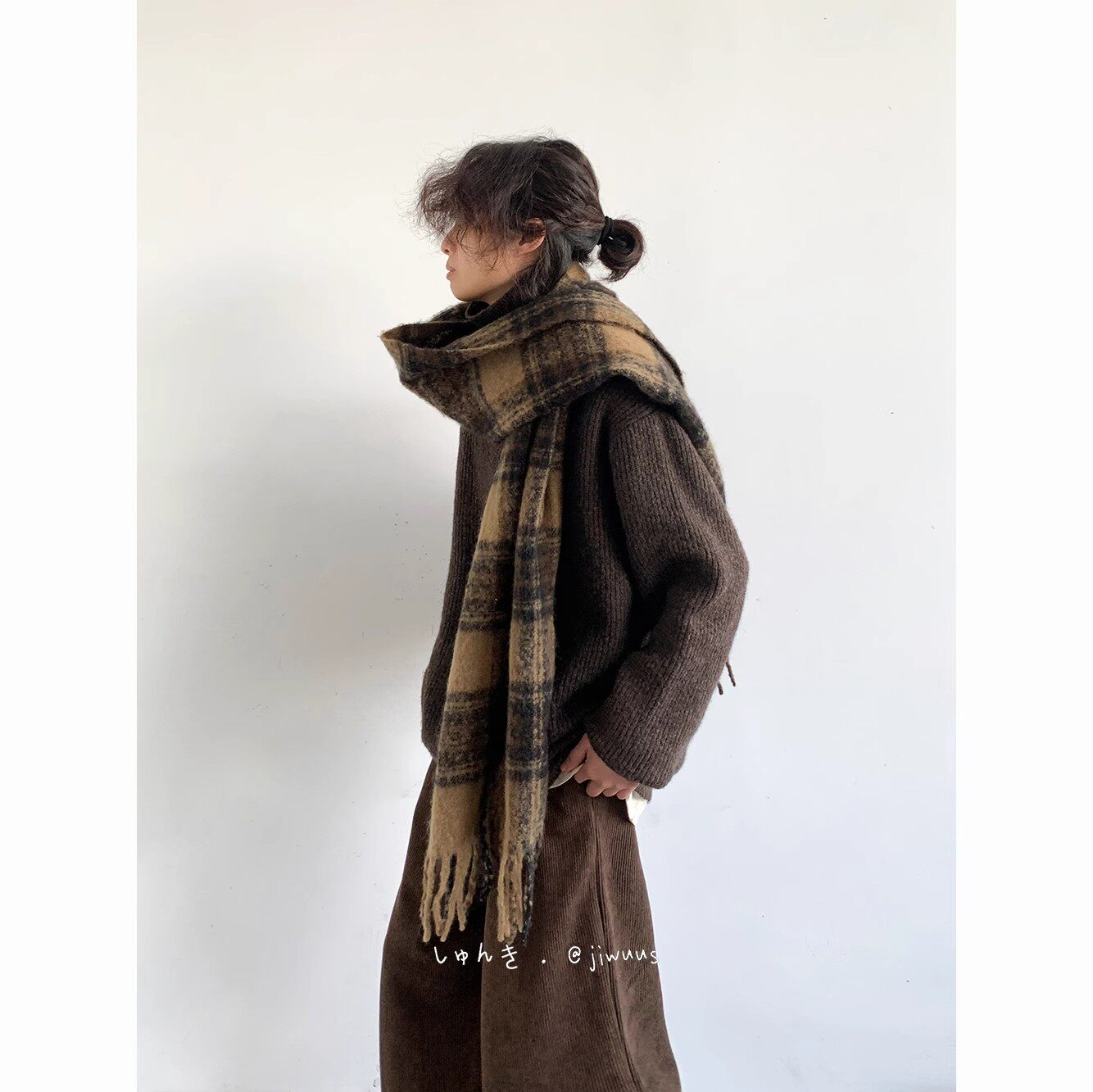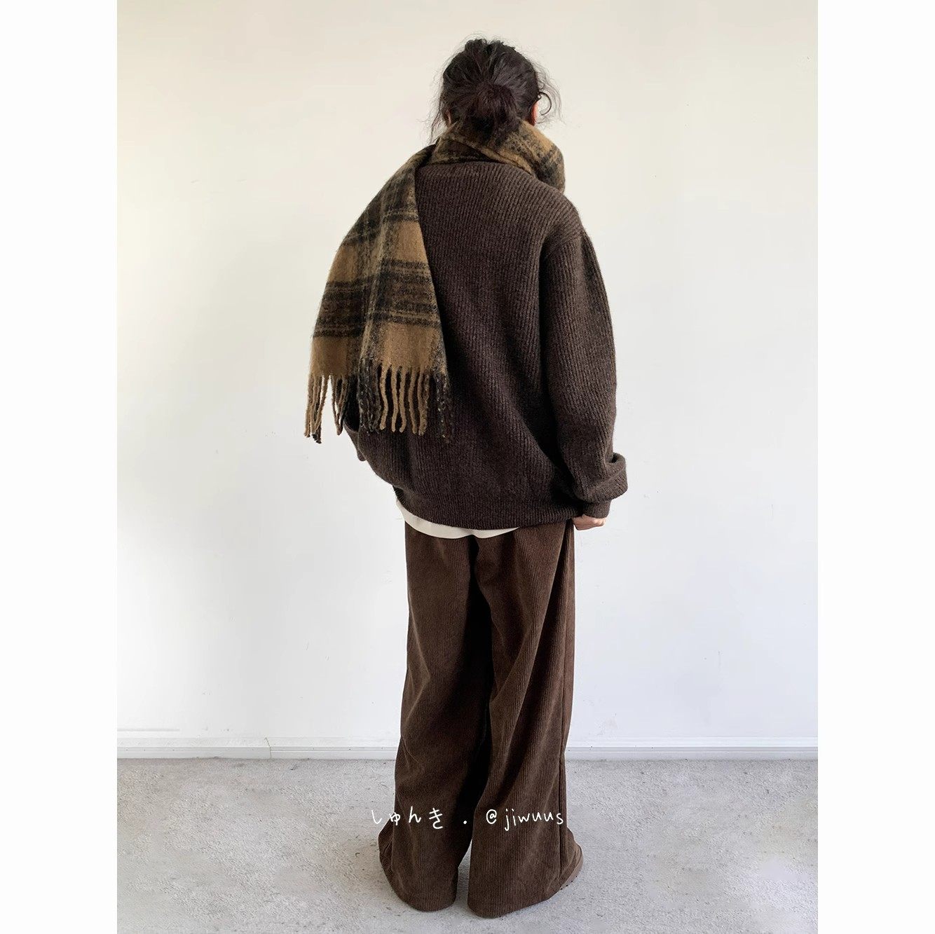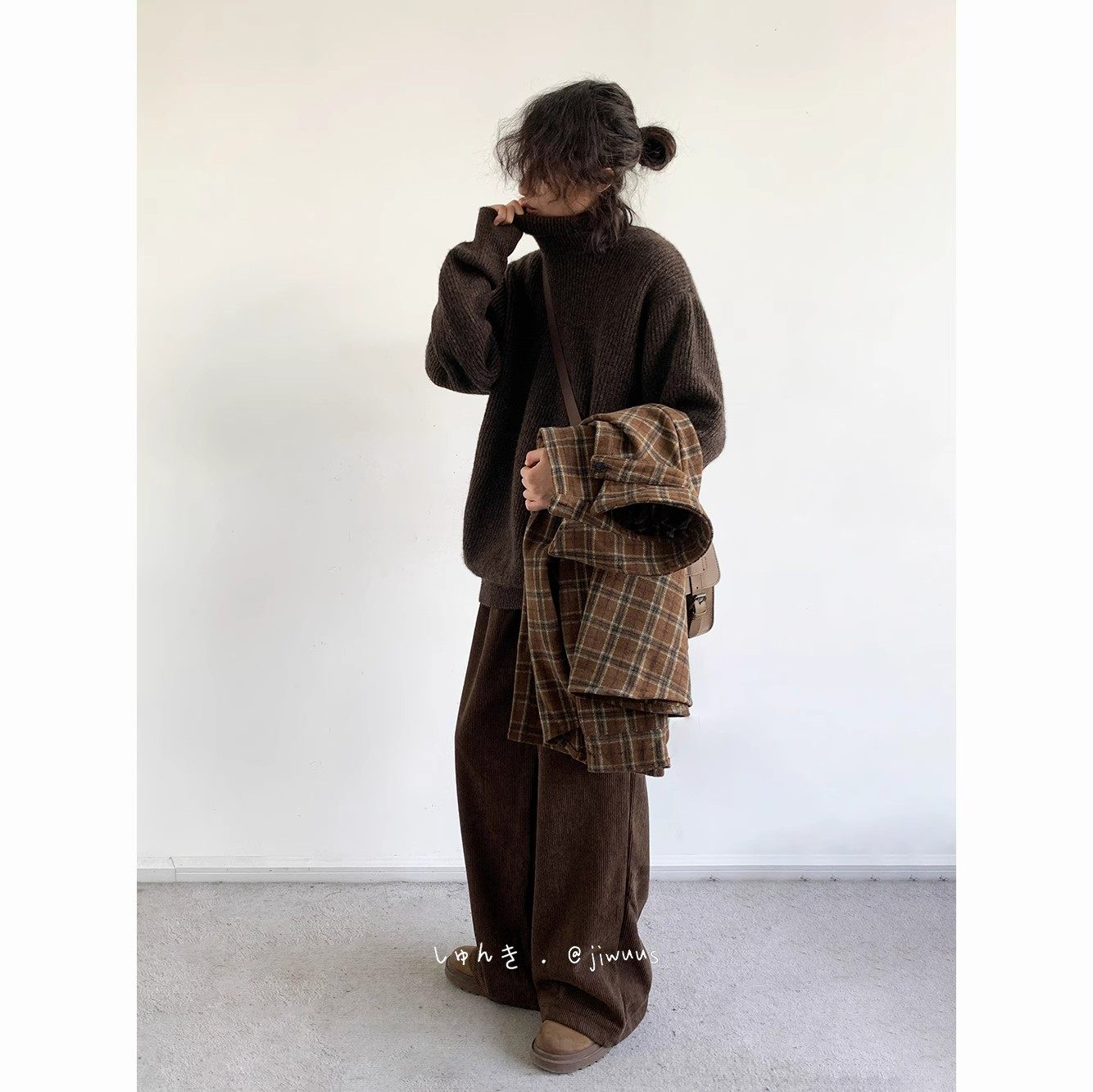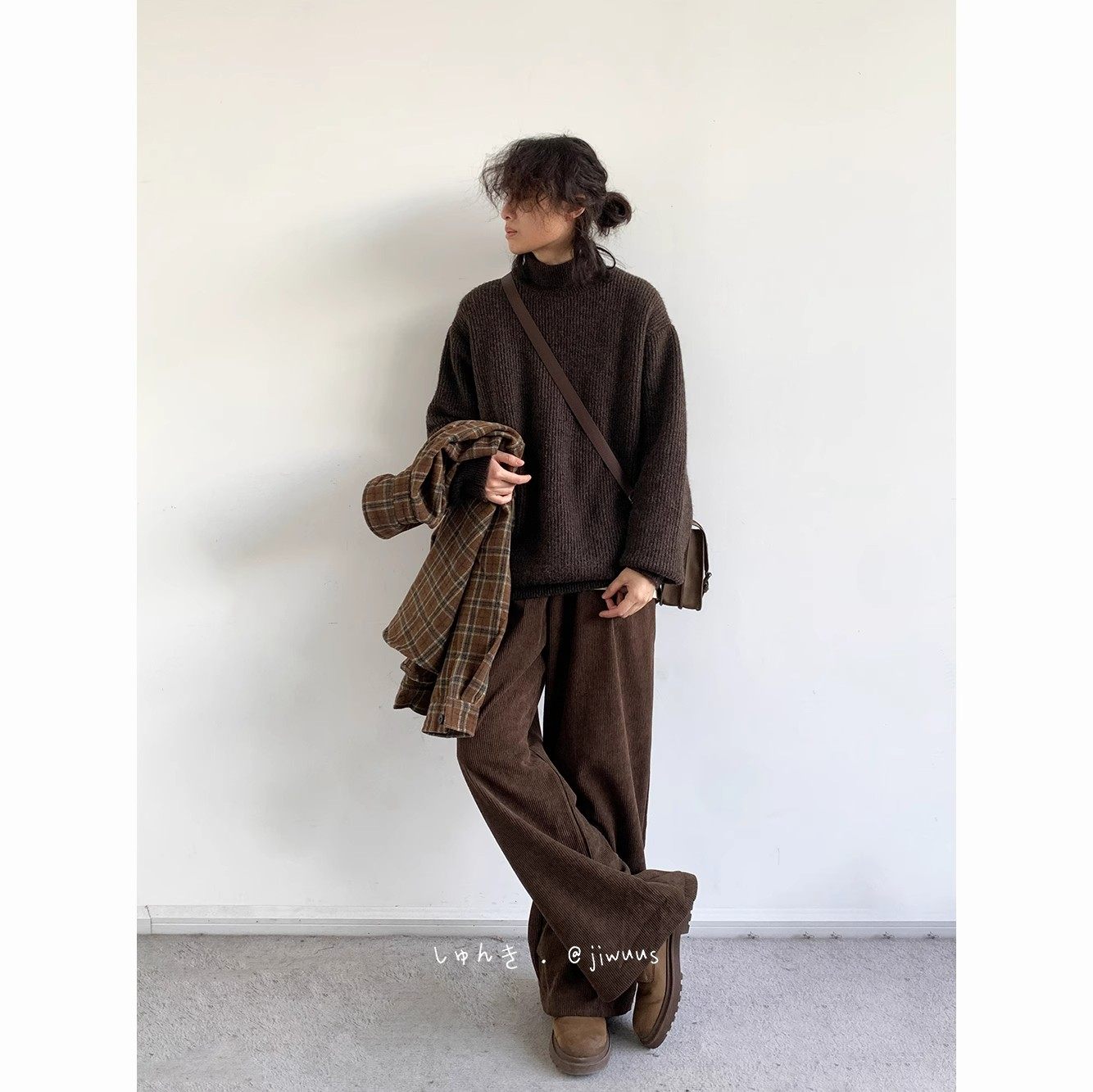 日系中性美拉德基礎款純色毛衣男女秋冬寬松高領百搭套頭針織上衣