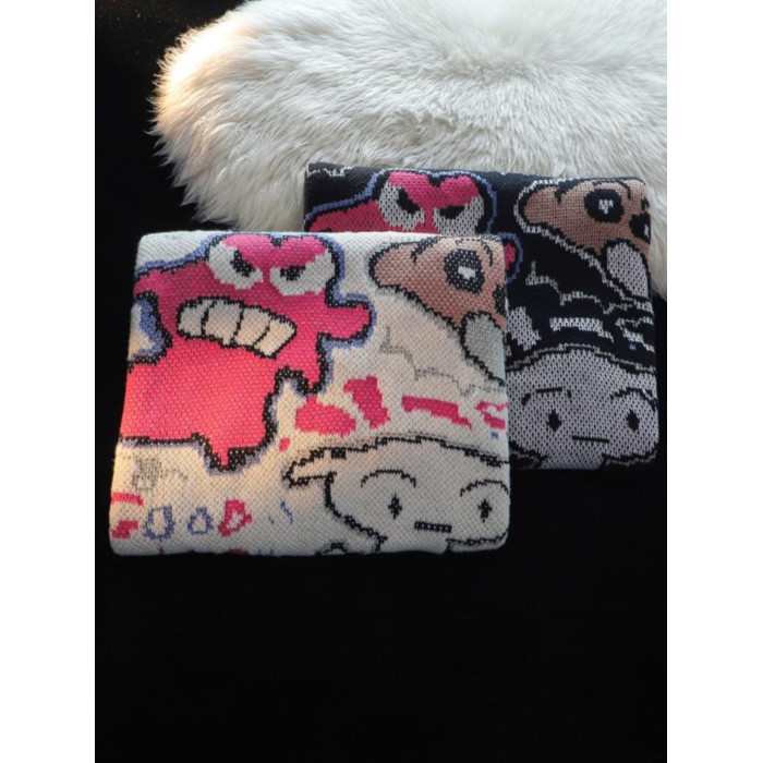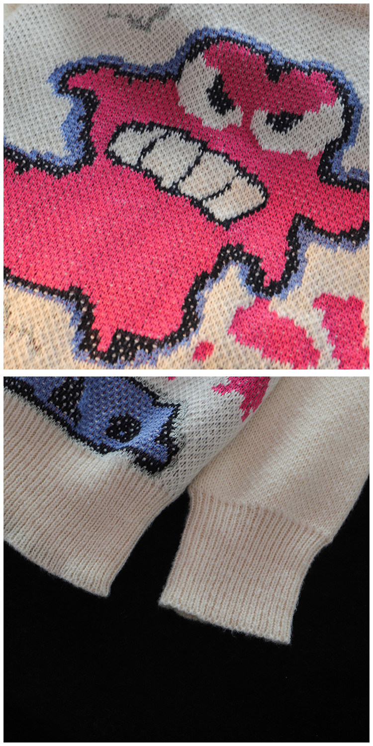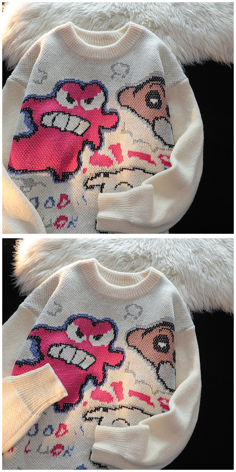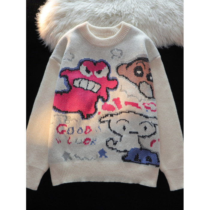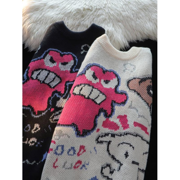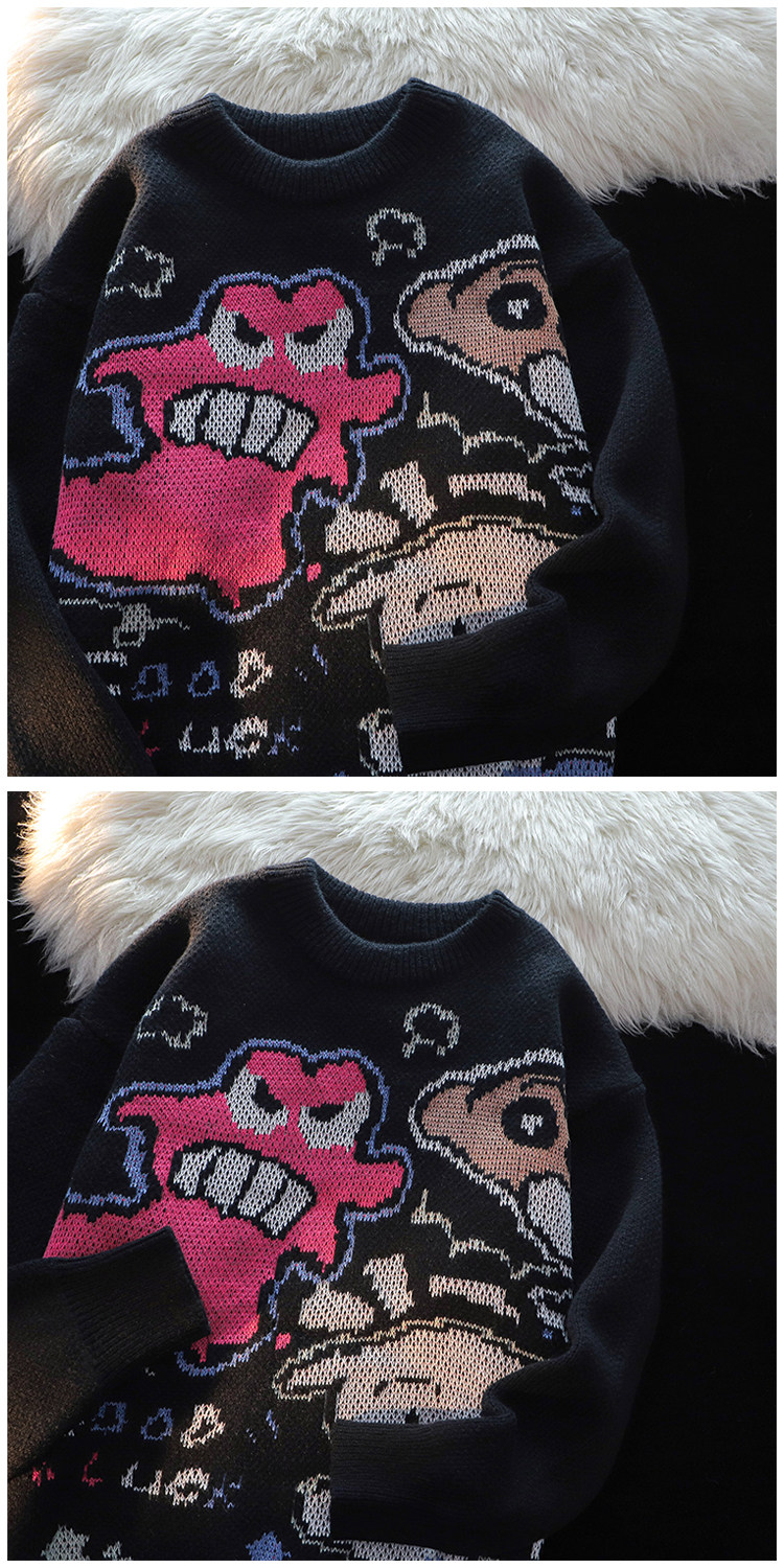 卡通蠟筆小新提花毛衣男女秋冬季寬松情侶上衣圓領情侶長袖針織衫