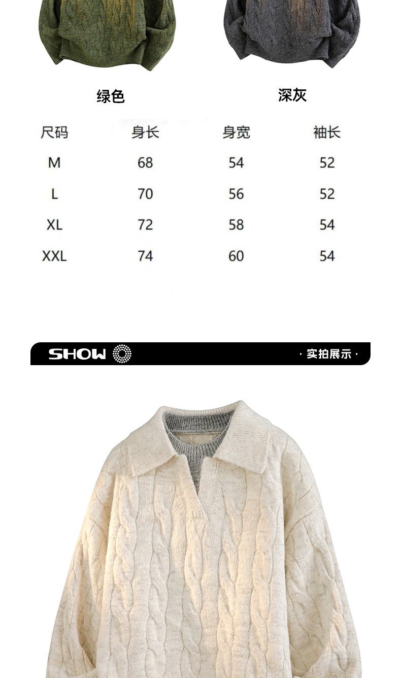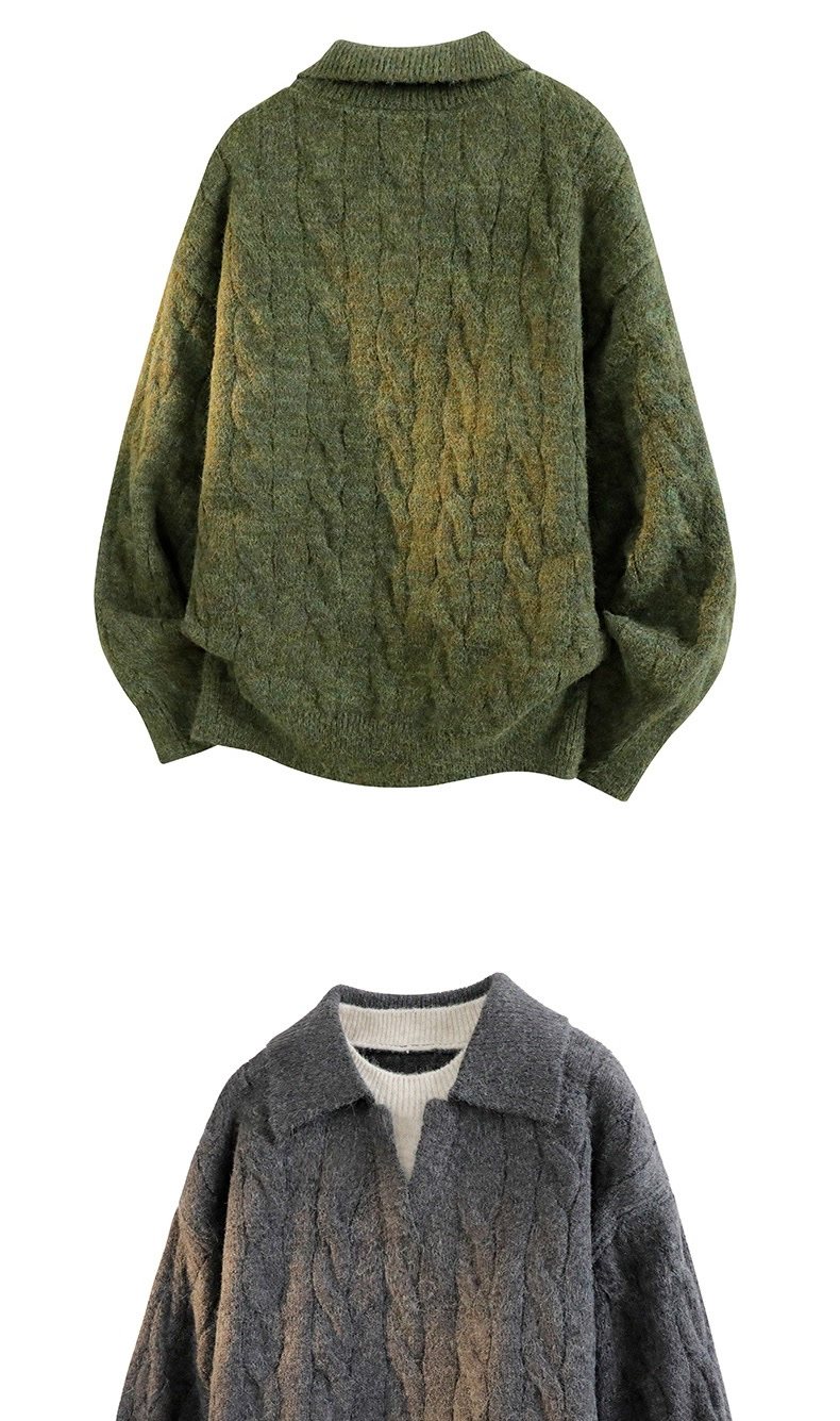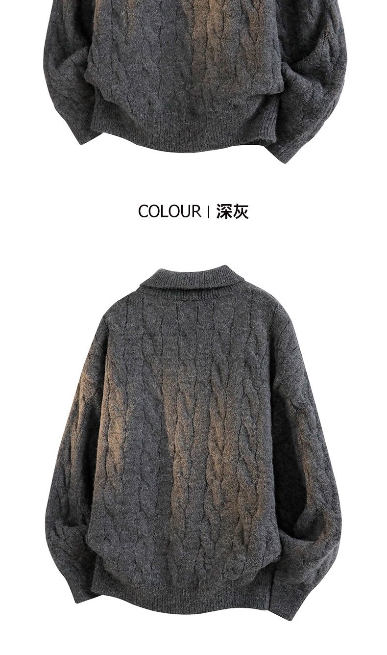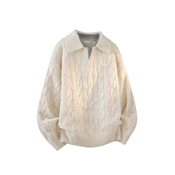 老錢風假兩件翻領毛衣男秋冬慵懶風內搭保暖寬松休閒上衣針織線衫