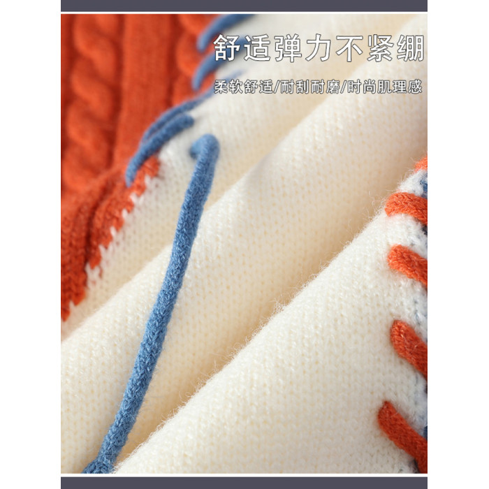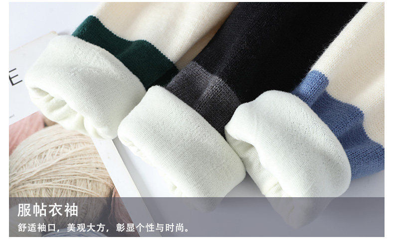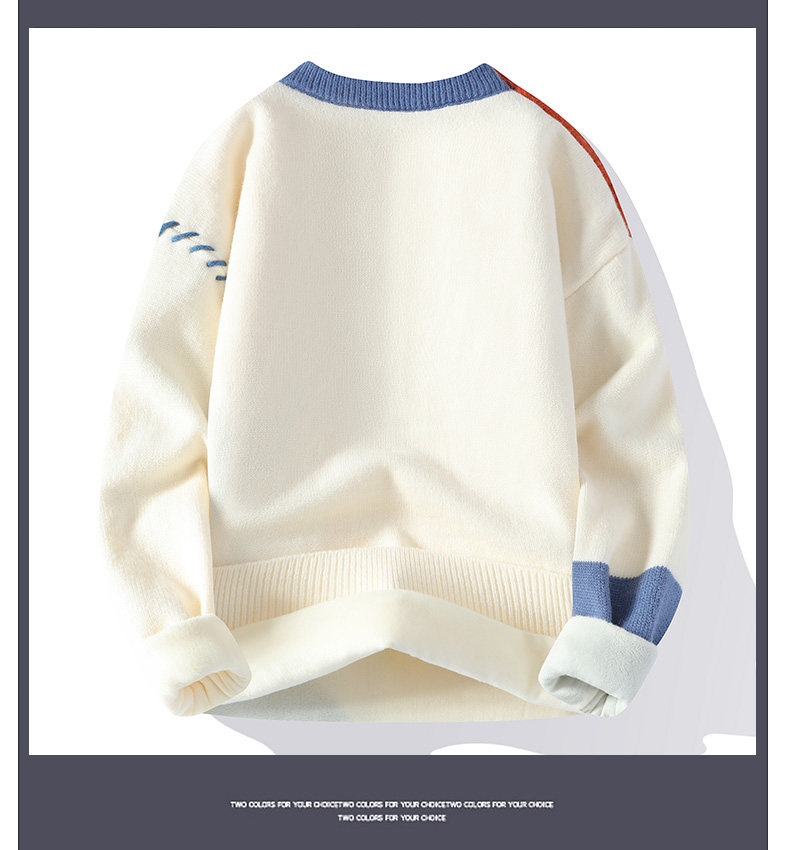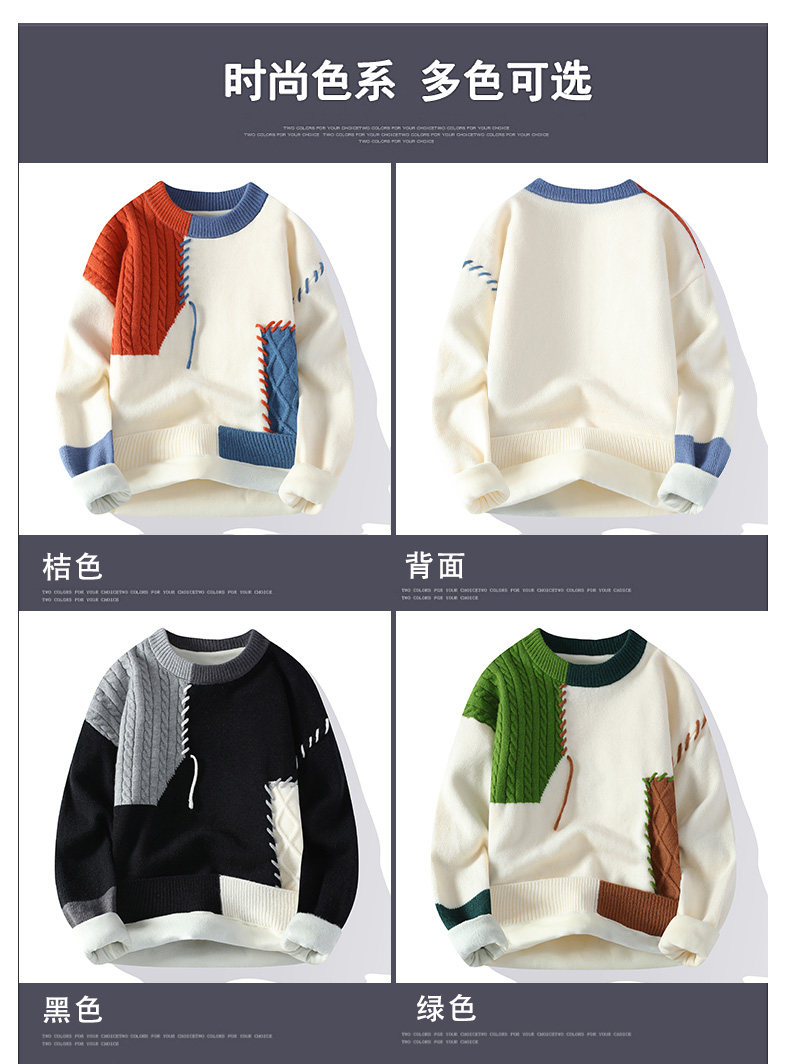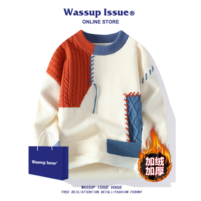 WASSUP ISSUE美式拼接撞色毛衣男士秋冬季加絨保暖慵懶風針織衫男