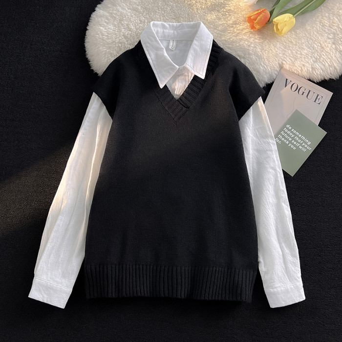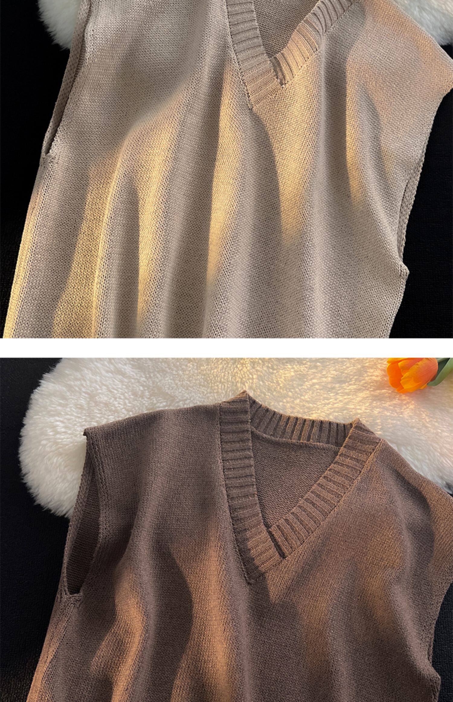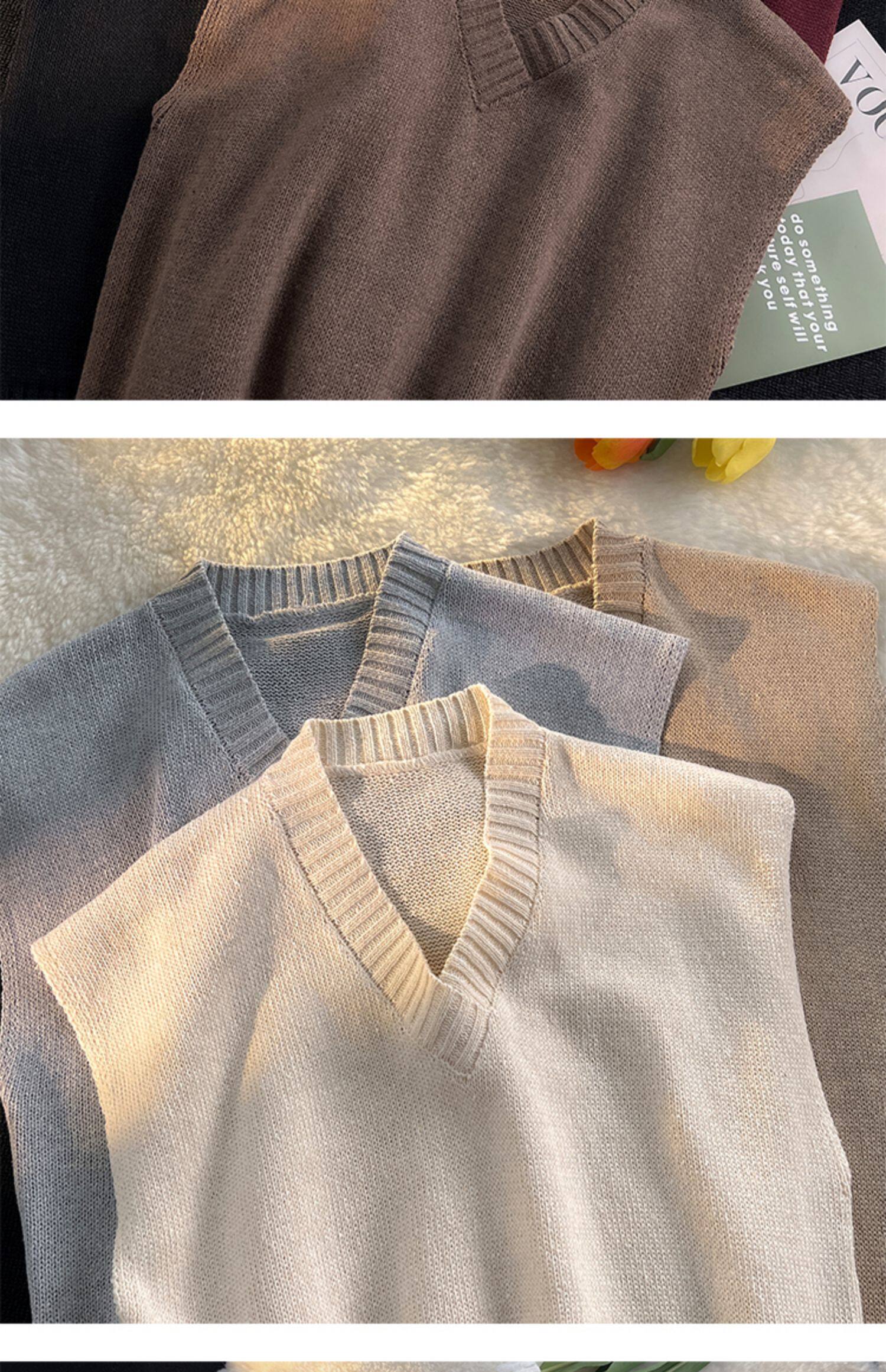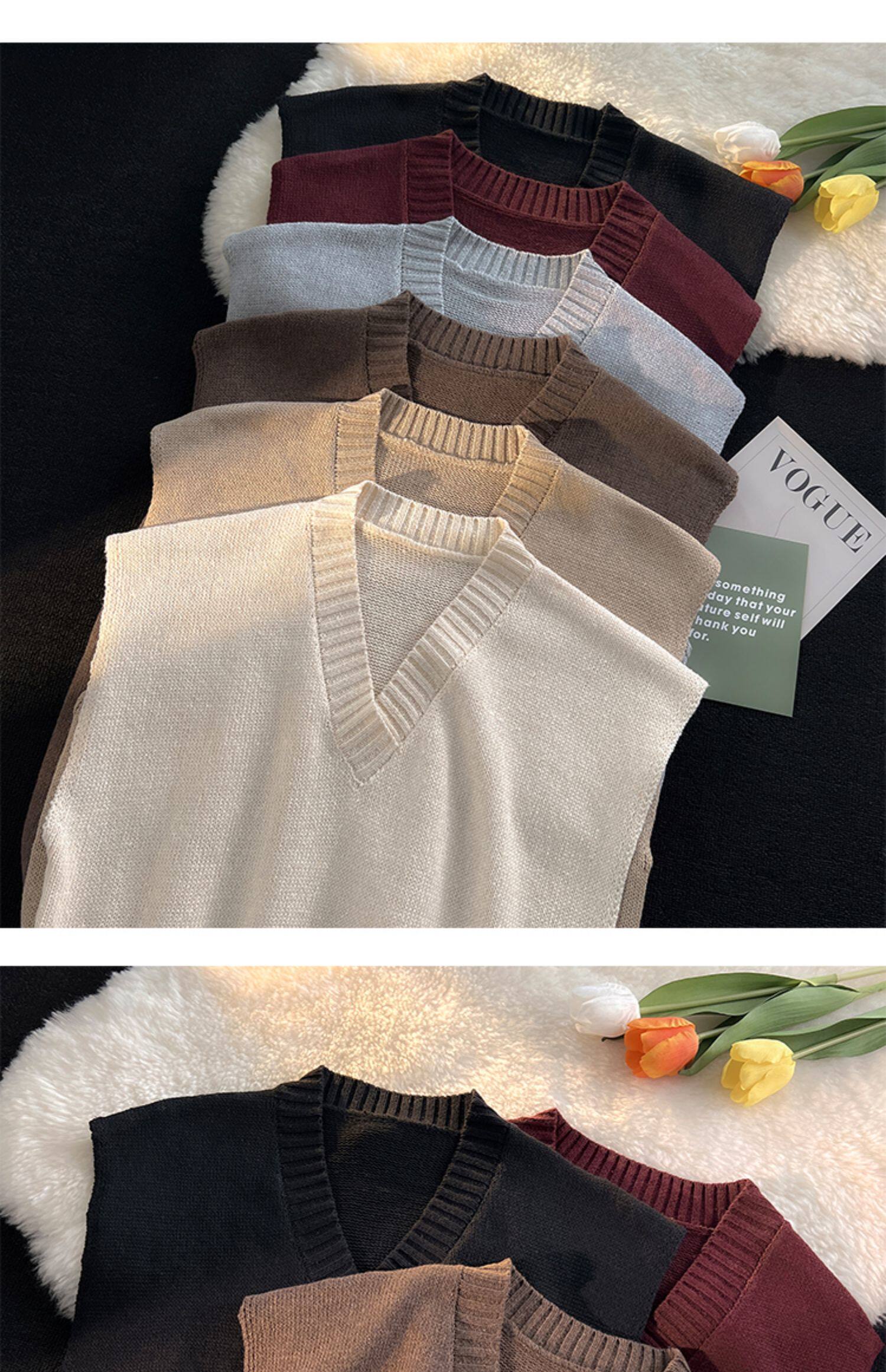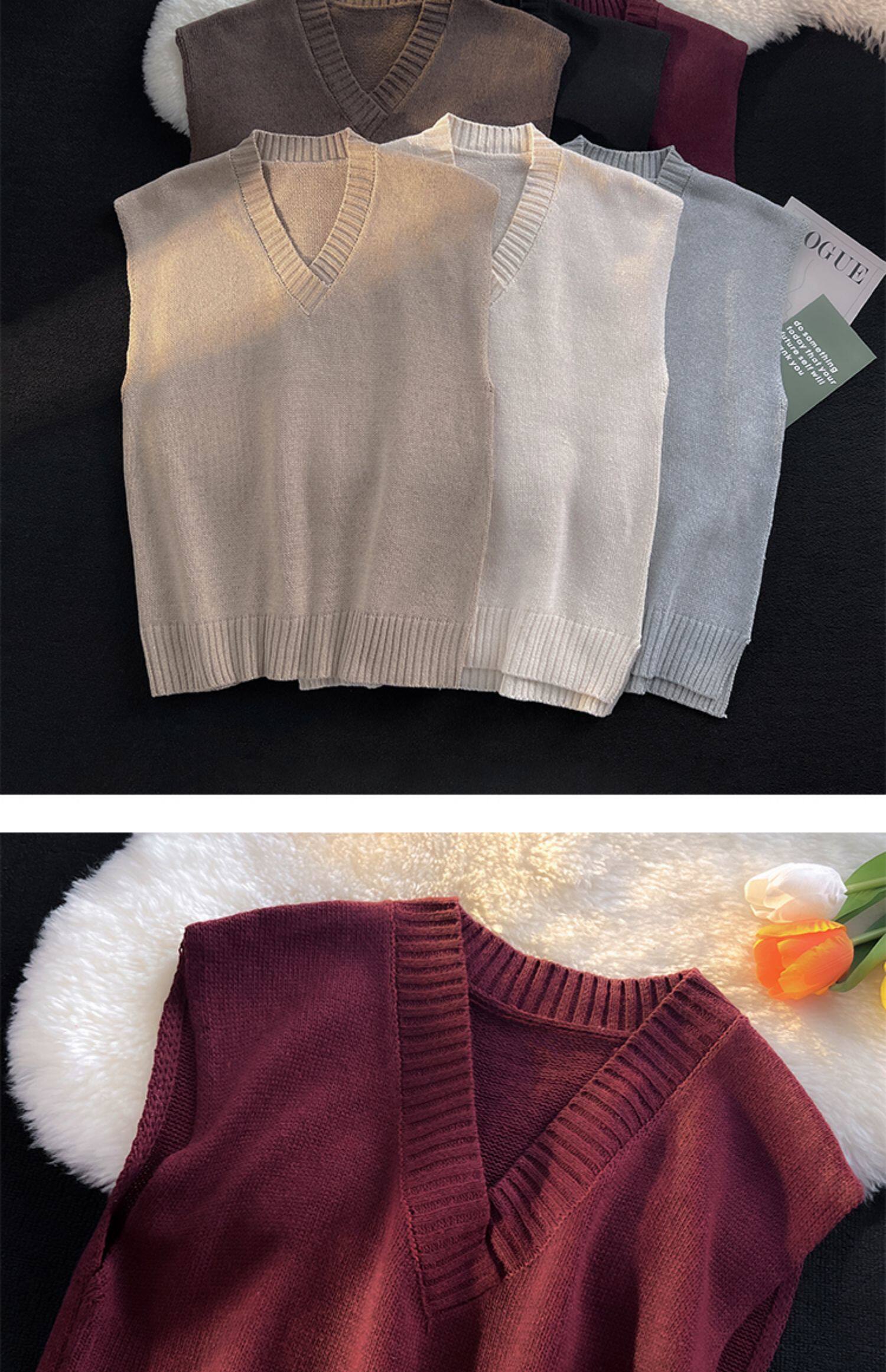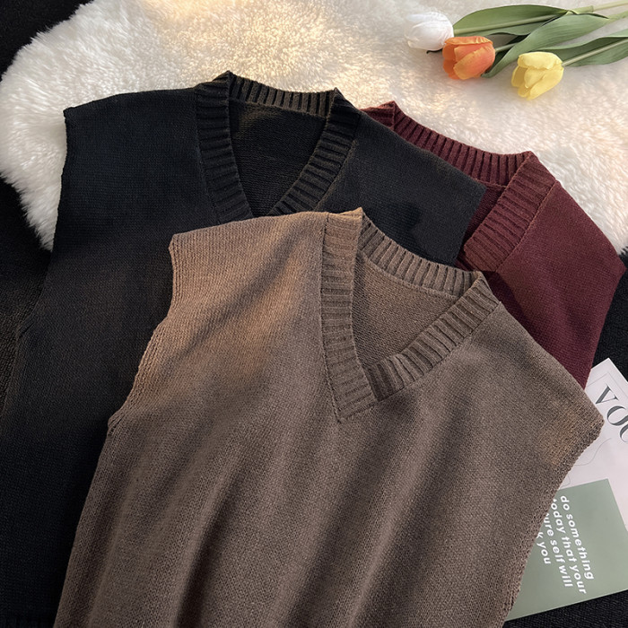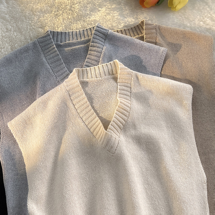 日系V領毛織背心男秋冬季百搭針織坎肩馬甲寬松潮牌情侶無袖毛衣