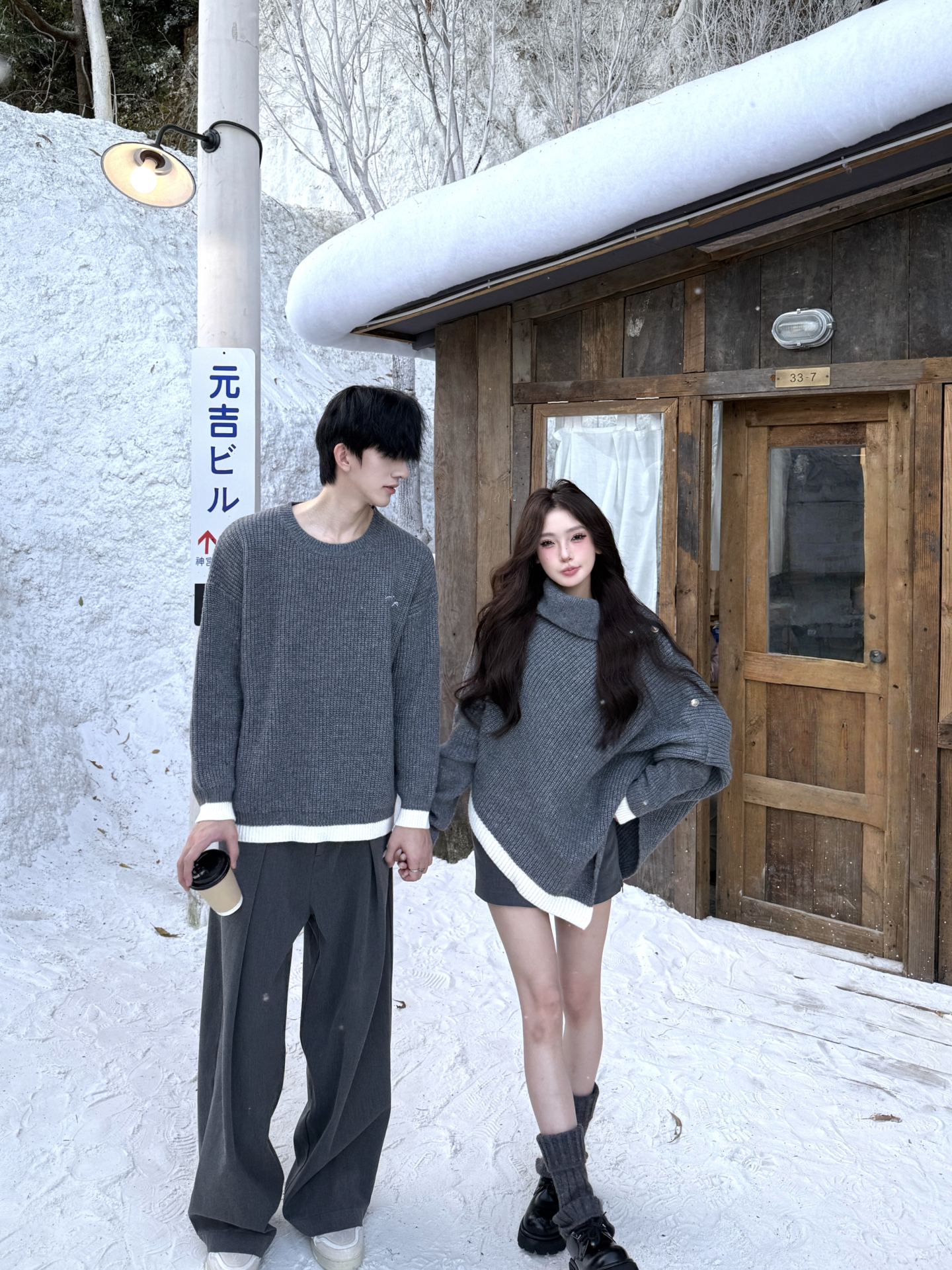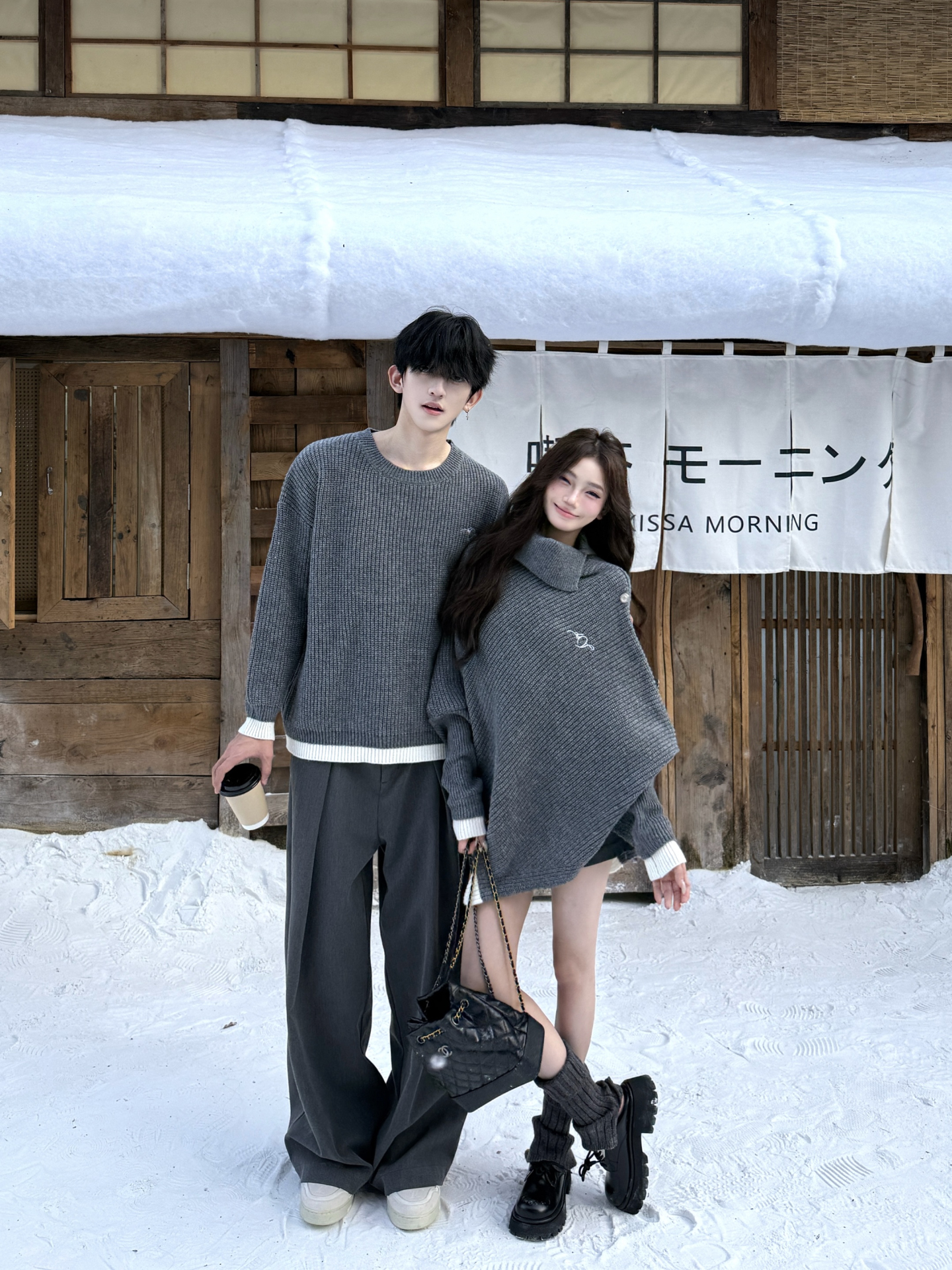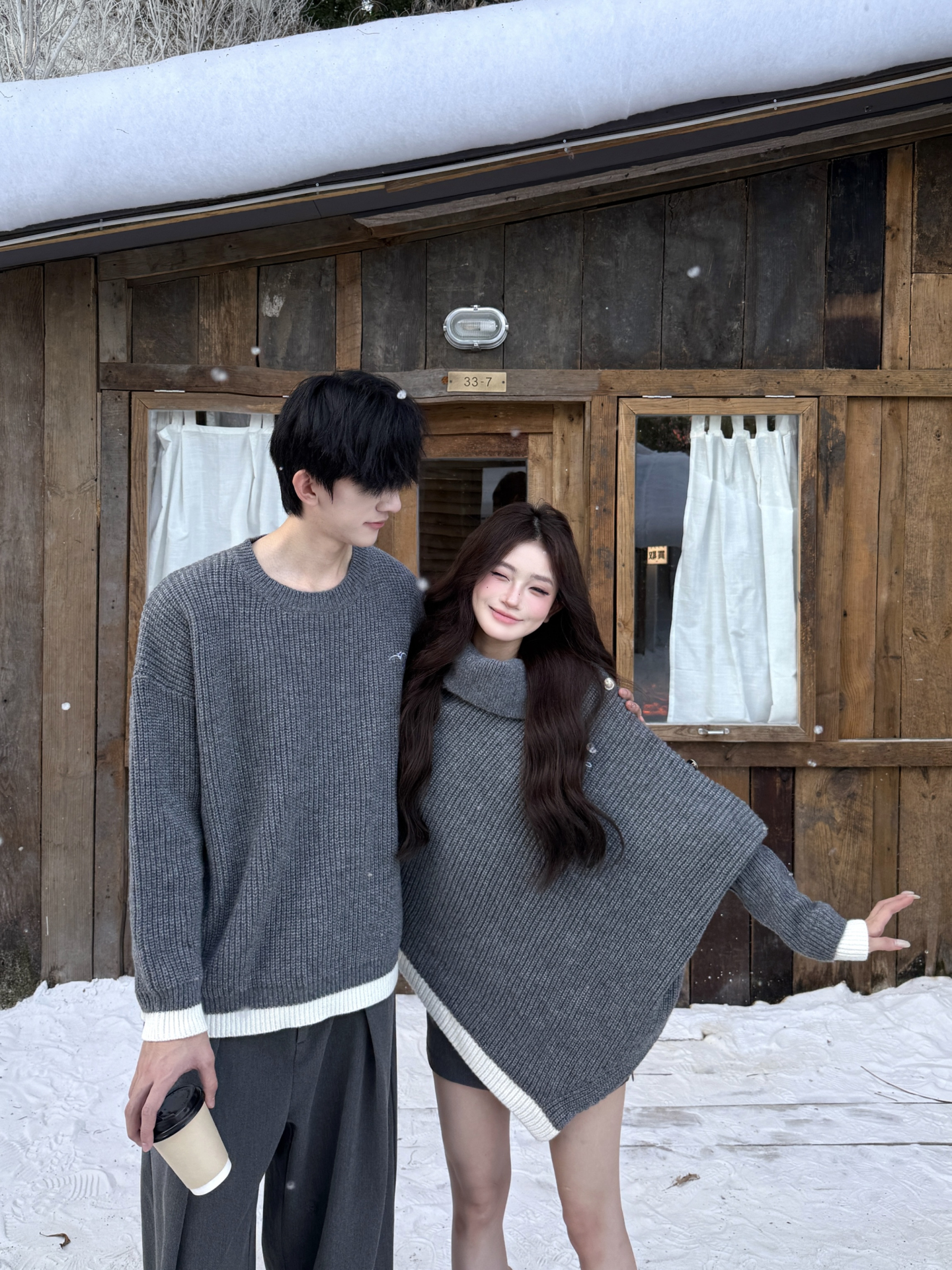 小衆設計感情侶裝毛衣秋冬cleanfit高領不規則氣質鬭篷針織衫外套
