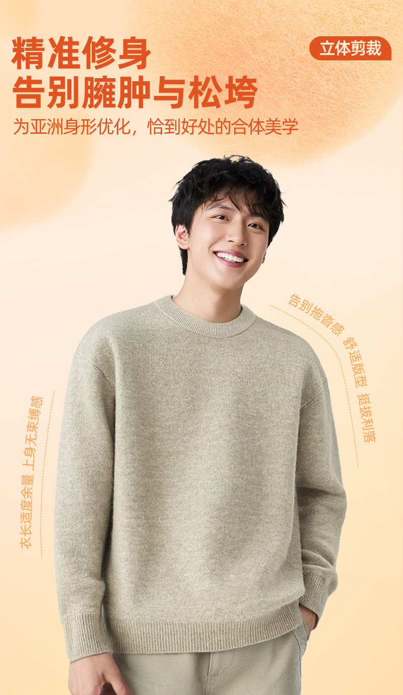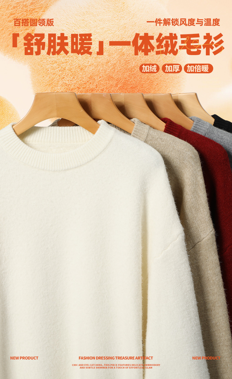 真維斯LIFE加絨加厚毛衣男冬季重磅一體絨保暖毛線衣男士針織衫M