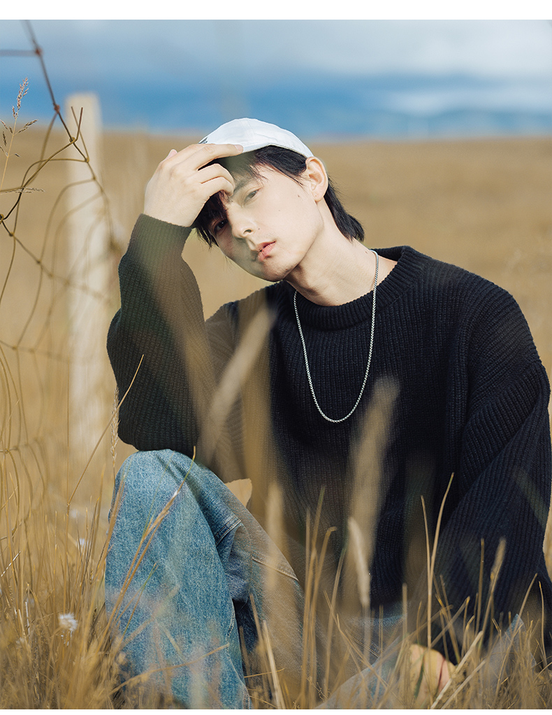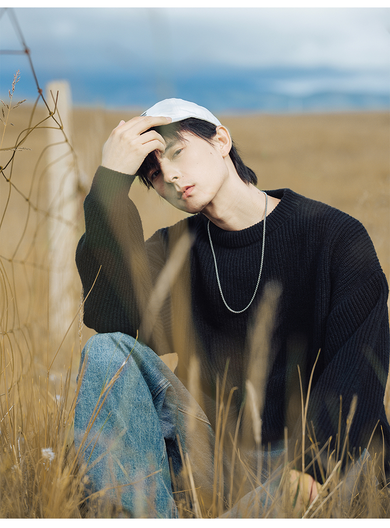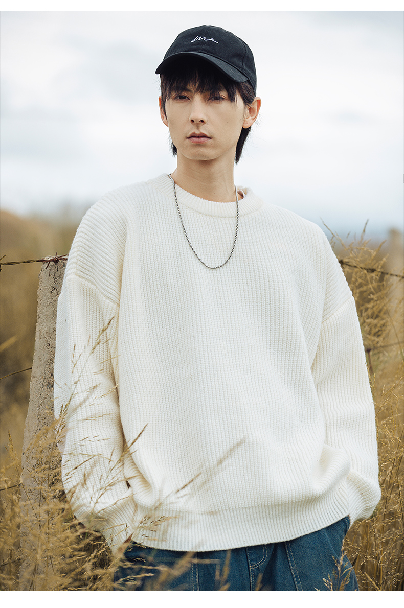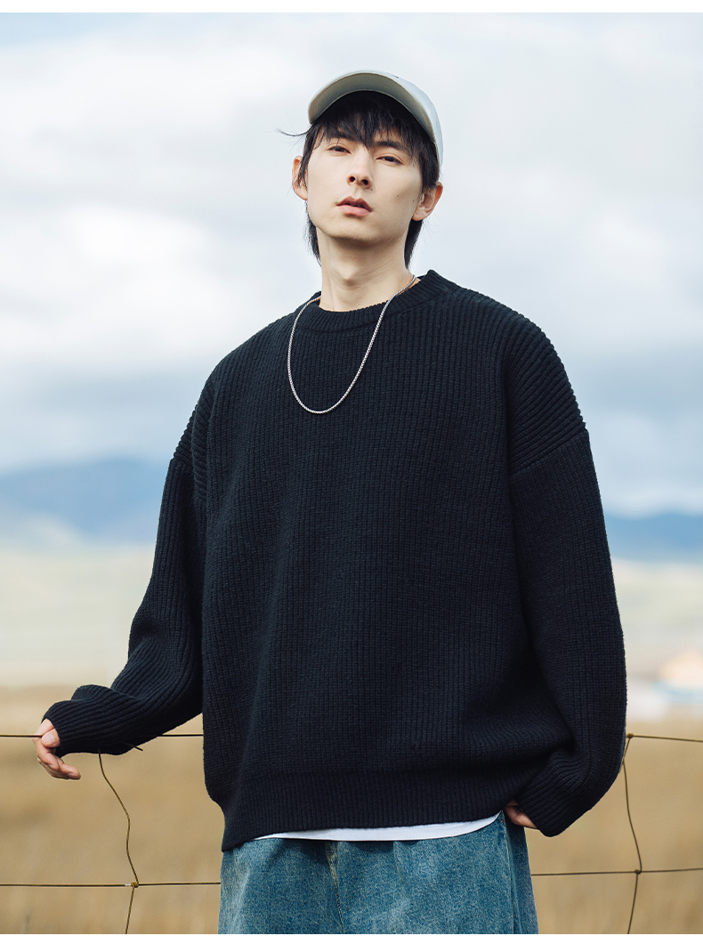 WASSUP ROCKY復古純色百搭圓領毛衣打底衫男秋冬季保暖針織衫外套