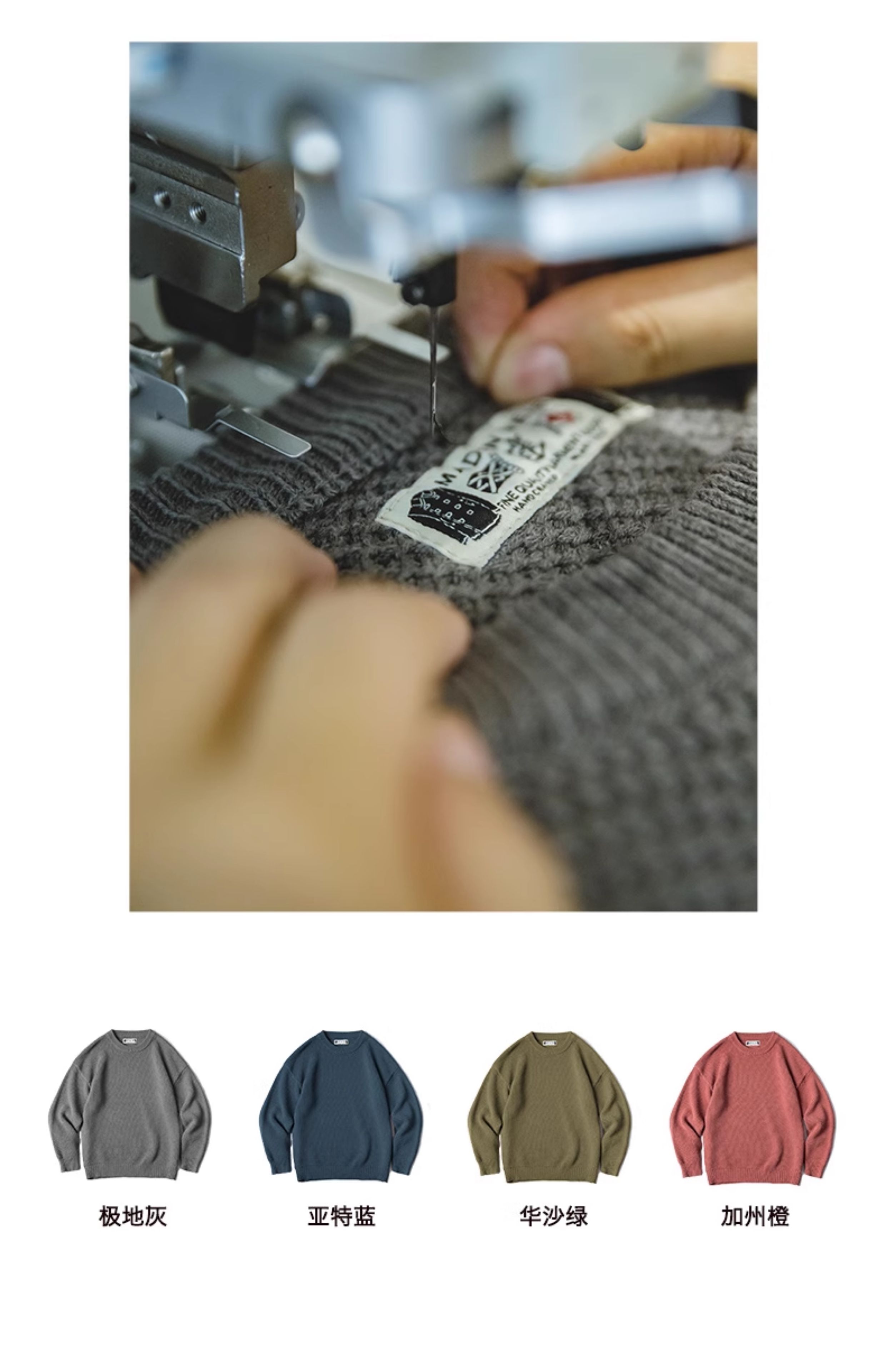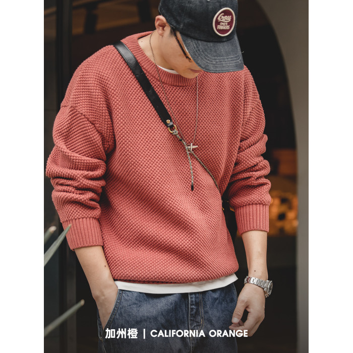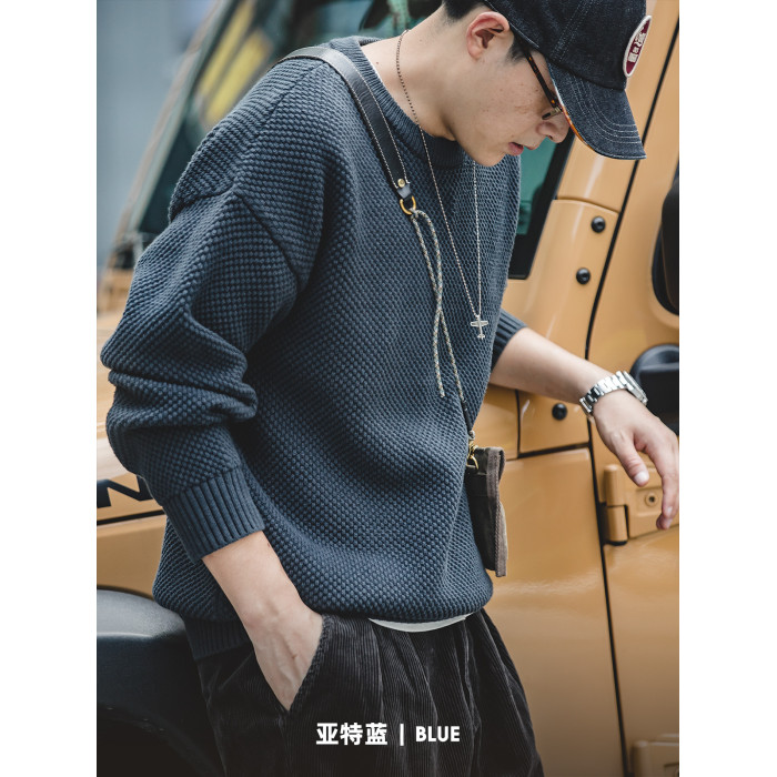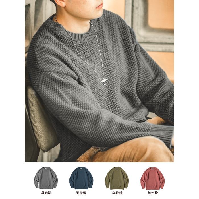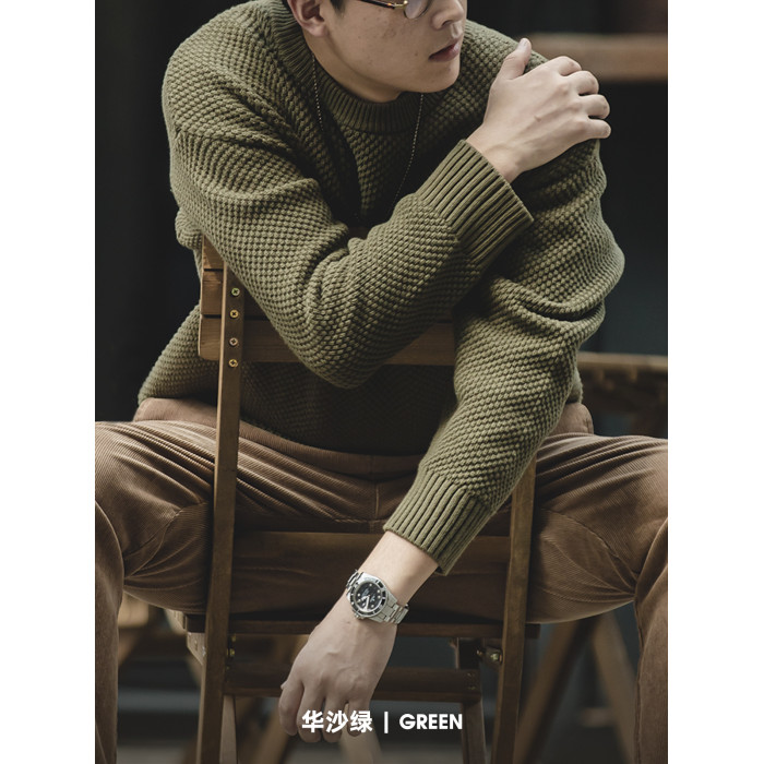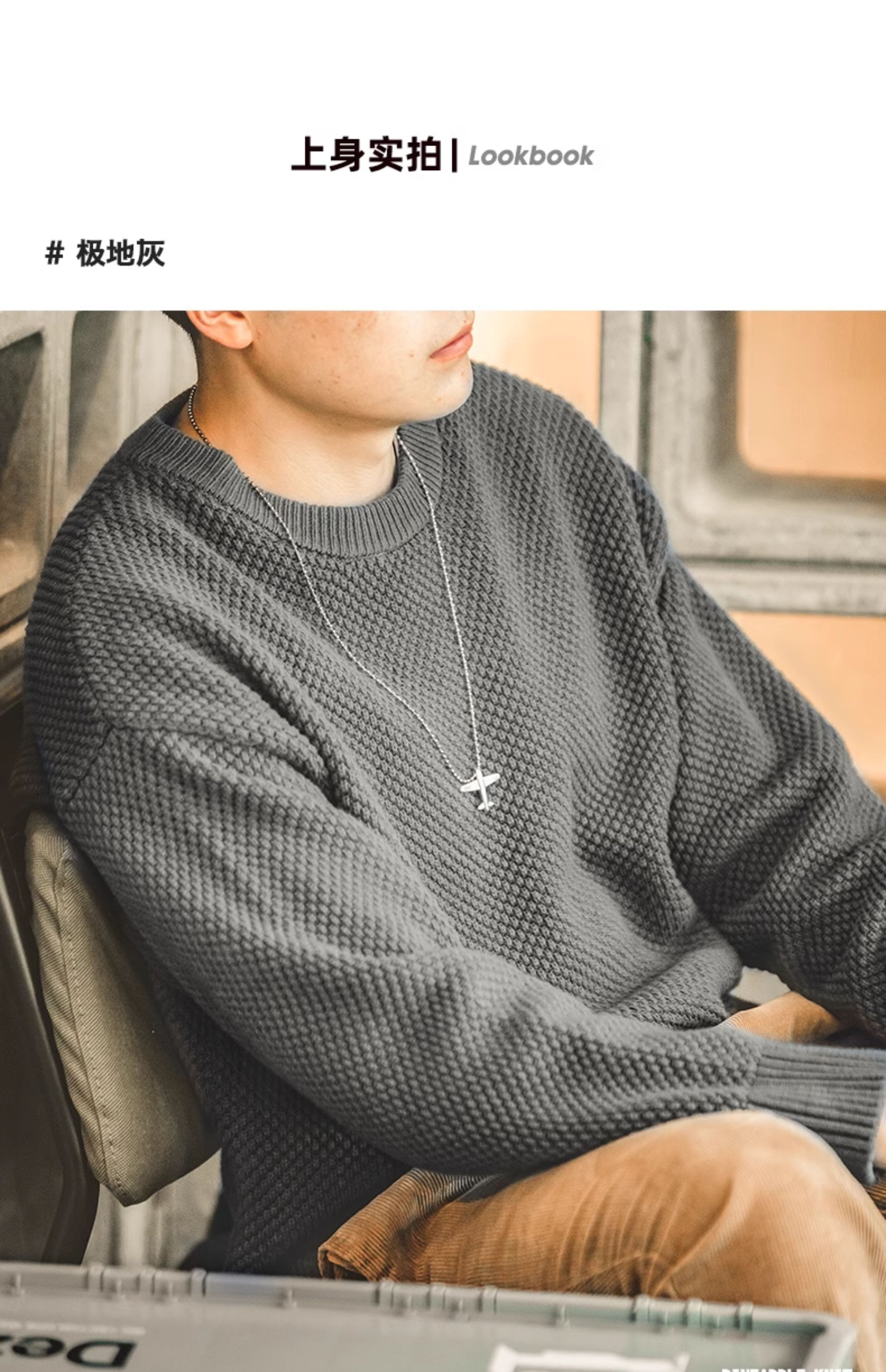 馬登工裝美式復古重磅菠蘿紋毛衣加厚圓領內搭慵懶針織衫男衣秋