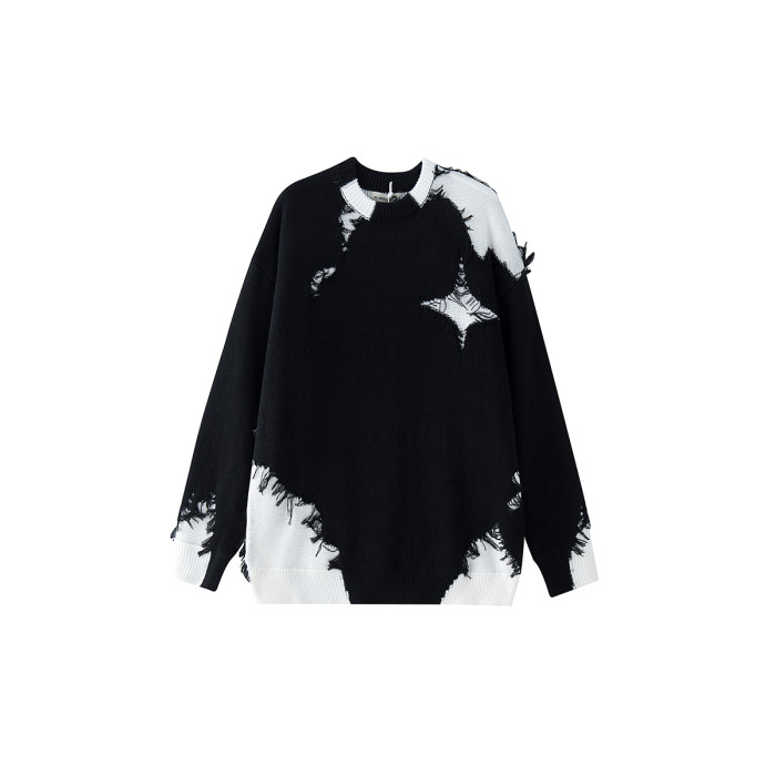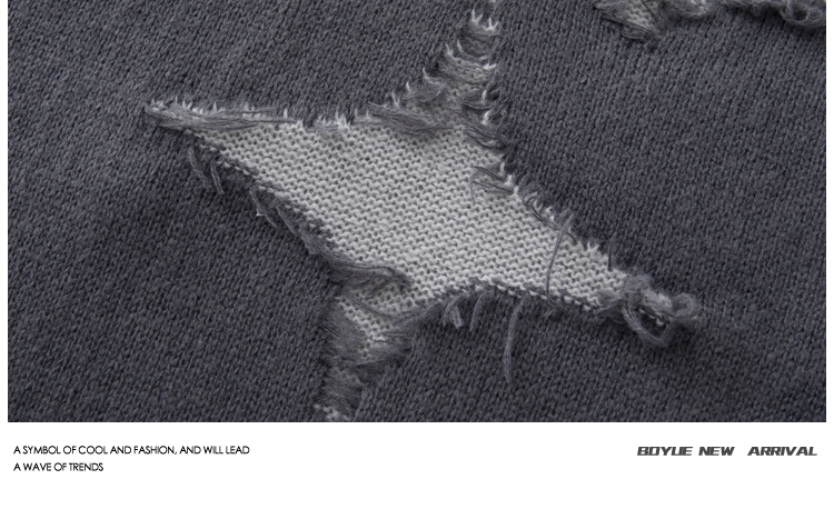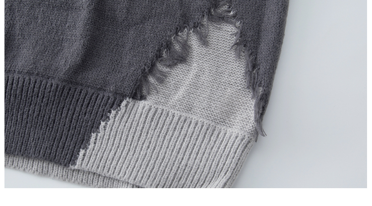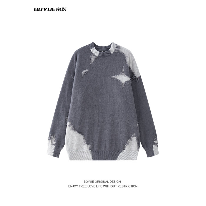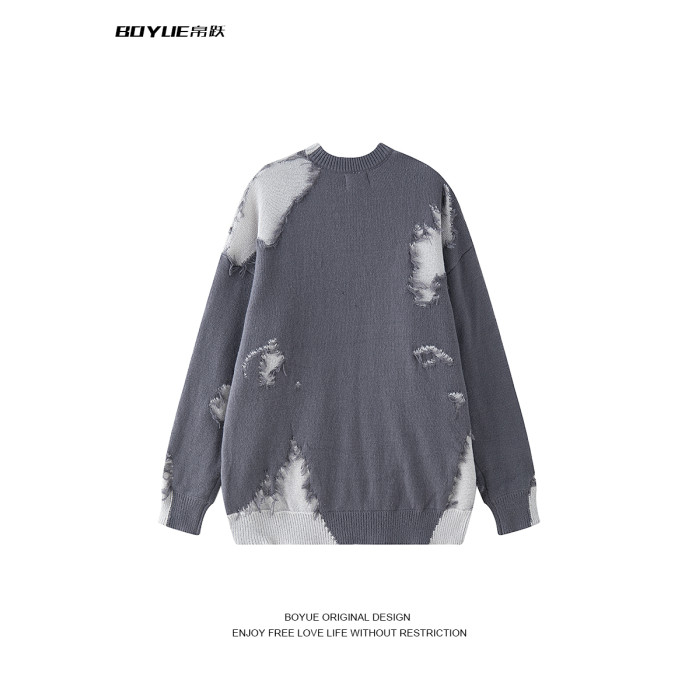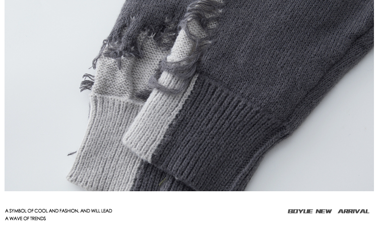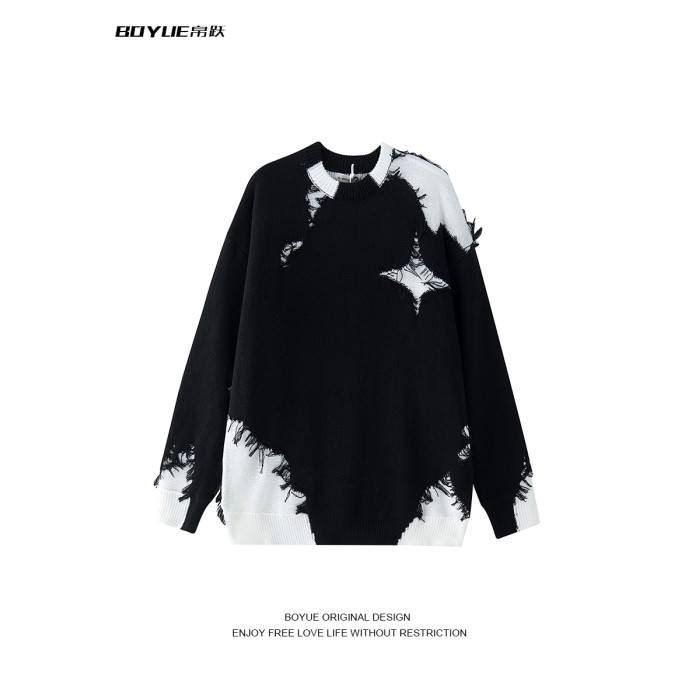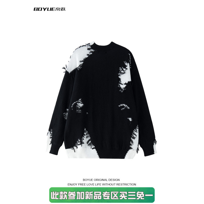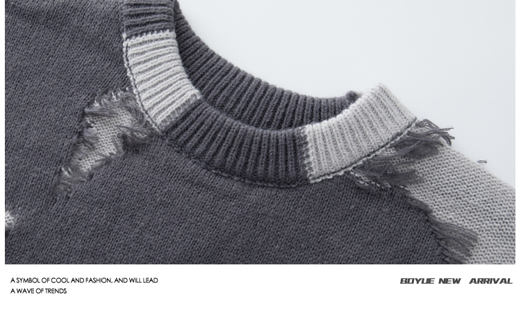 BOYUE帛躍美式高街嘻哈拼接毛邊套頭毛衣潮牌設計感情侶針織衫男