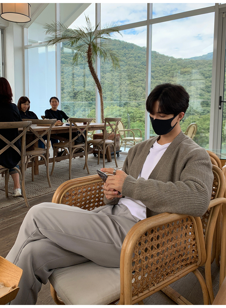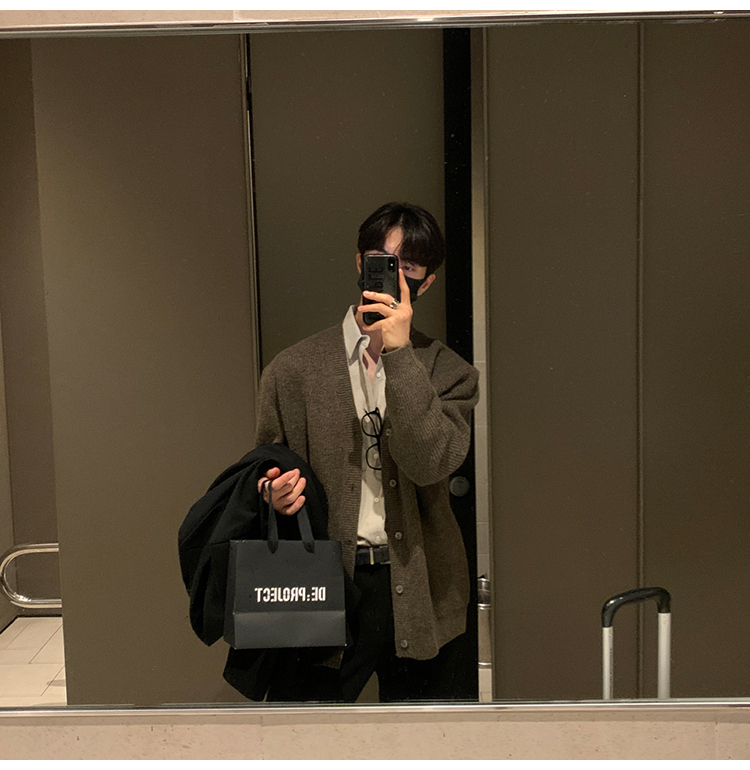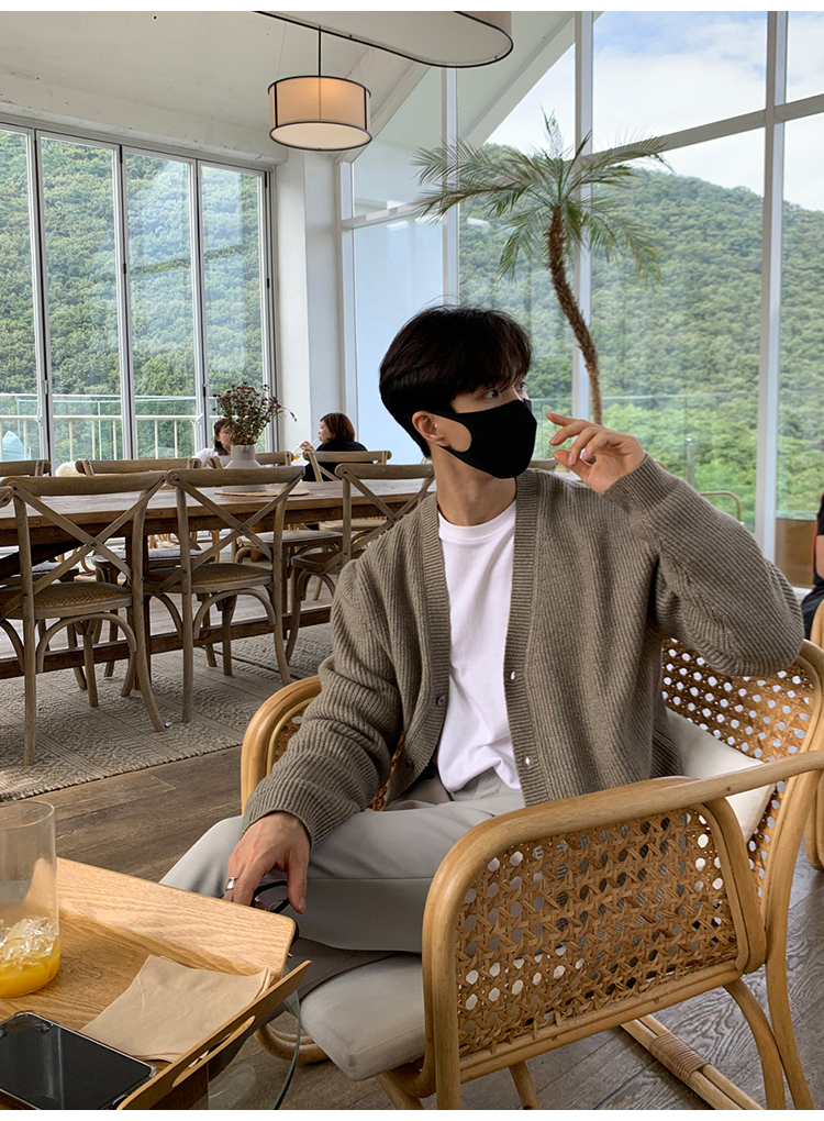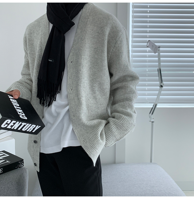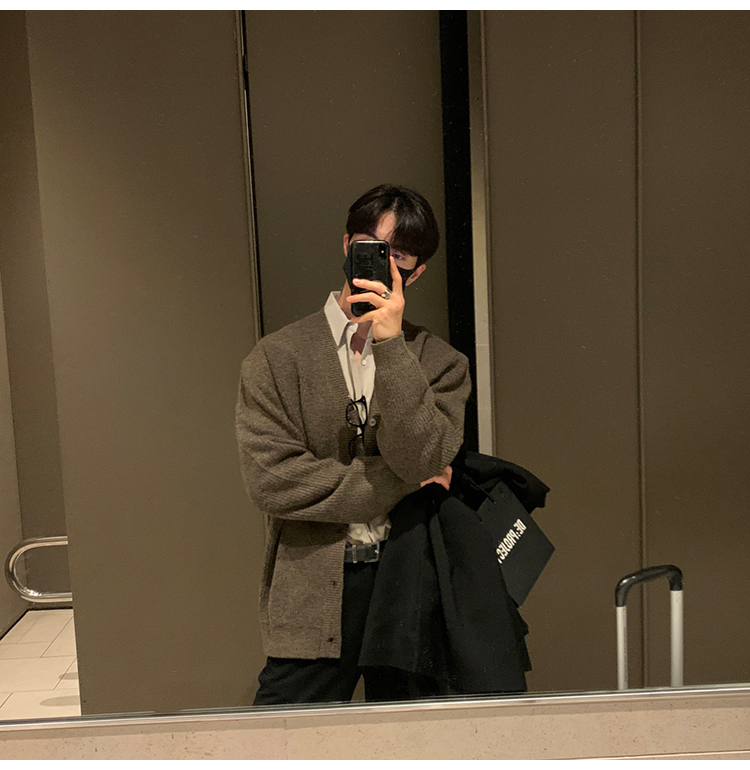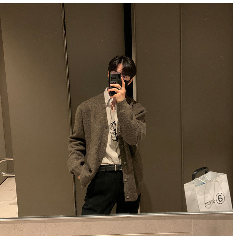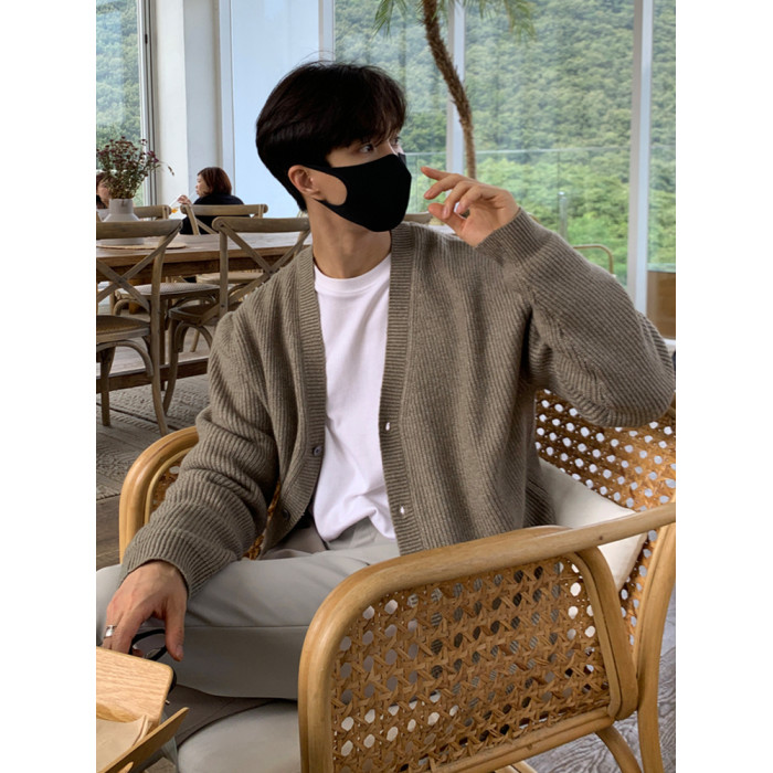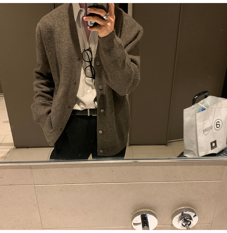 老錢風針織開衫毛衣男外套秋冬季韓版寬松休閒慵懶風V領純色線衣
