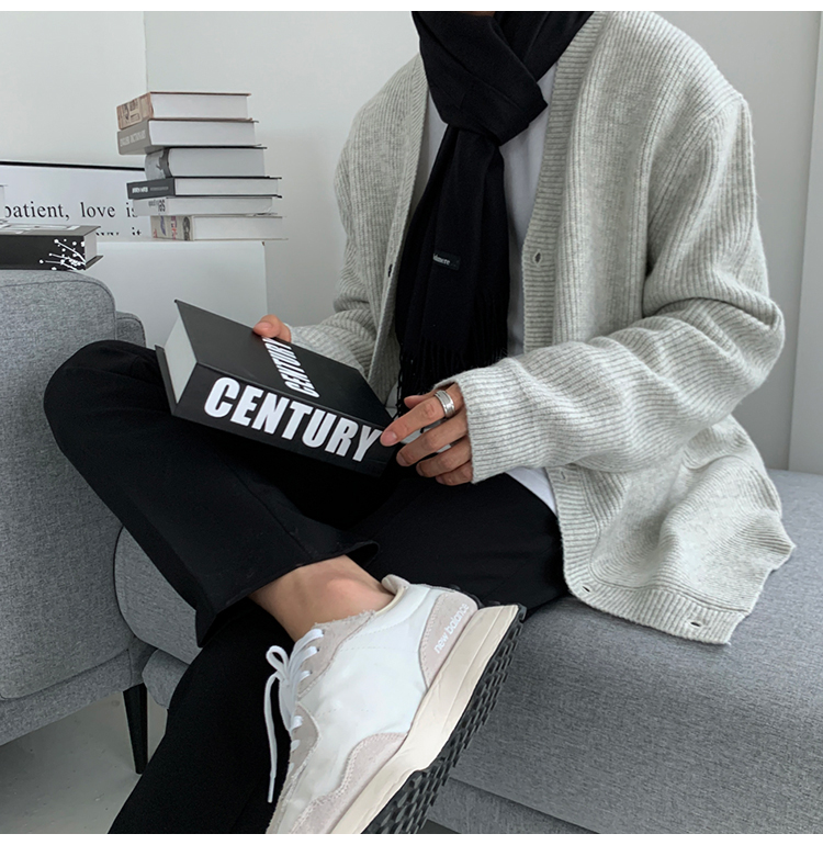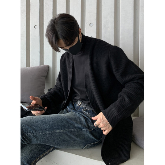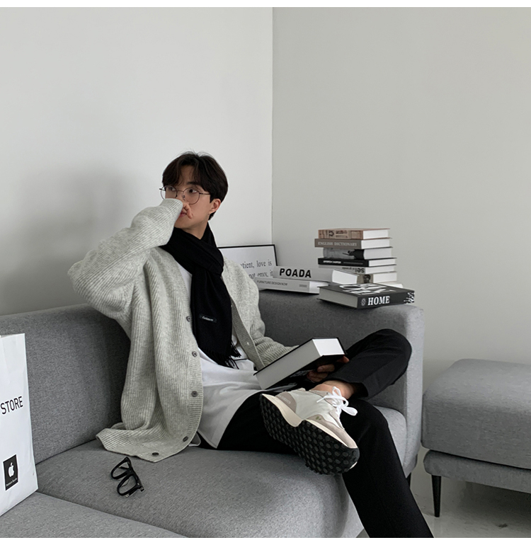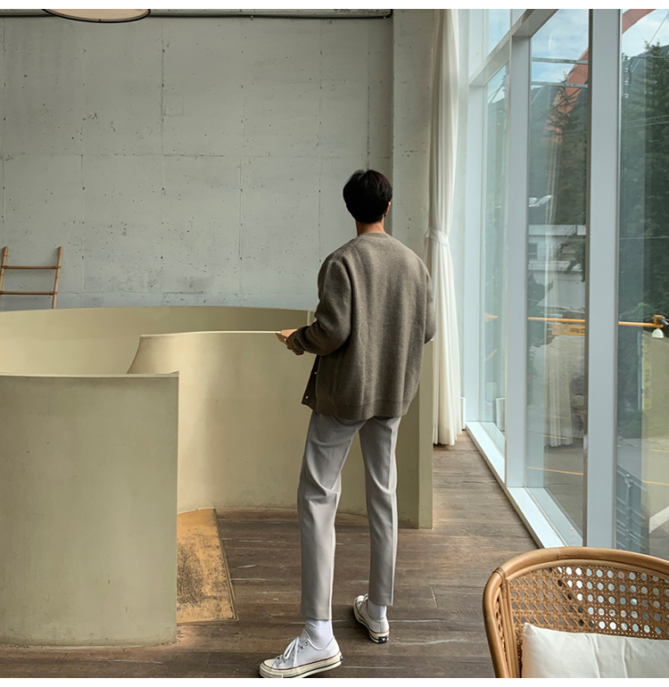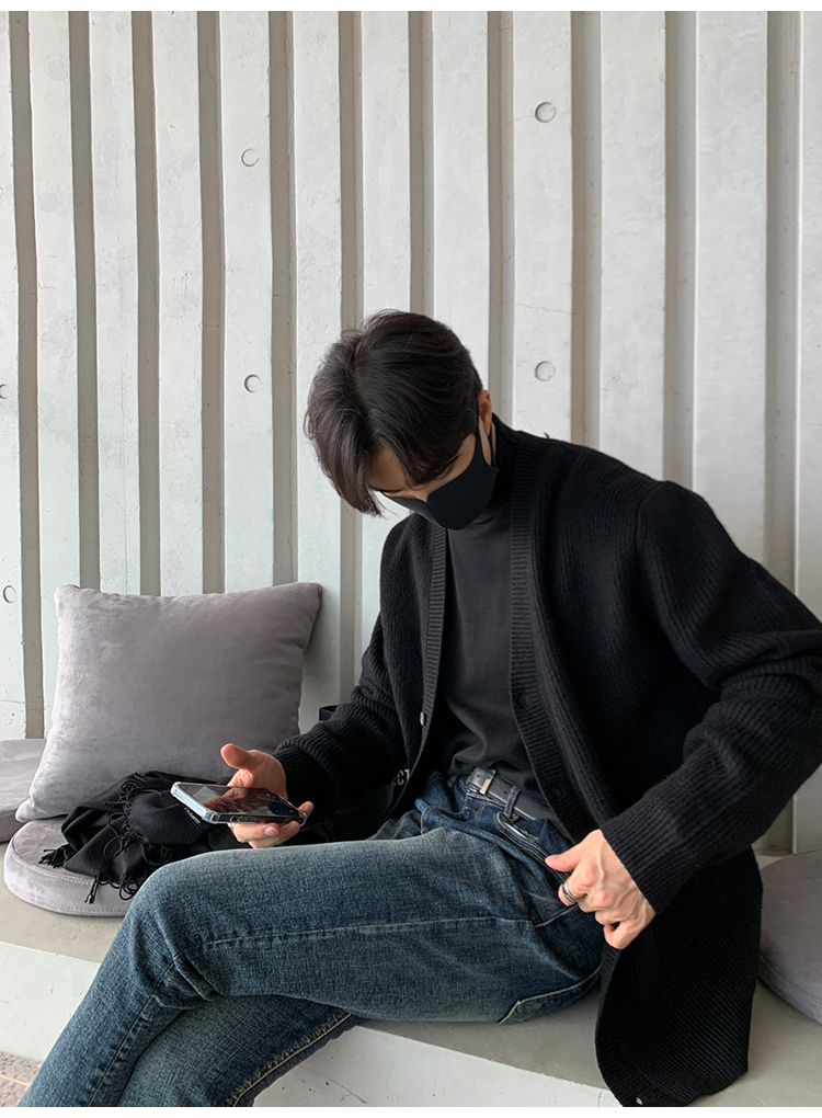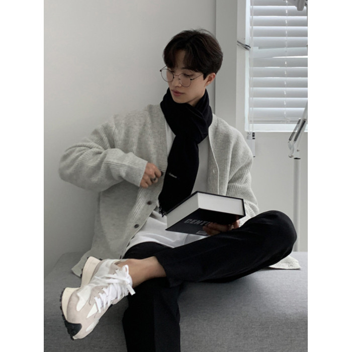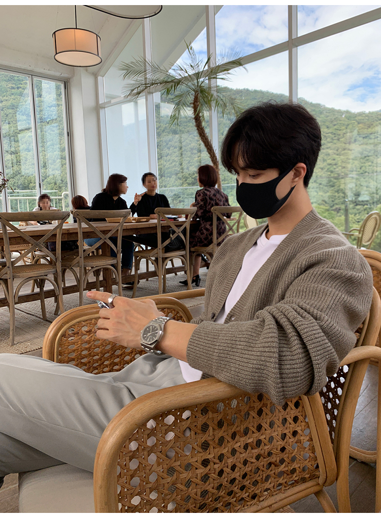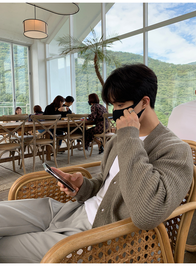 老錢風針織開衫毛衣男外套秋冬季韓版寬松休閒慵懶風V領純色線衣