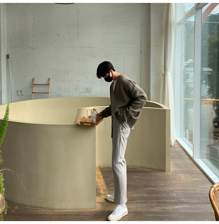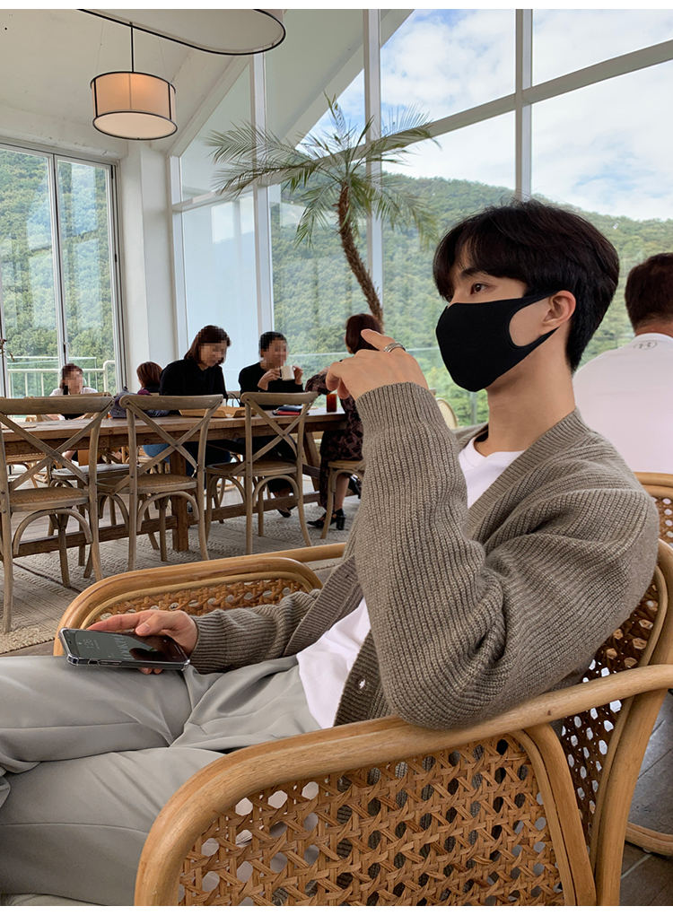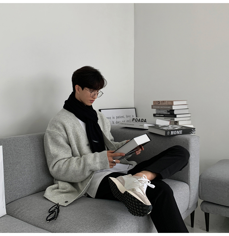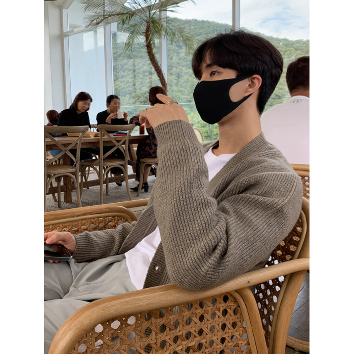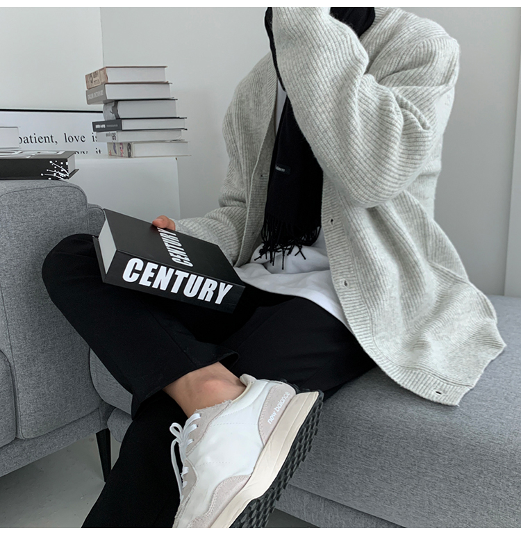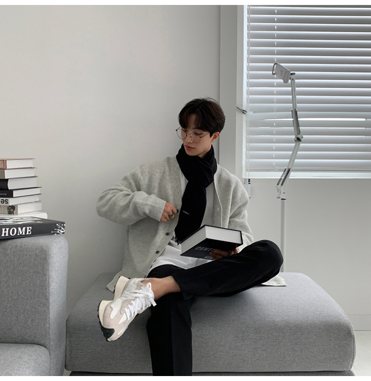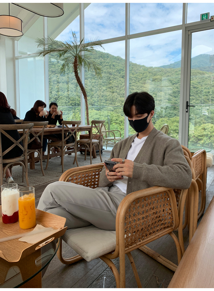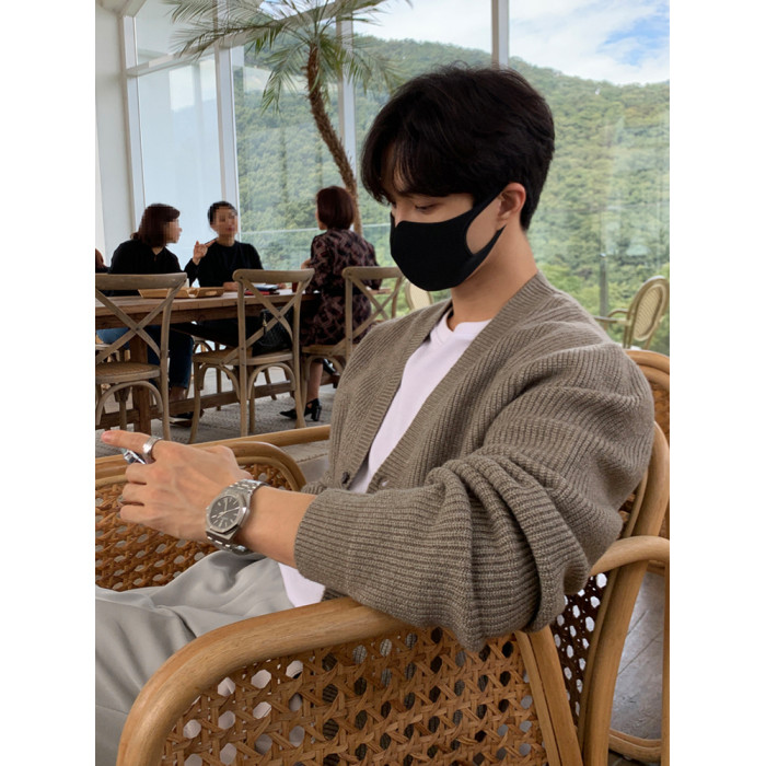 老錢風針織開衫毛衣男外套秋冬季韓版寬松休閒慵懶風V領純色線衣