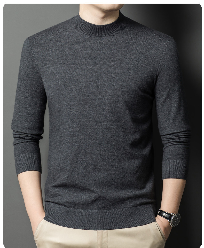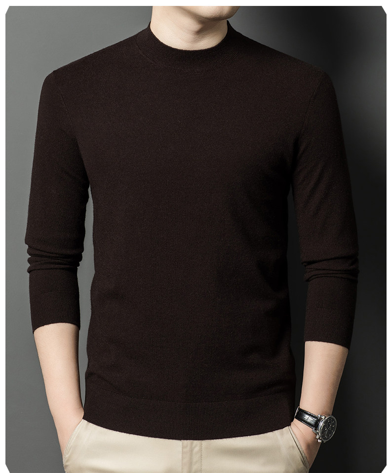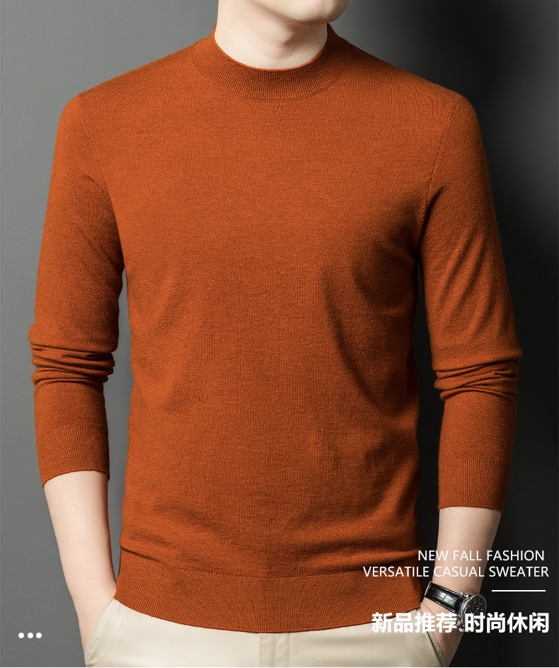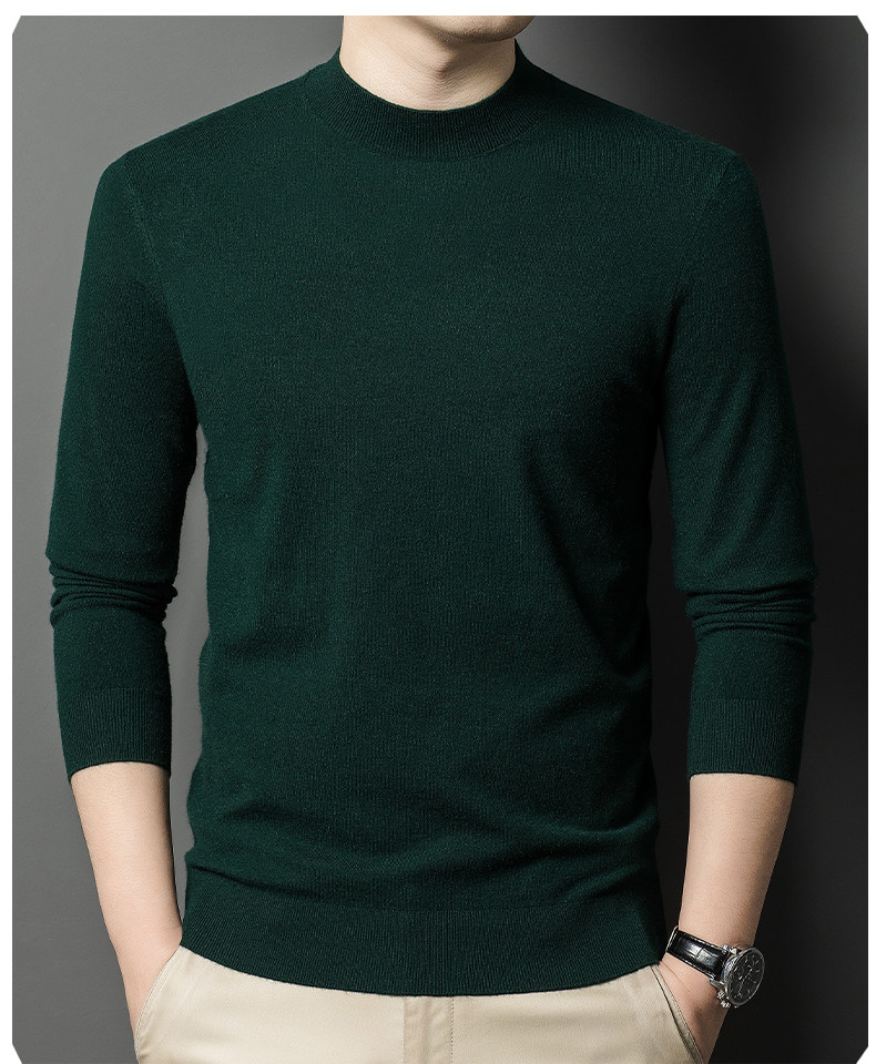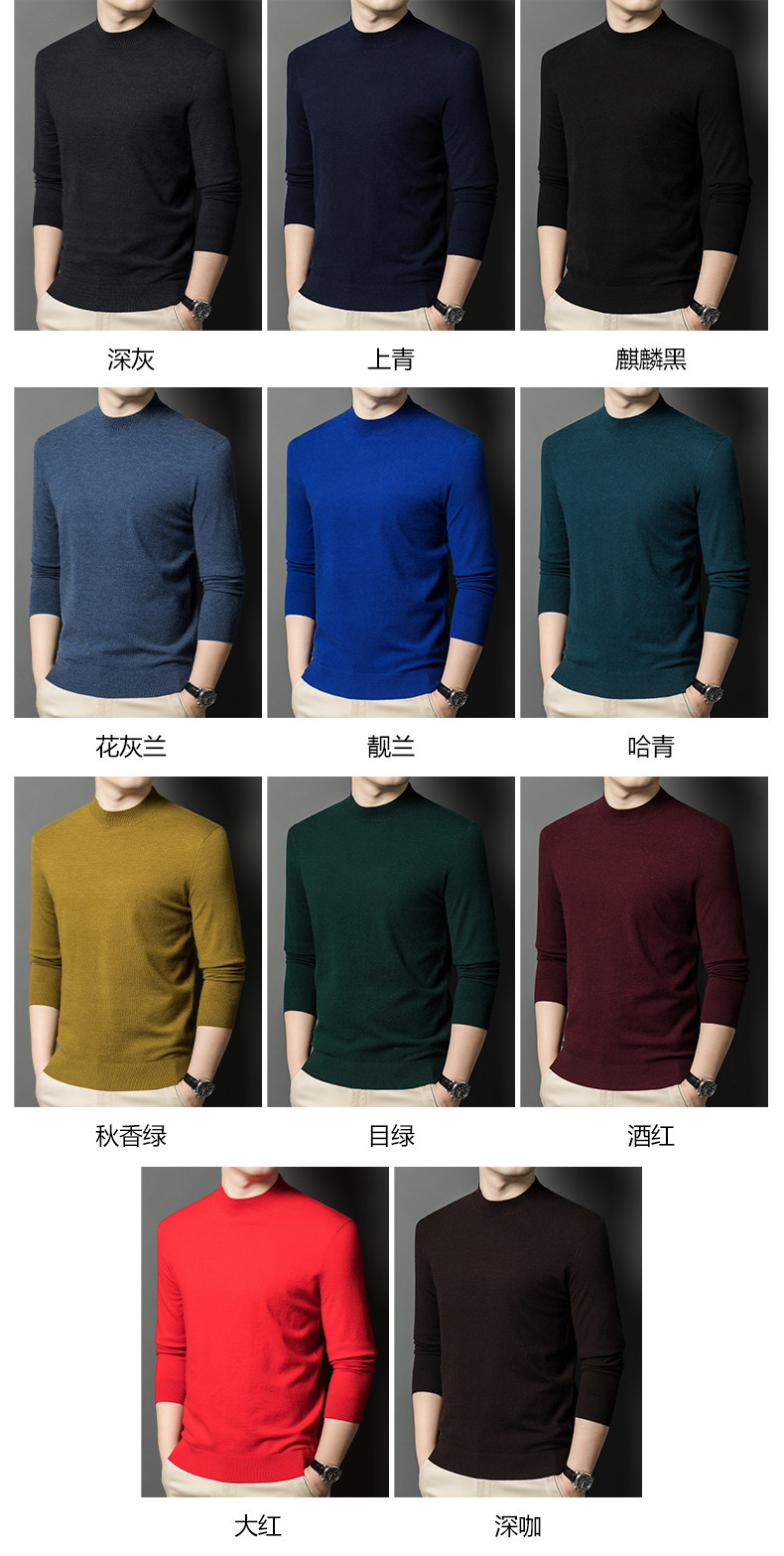 啄木鳥精紡羊毛衫男士冬季半高領純色高檔毛衣中年男裝針織打底衫
