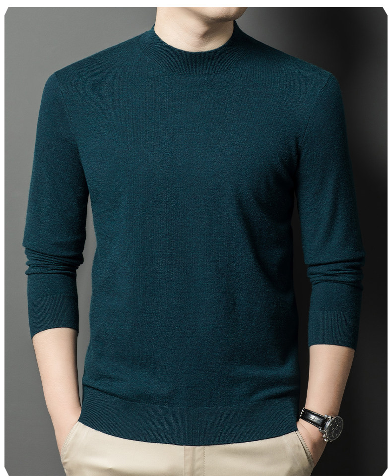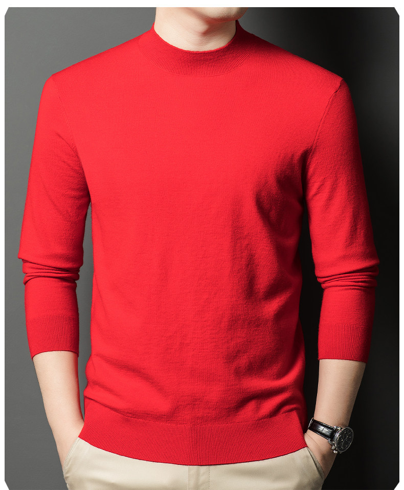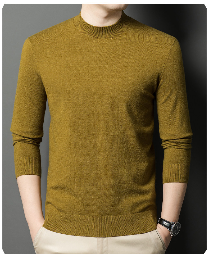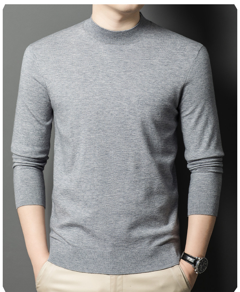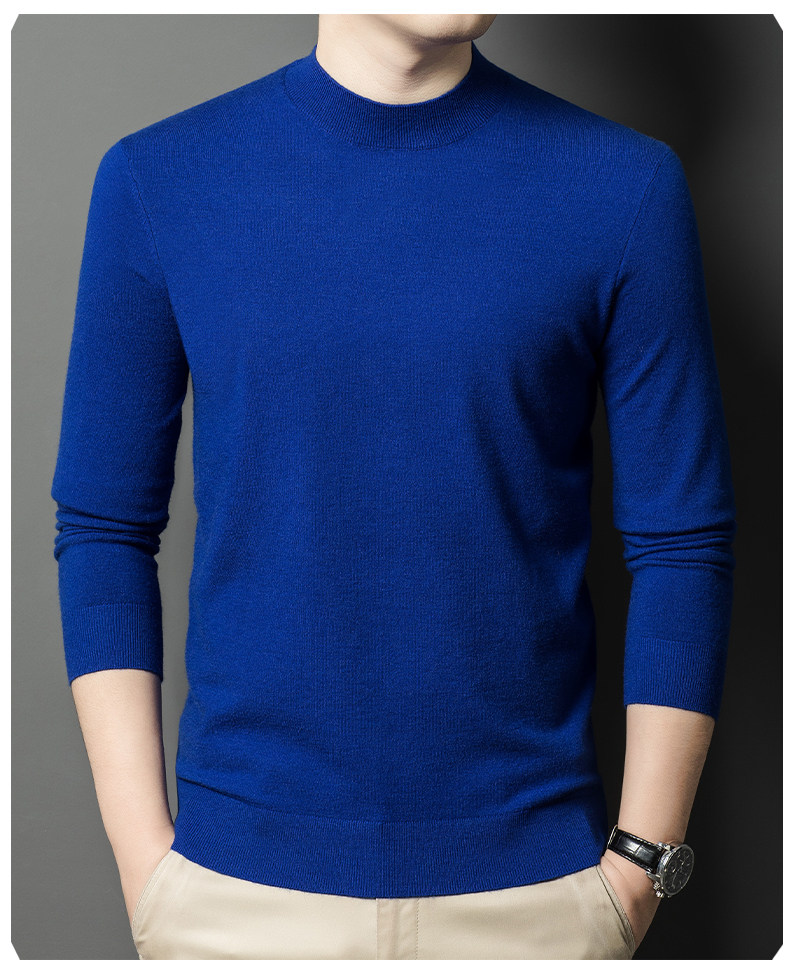 啄木鳥精紡羊毛衫男士冬季半高領純色高檔毛衣中年男裝針織打底衫