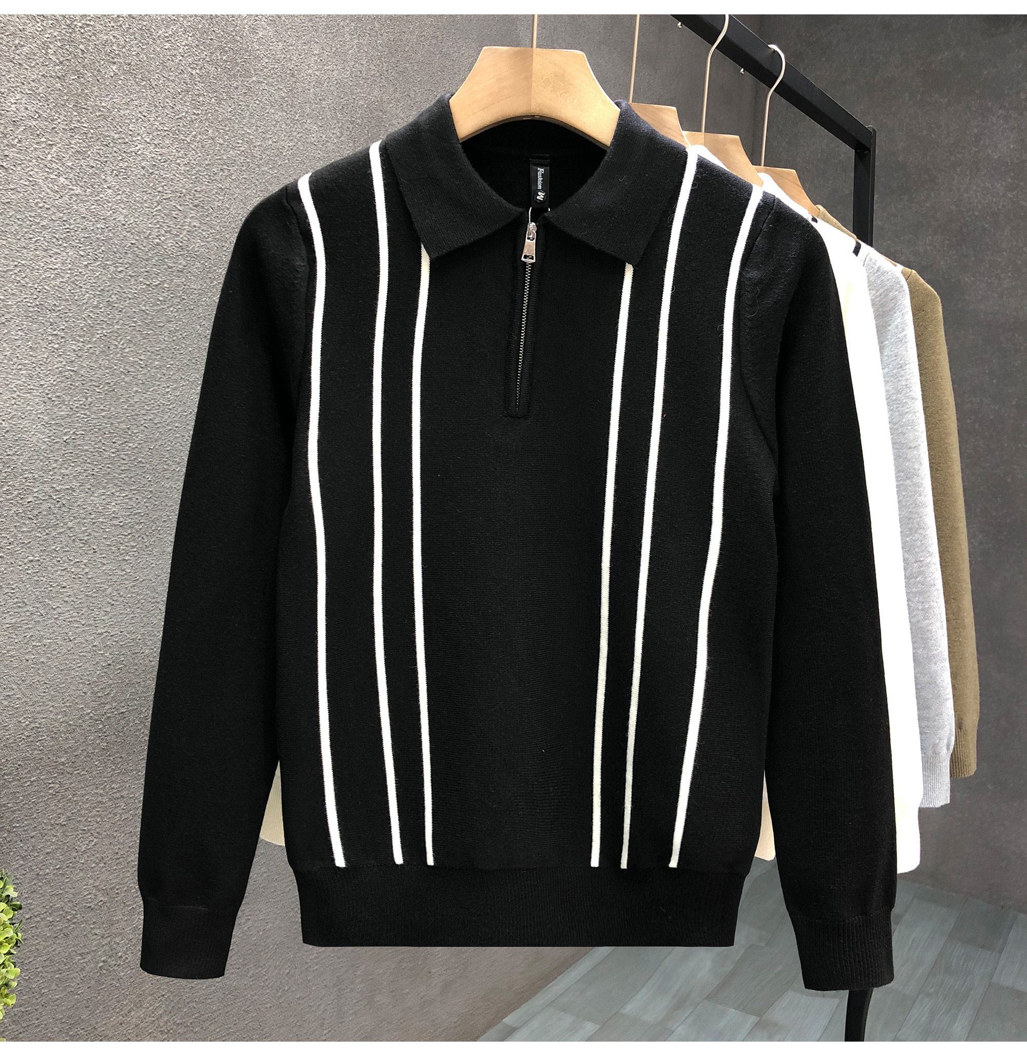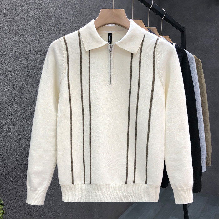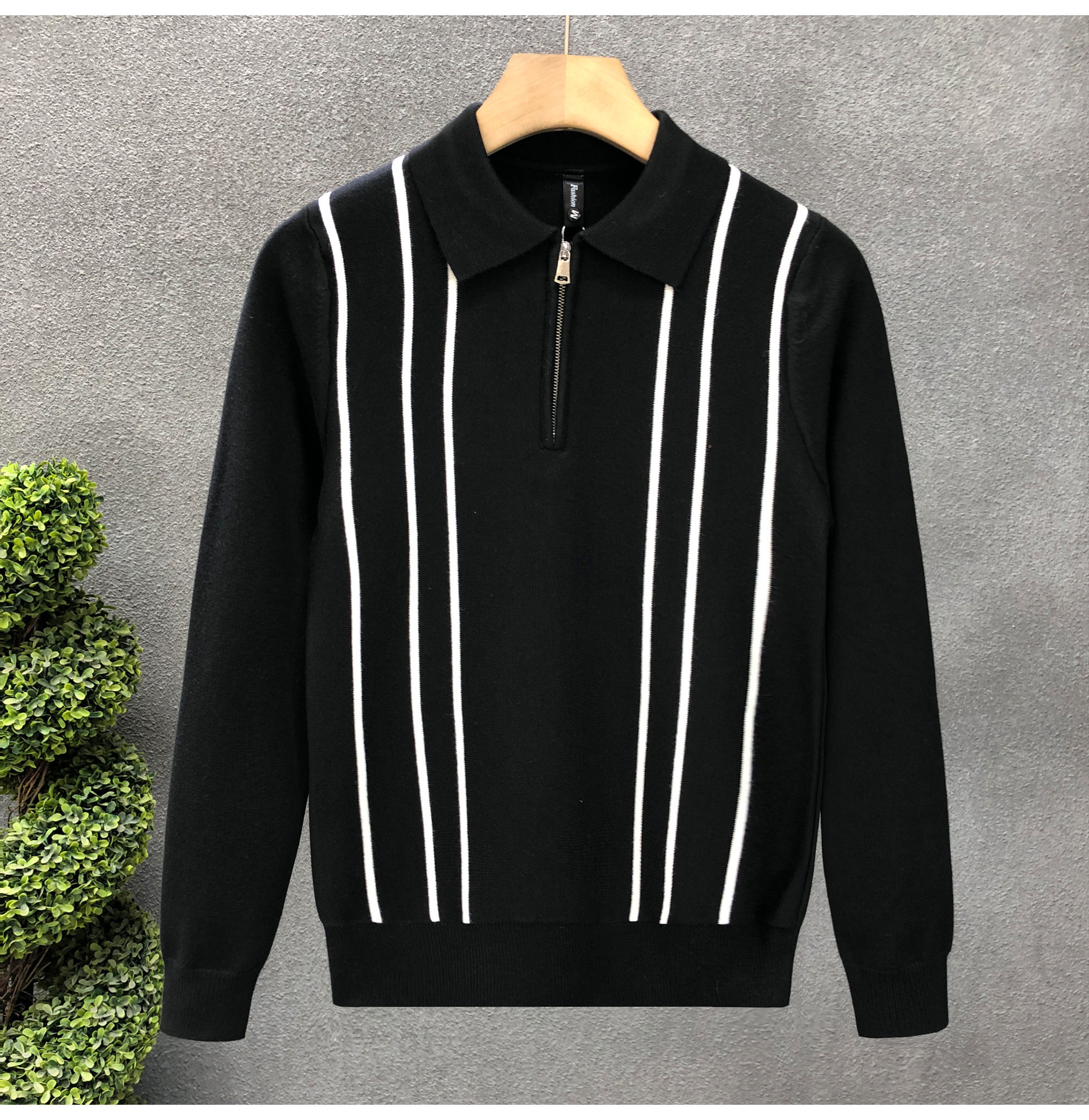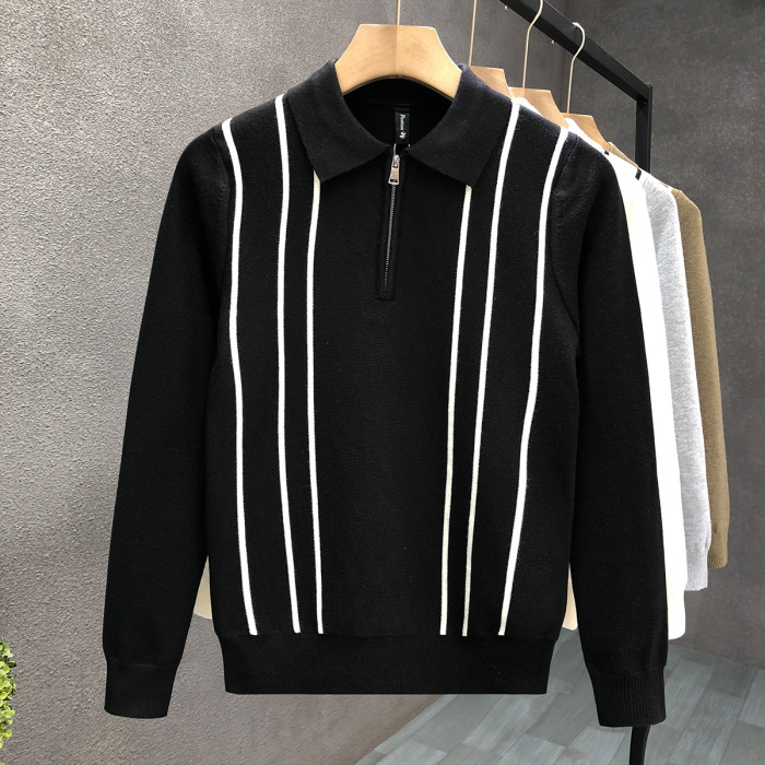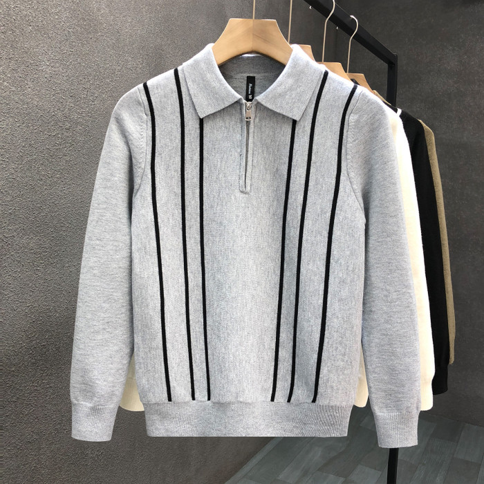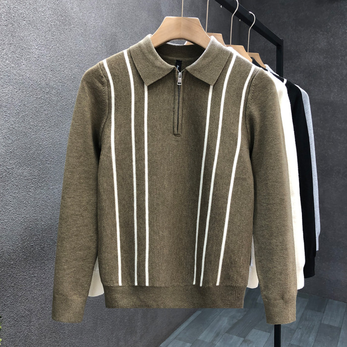 爆款半拉鍊翻領毛衣男潮牌修身針織衫2024冬季新款男士套頭打底衫
