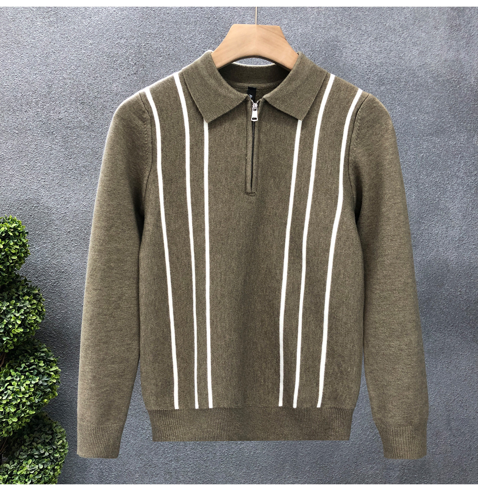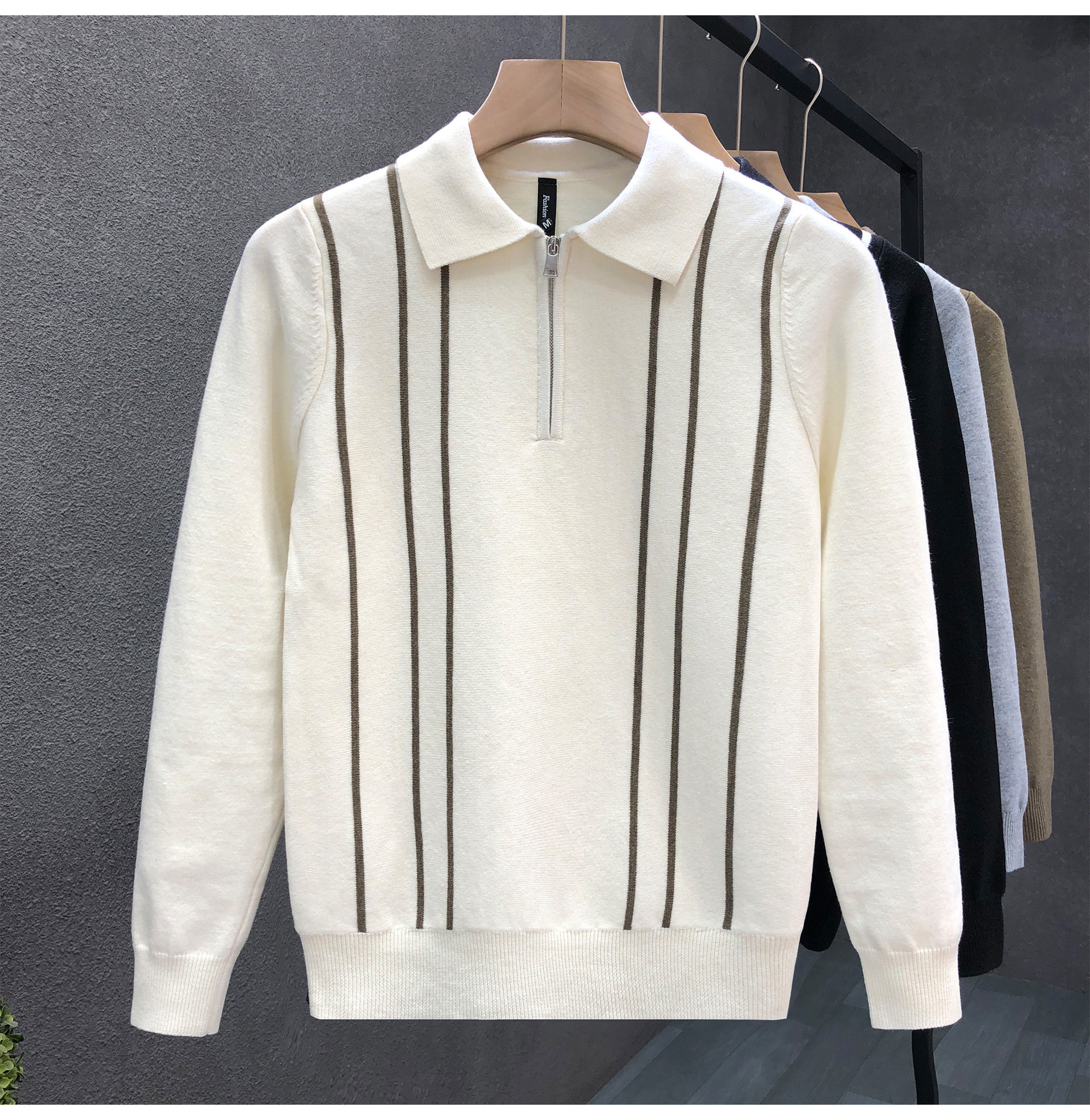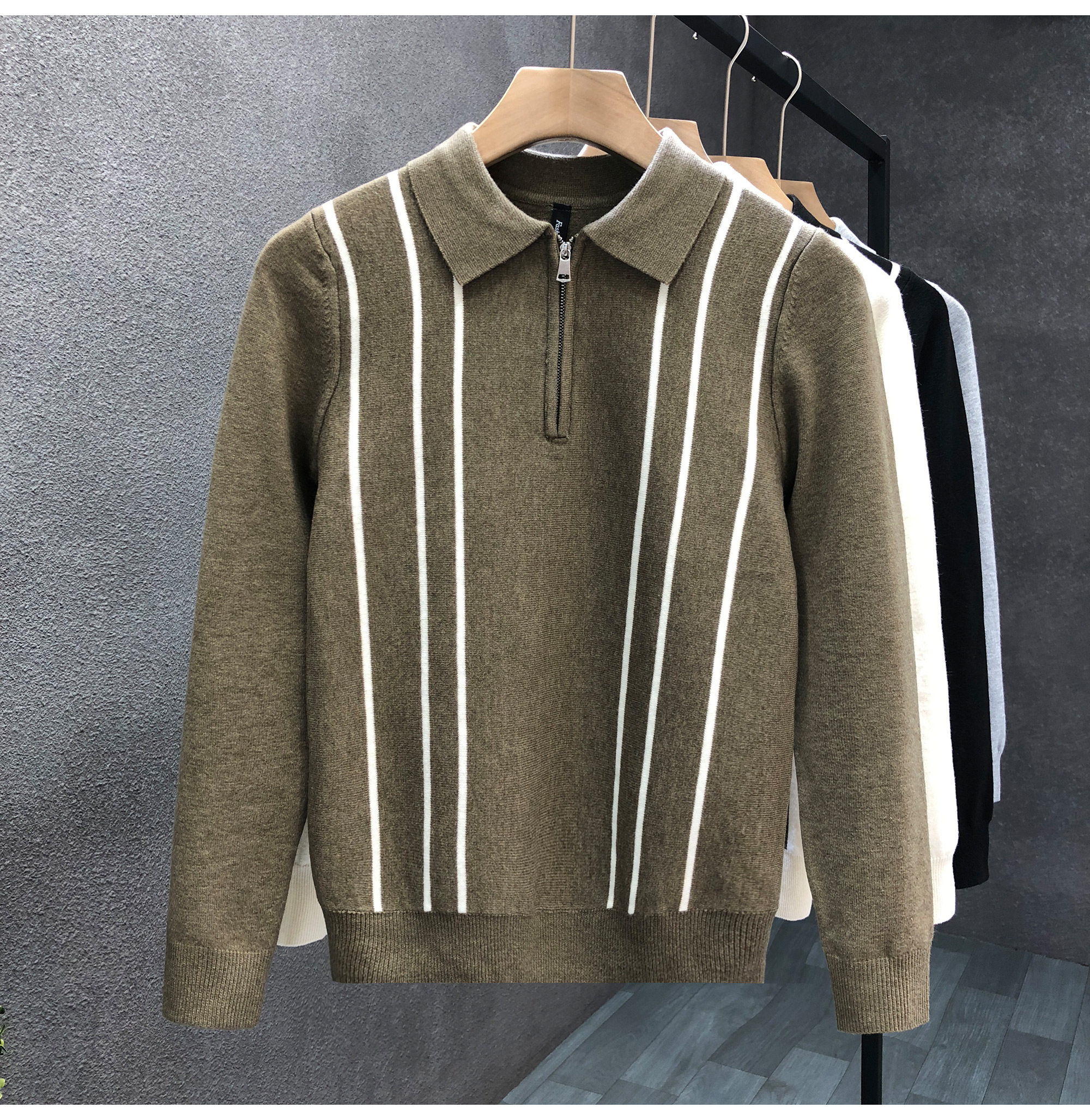 爆款半拉鍊翻領毛衣男潮牌修身針織衫2024冬季新款男士套頭打底衫