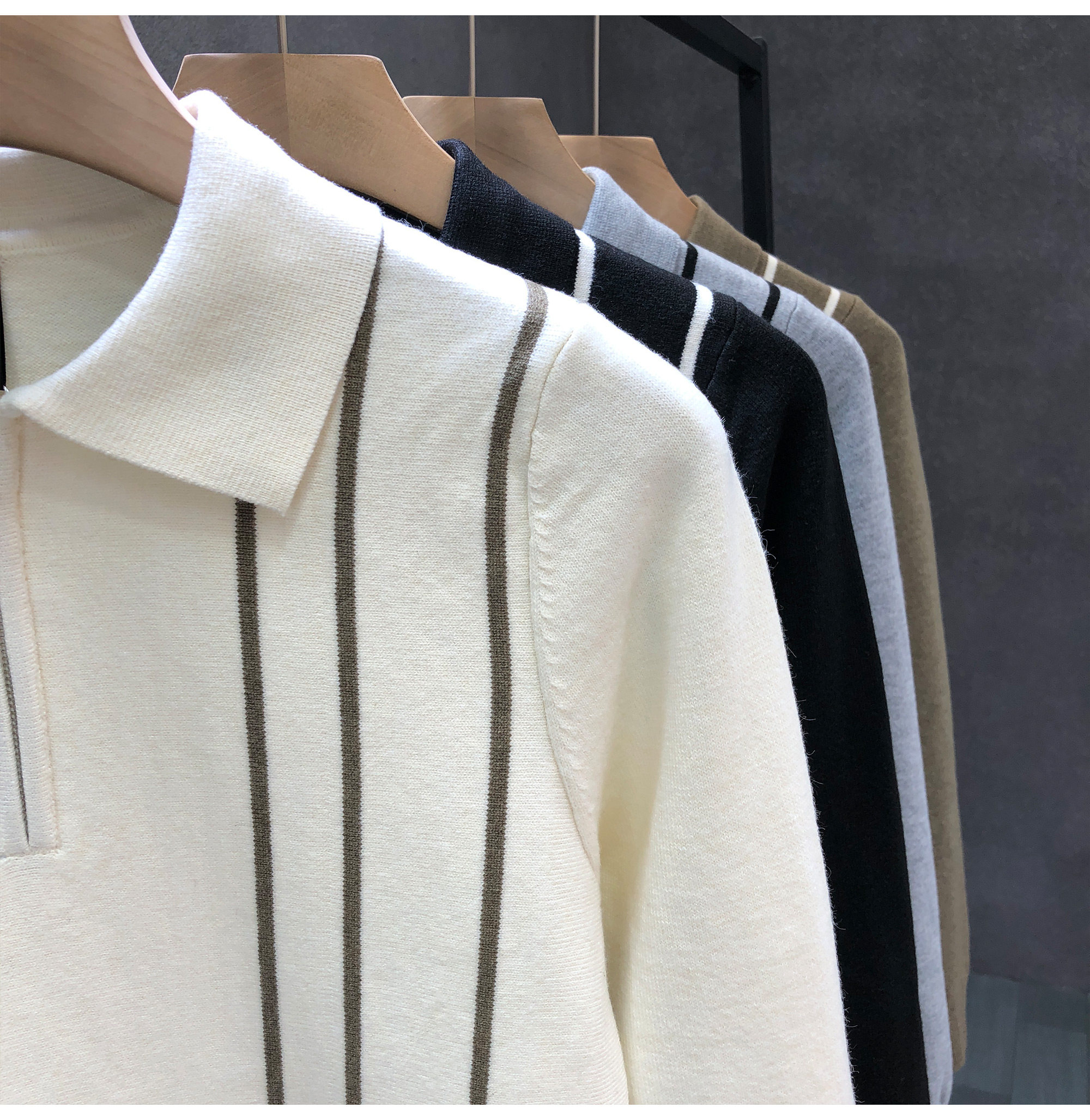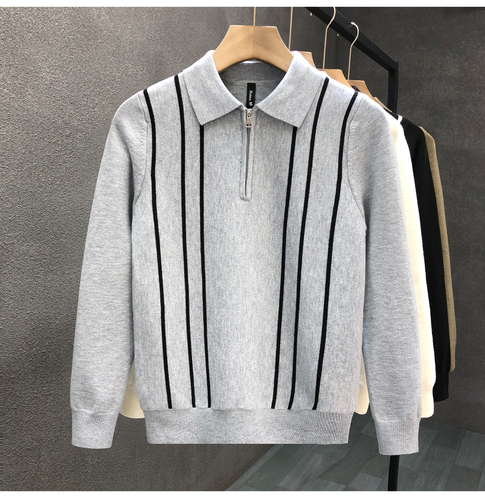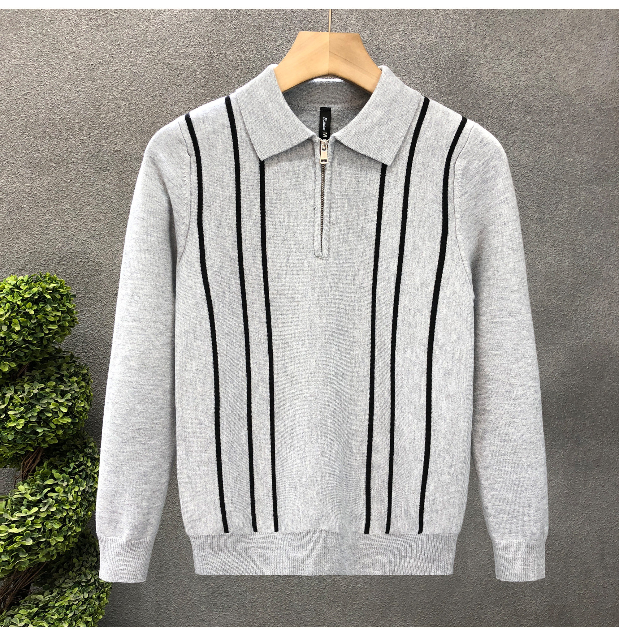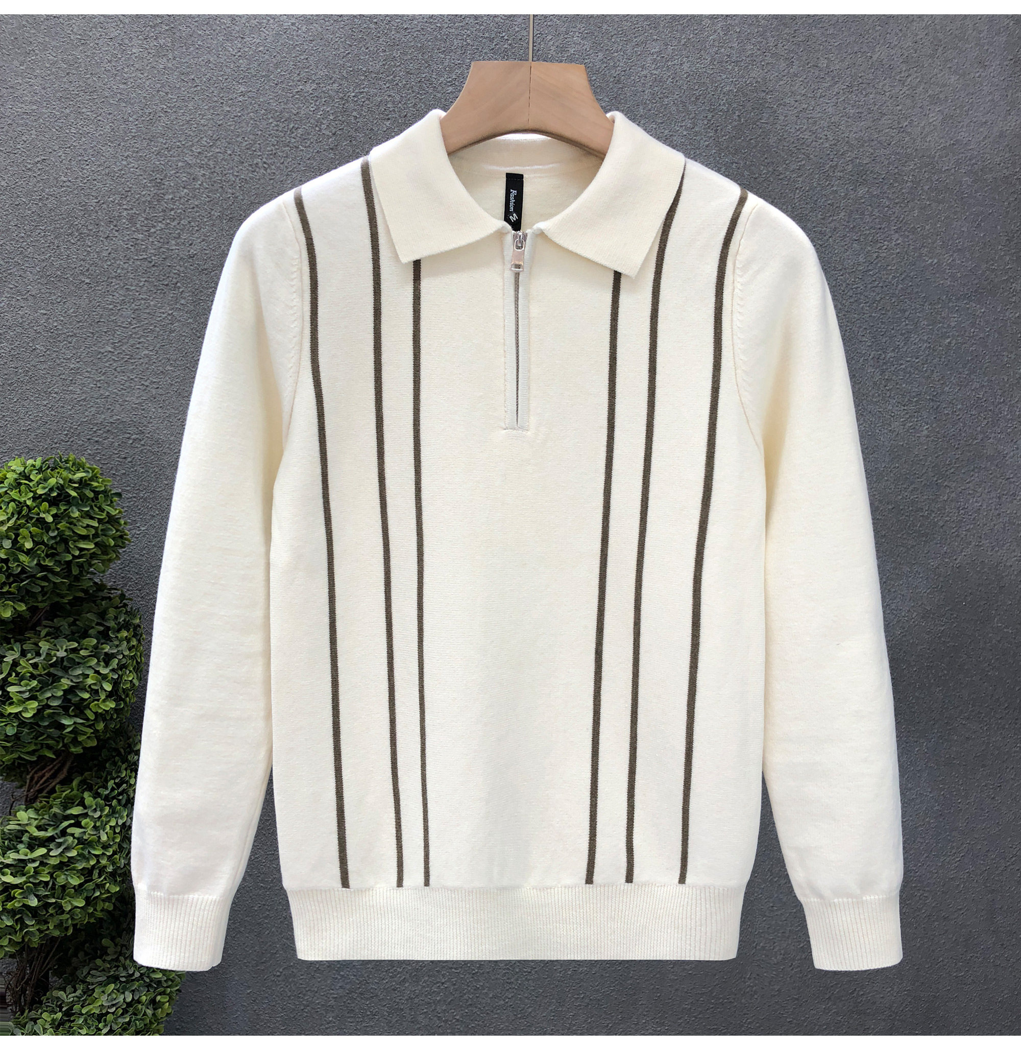 爆款半拉鍊翻領毛衣男潮牌修身針織衫2024冬季新款男士套頭打底衫