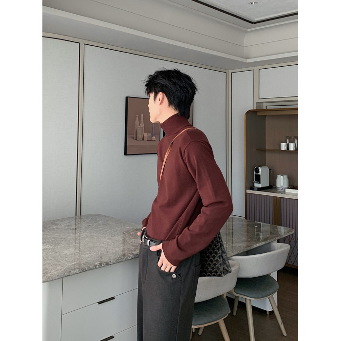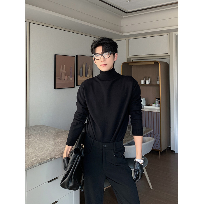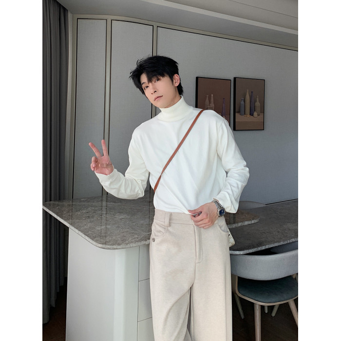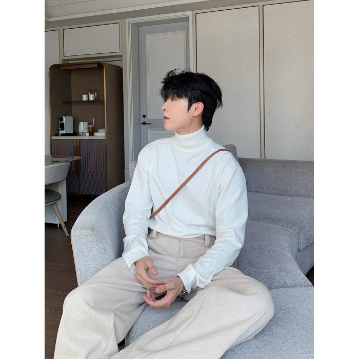 Hualun男式高領毛衣冬季內搭上衣男純色打底衫韓系情侶百搭針織衫