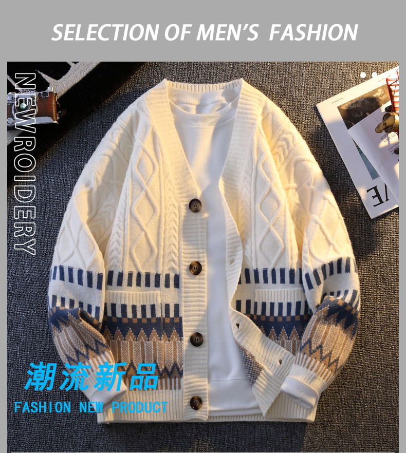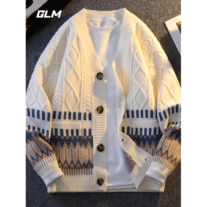 GLM春季新款青少年學生開衫抗寒保暖加厚寬鬆情侶紐釦毛衣 男外套