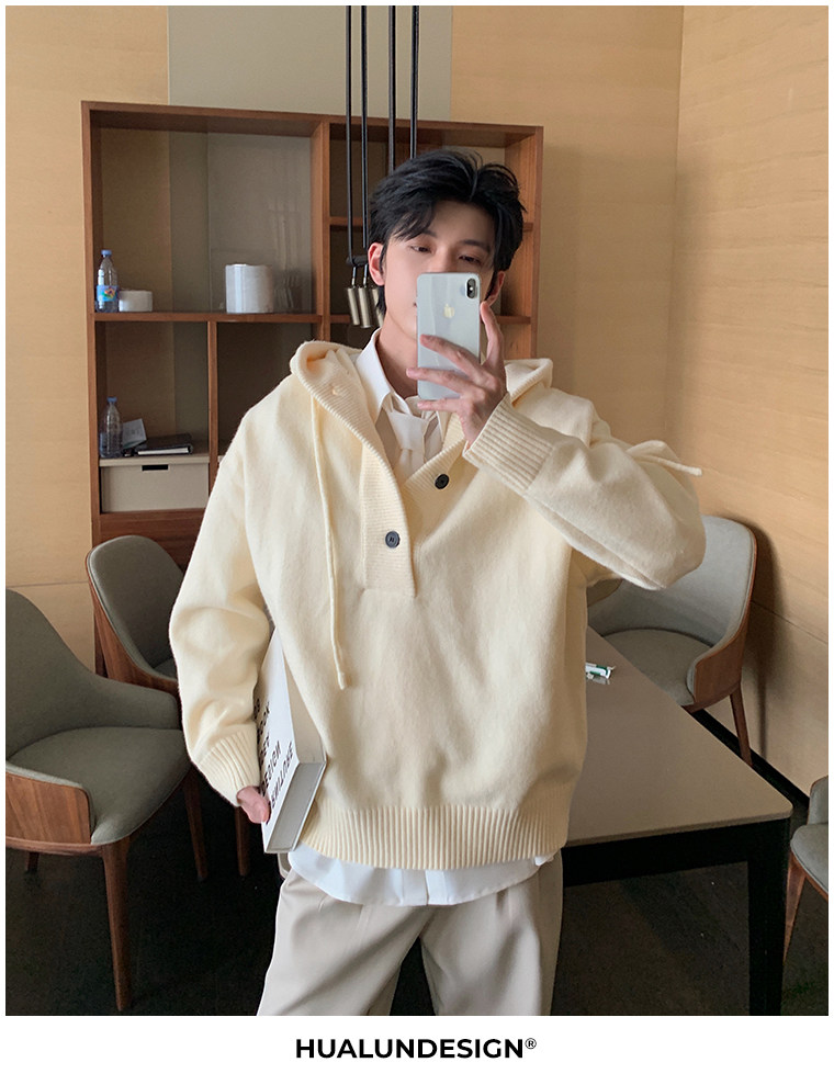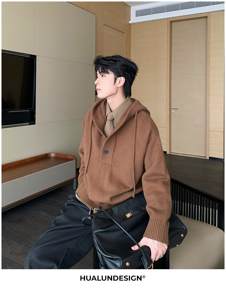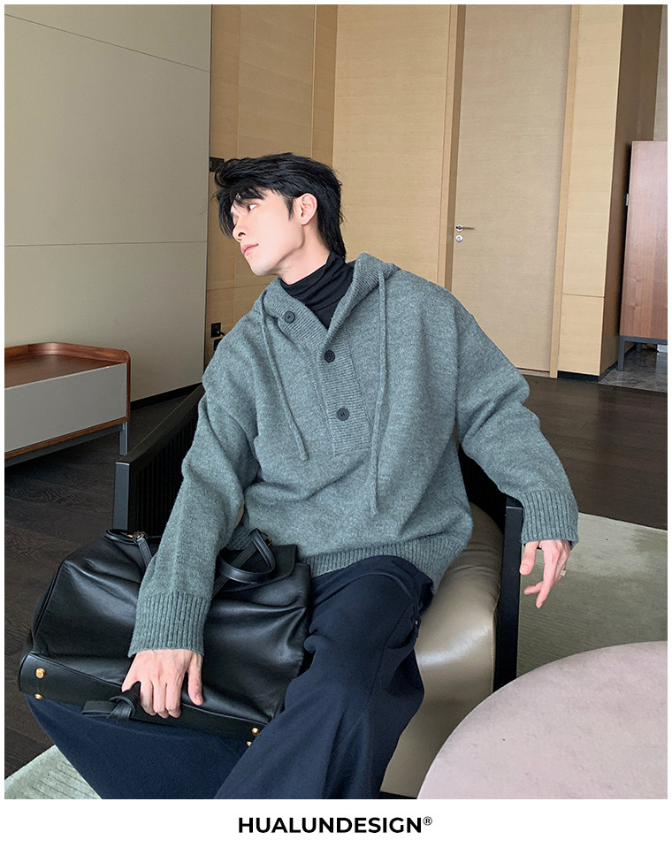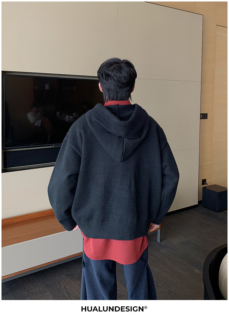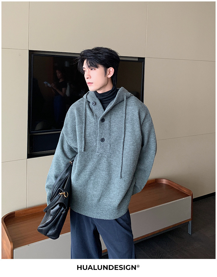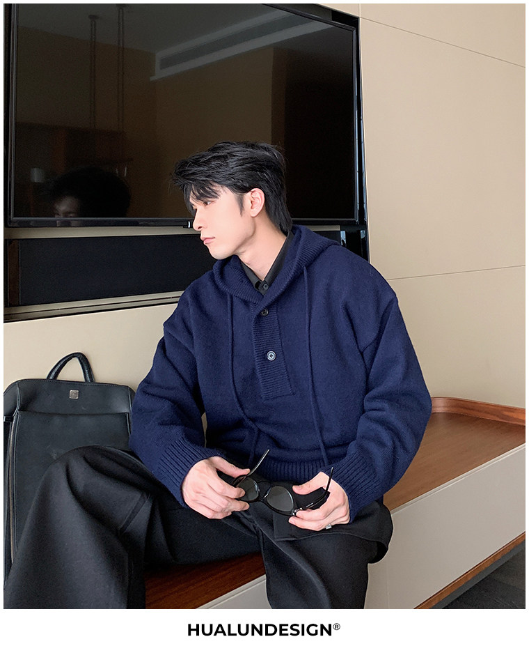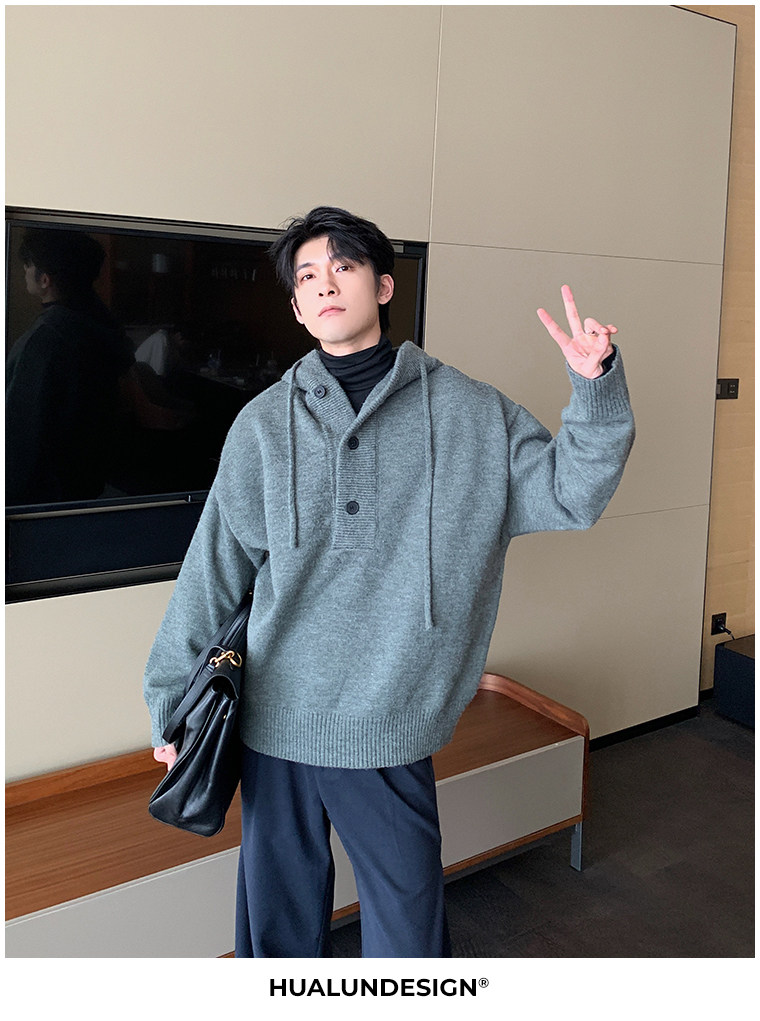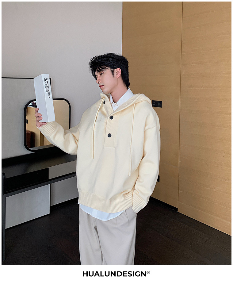 Hualun秋冬季超好看連帽毛衣男士半開衫針織衫男潮牌情侶套頭上衣