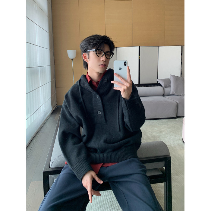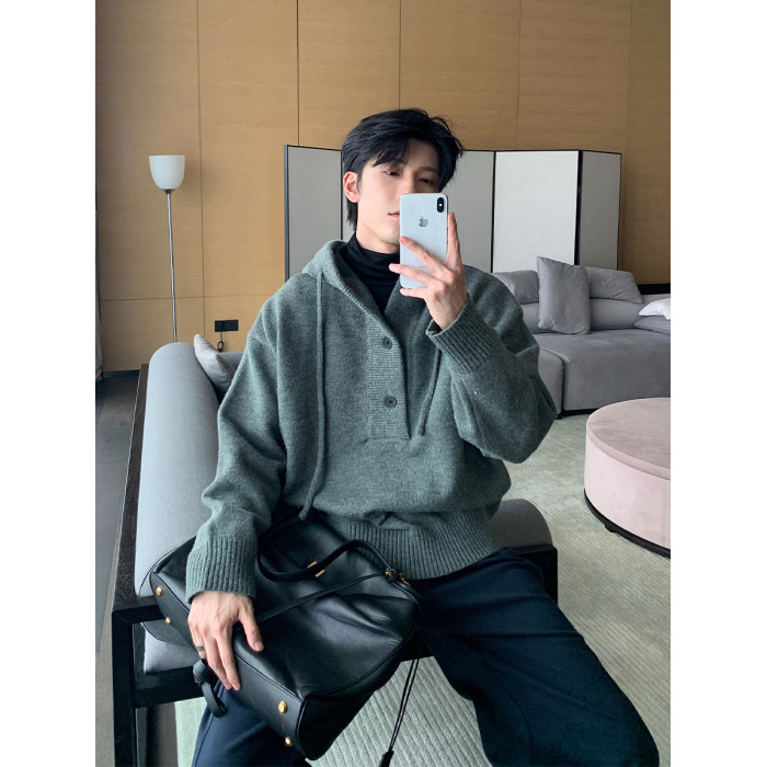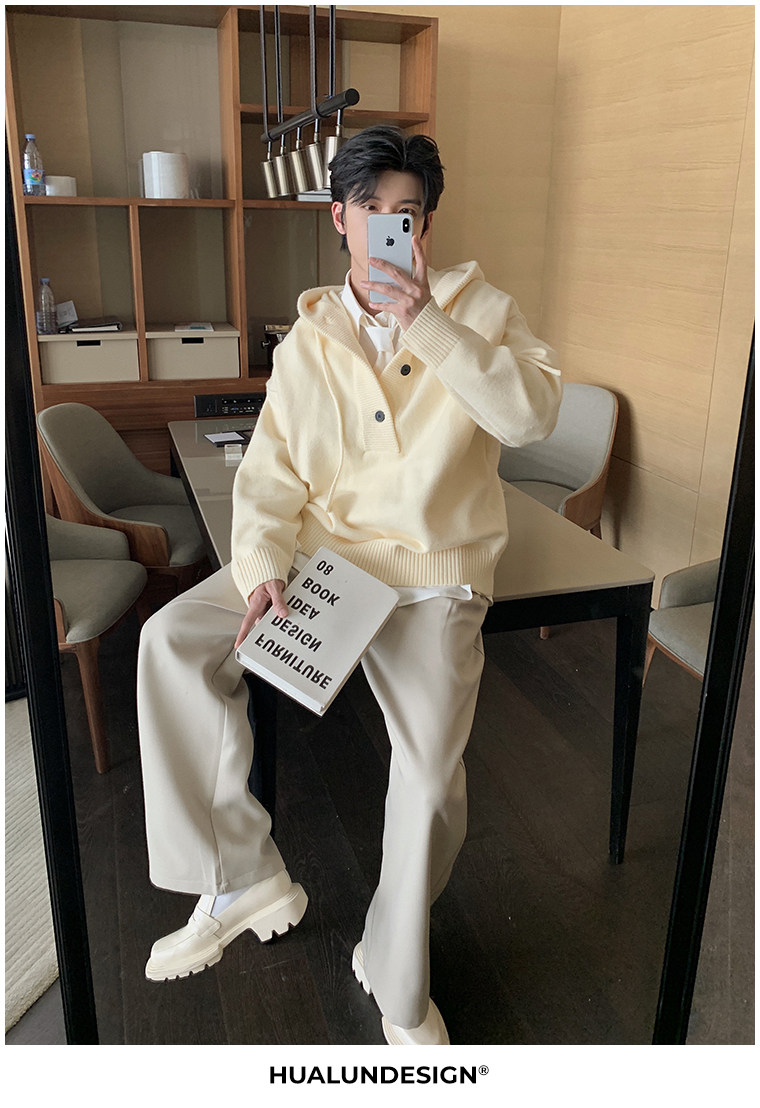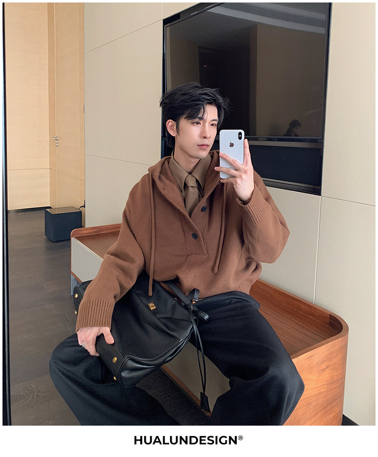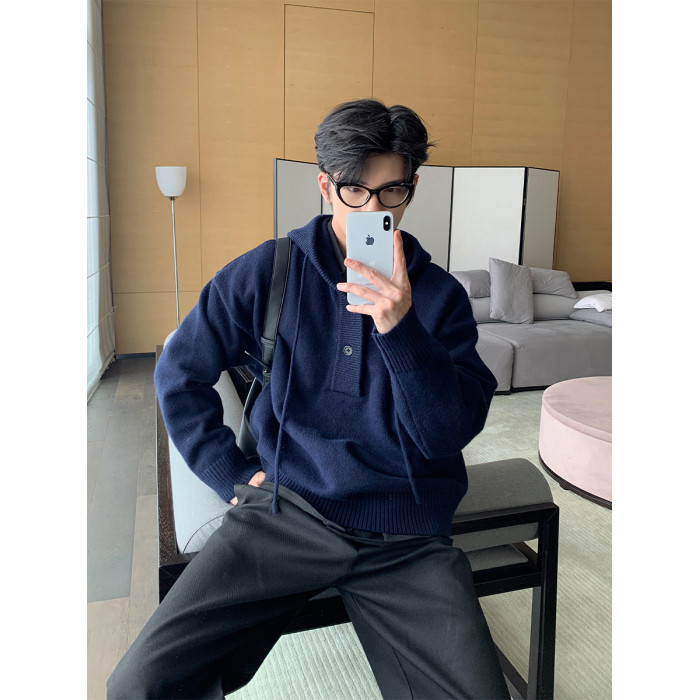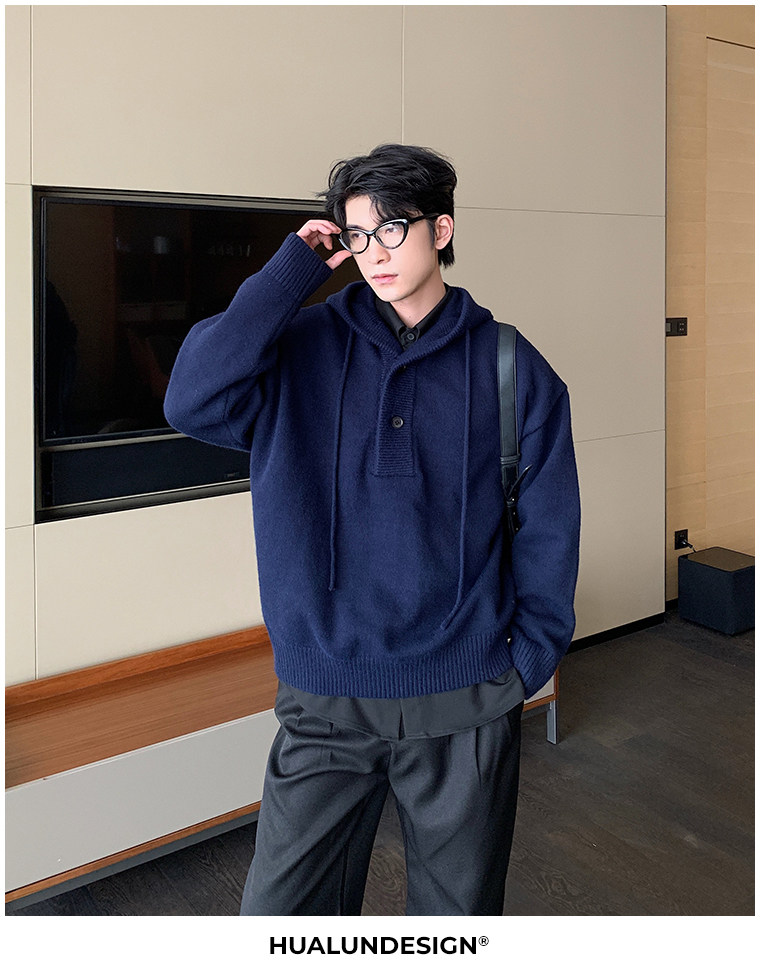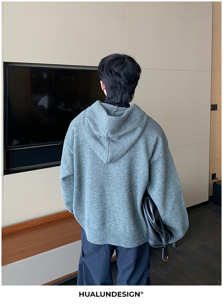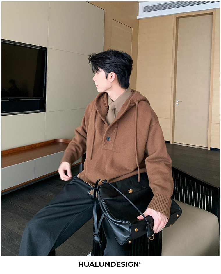 Hualun秋冬季超好看連帽毛衣男士半開衫針織衫男潮牌情侶套頭上衣