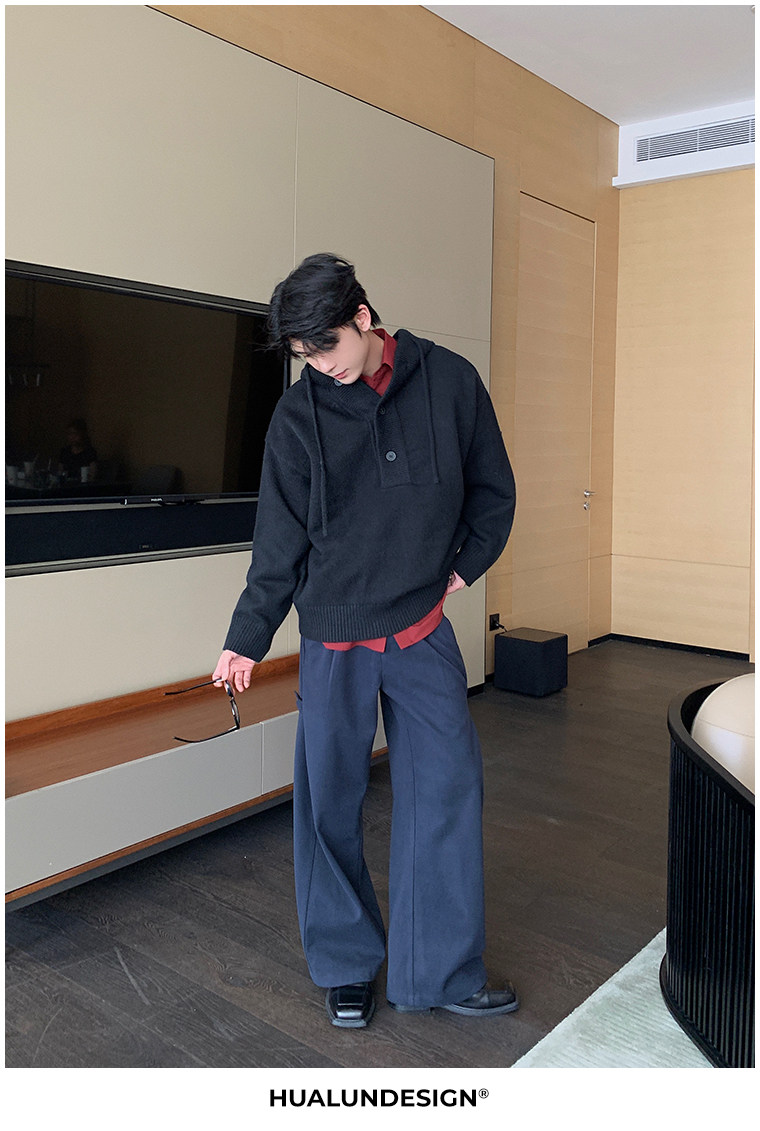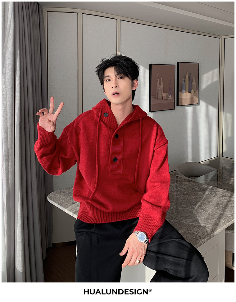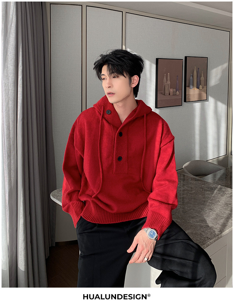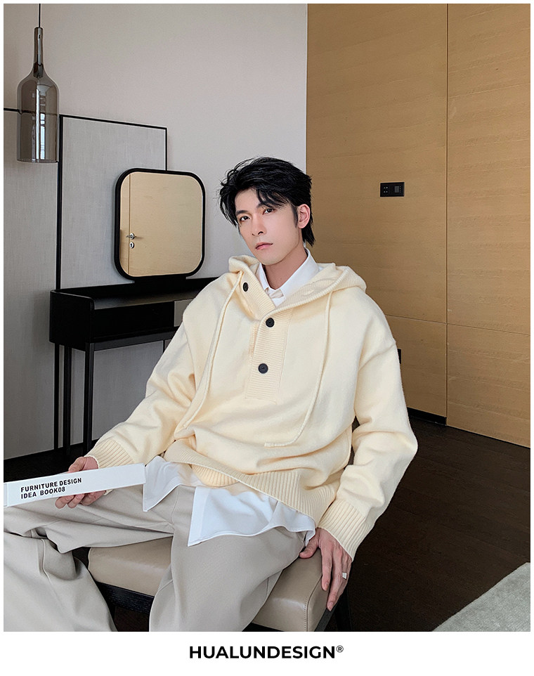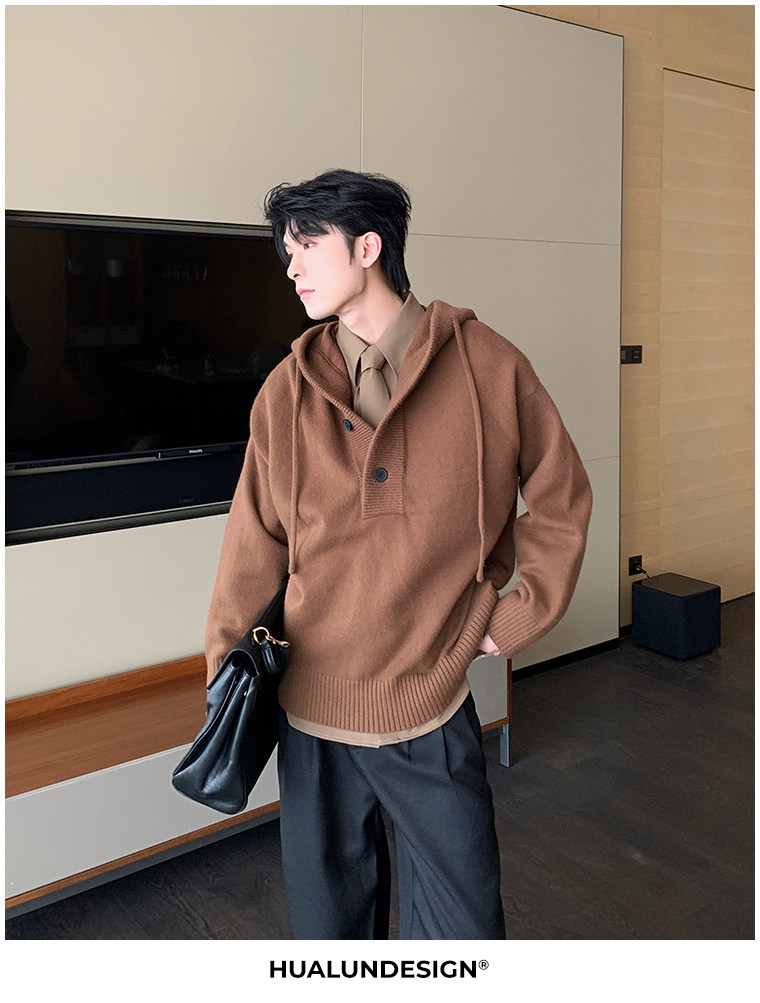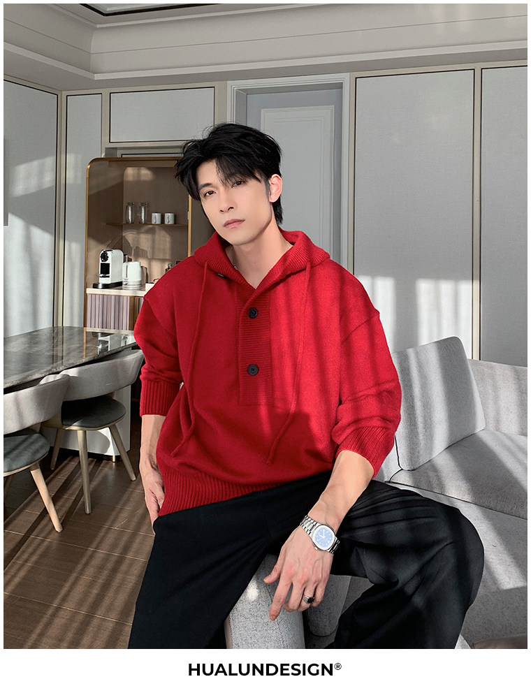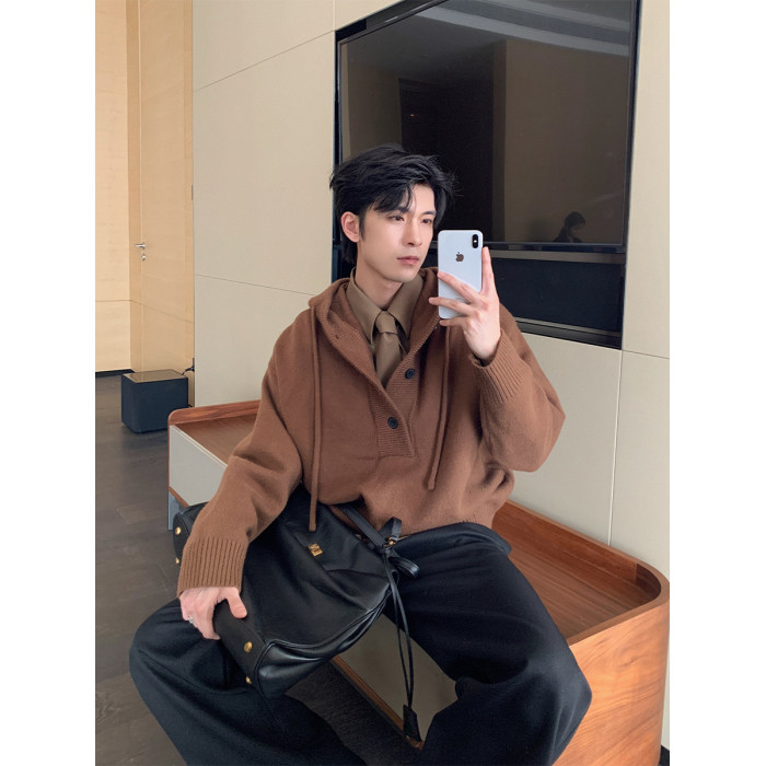 Hualun秋冬季超好看連帽毛衣男士半開衫針織衫男潮牌情侶套頭上衣