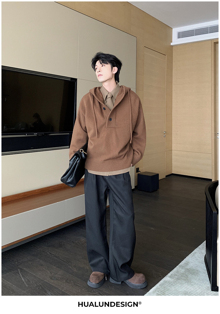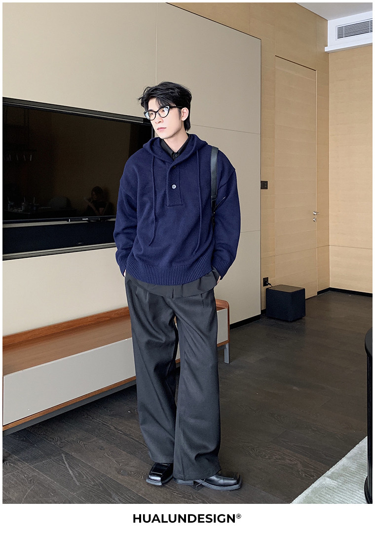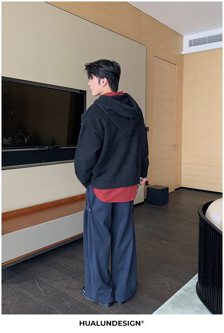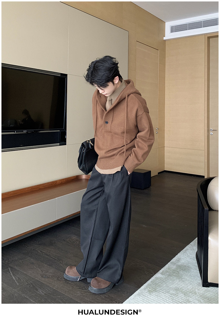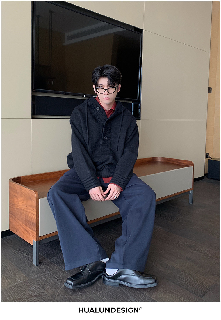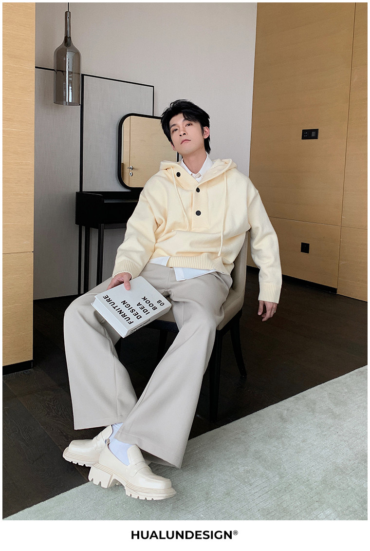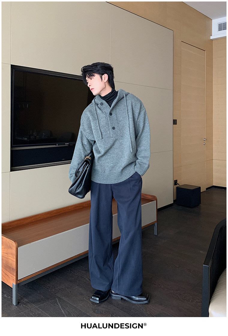 Hualun秋冬季超好看連帽毛衣男士半開衫針織衫男潮牌情侶套頭上衣