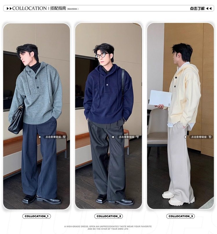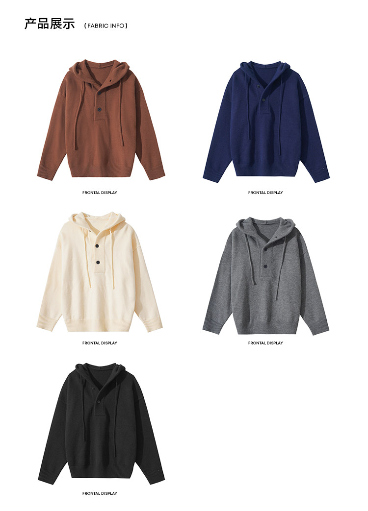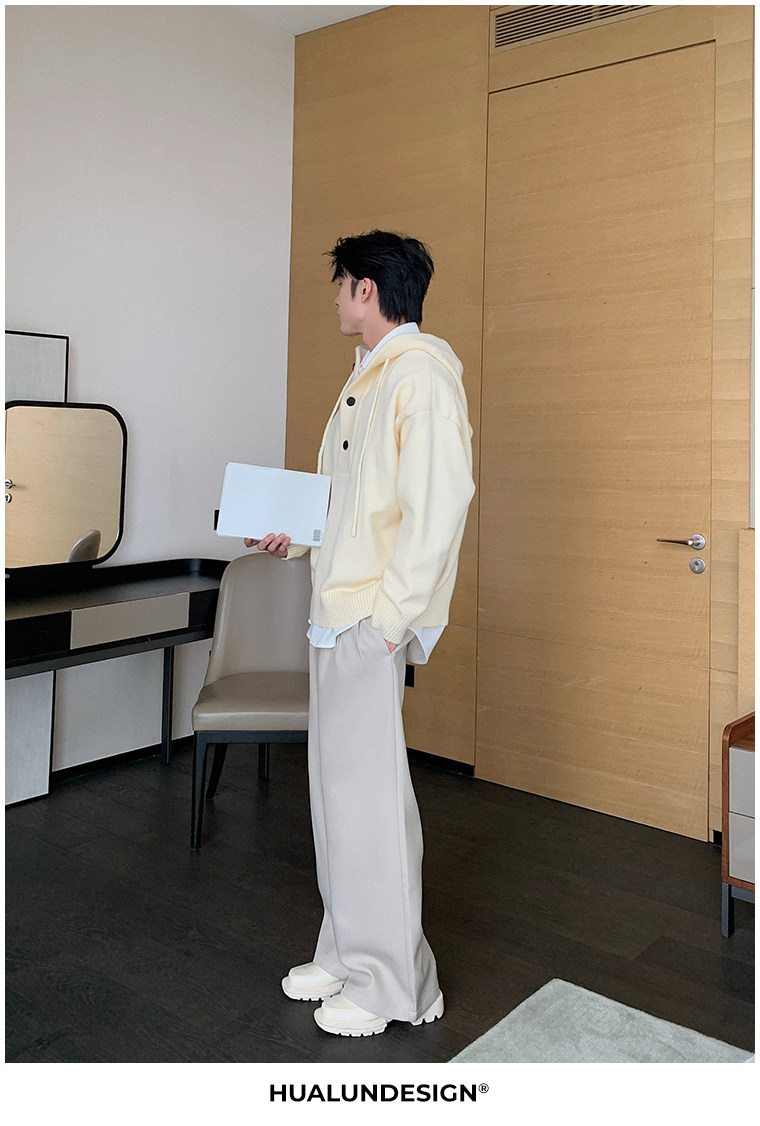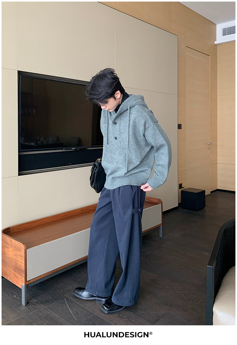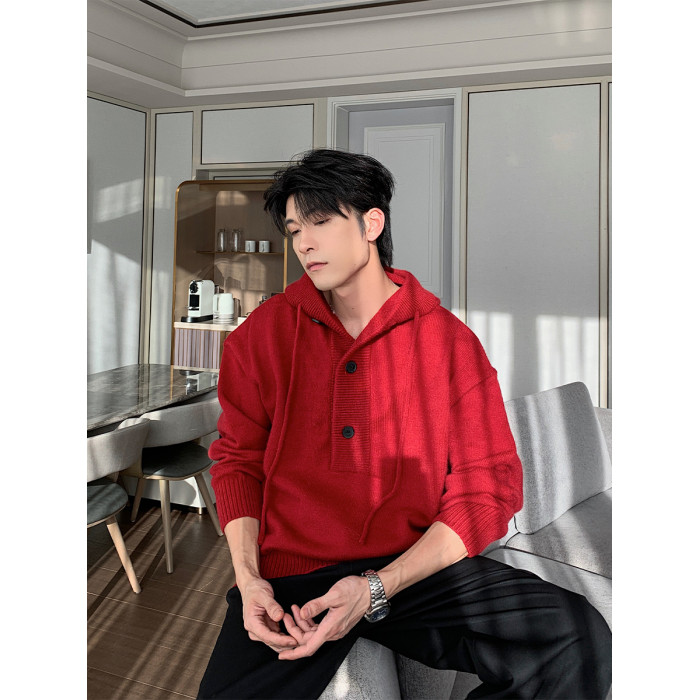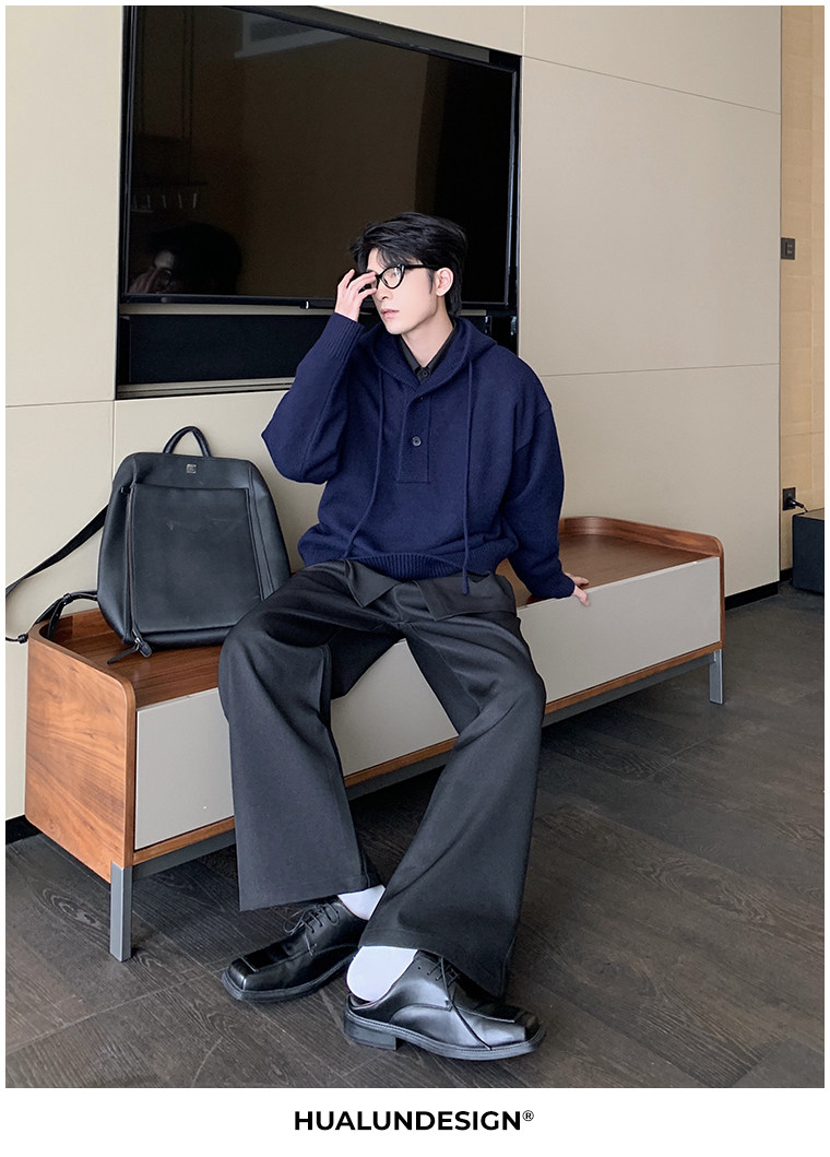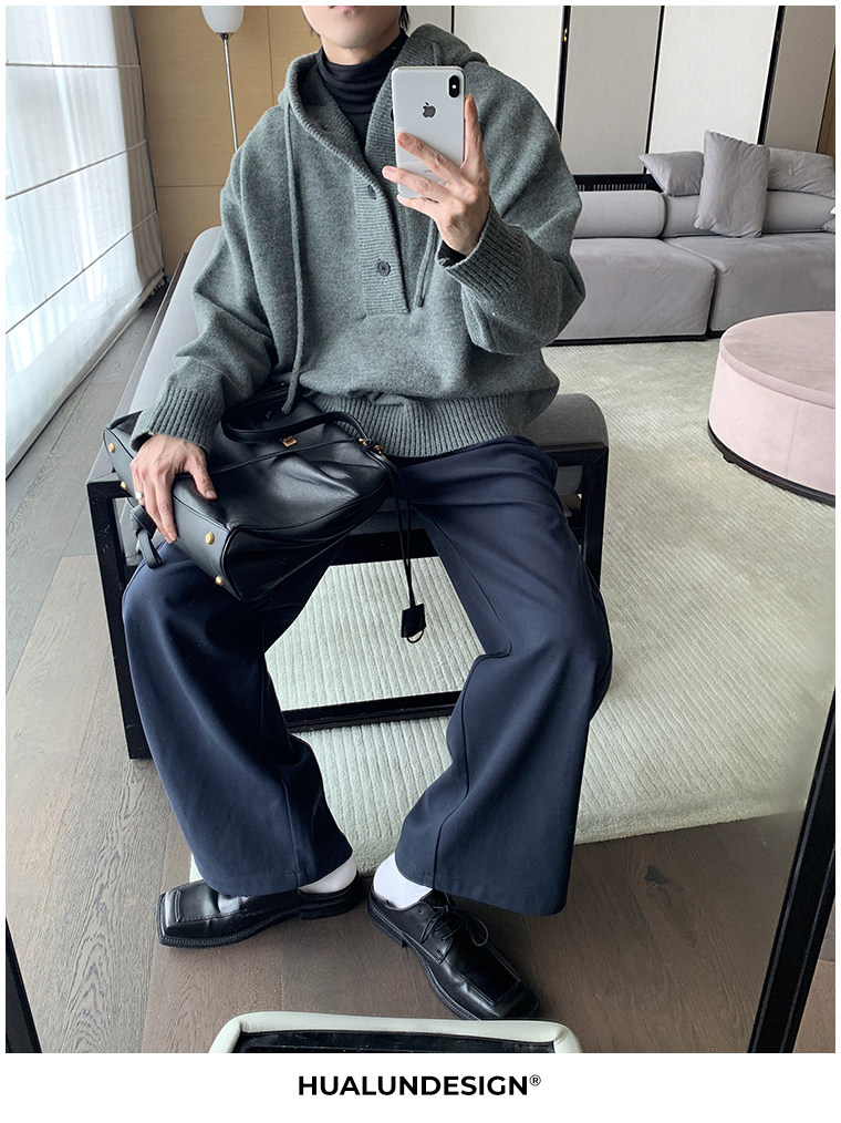 Hualun秋冬季超好看連帽毛衣男士半開衫針織衫男潮牌情侶套頭上衣