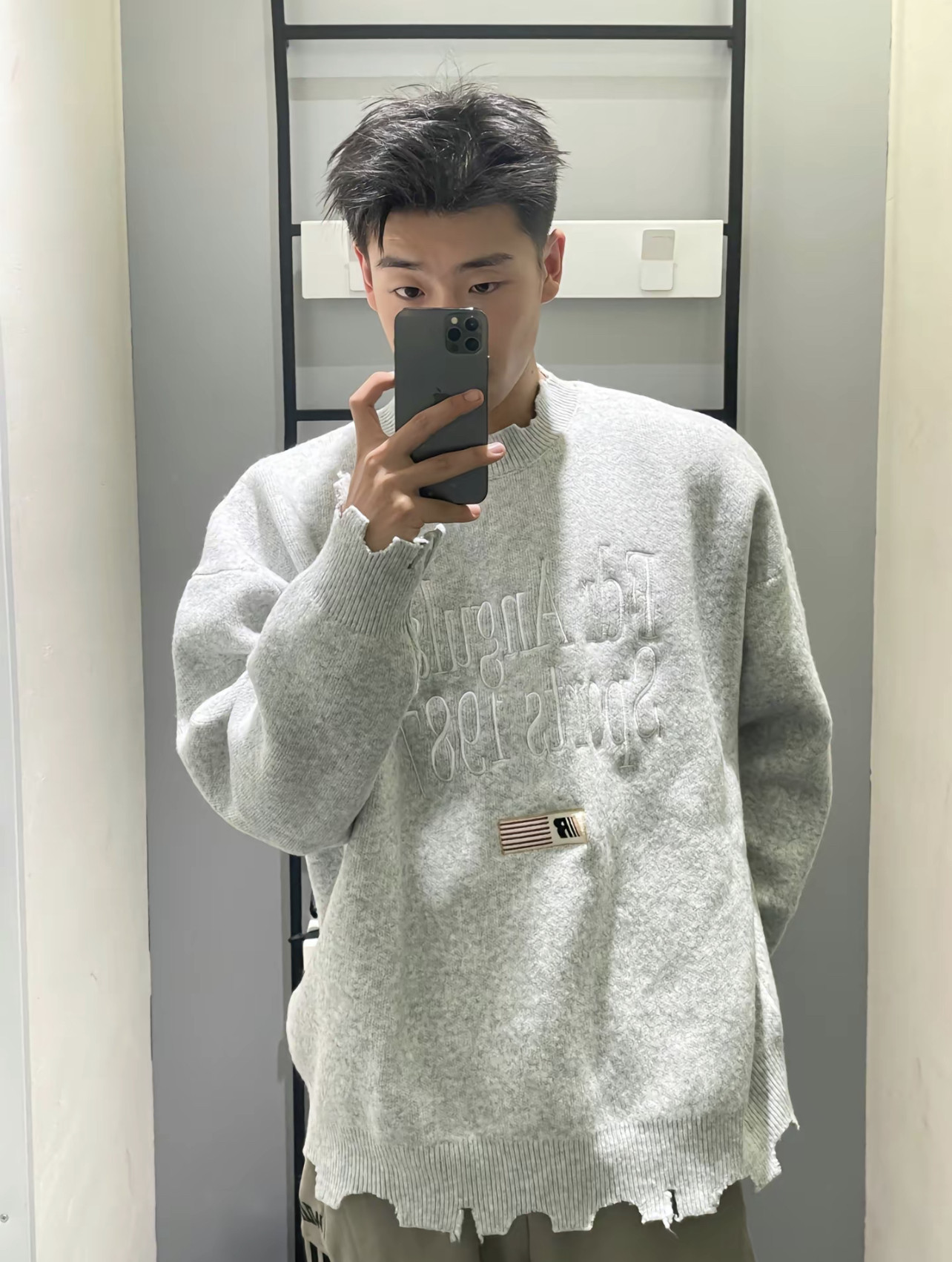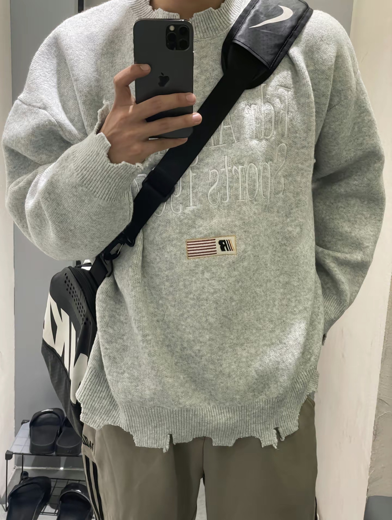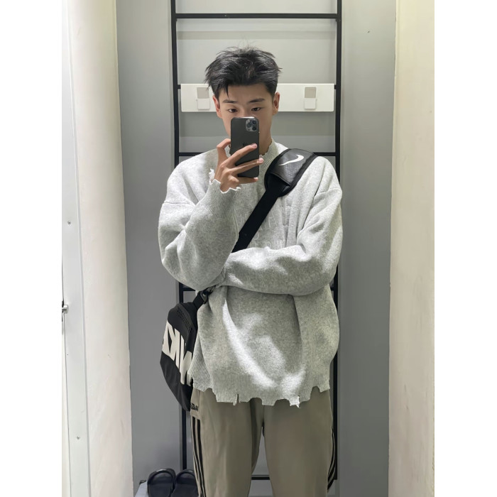 美式復古刺綉破壞設計毛衣男女秋冬潮牌小衆慵嬾風寬鬆軟糯針織衫