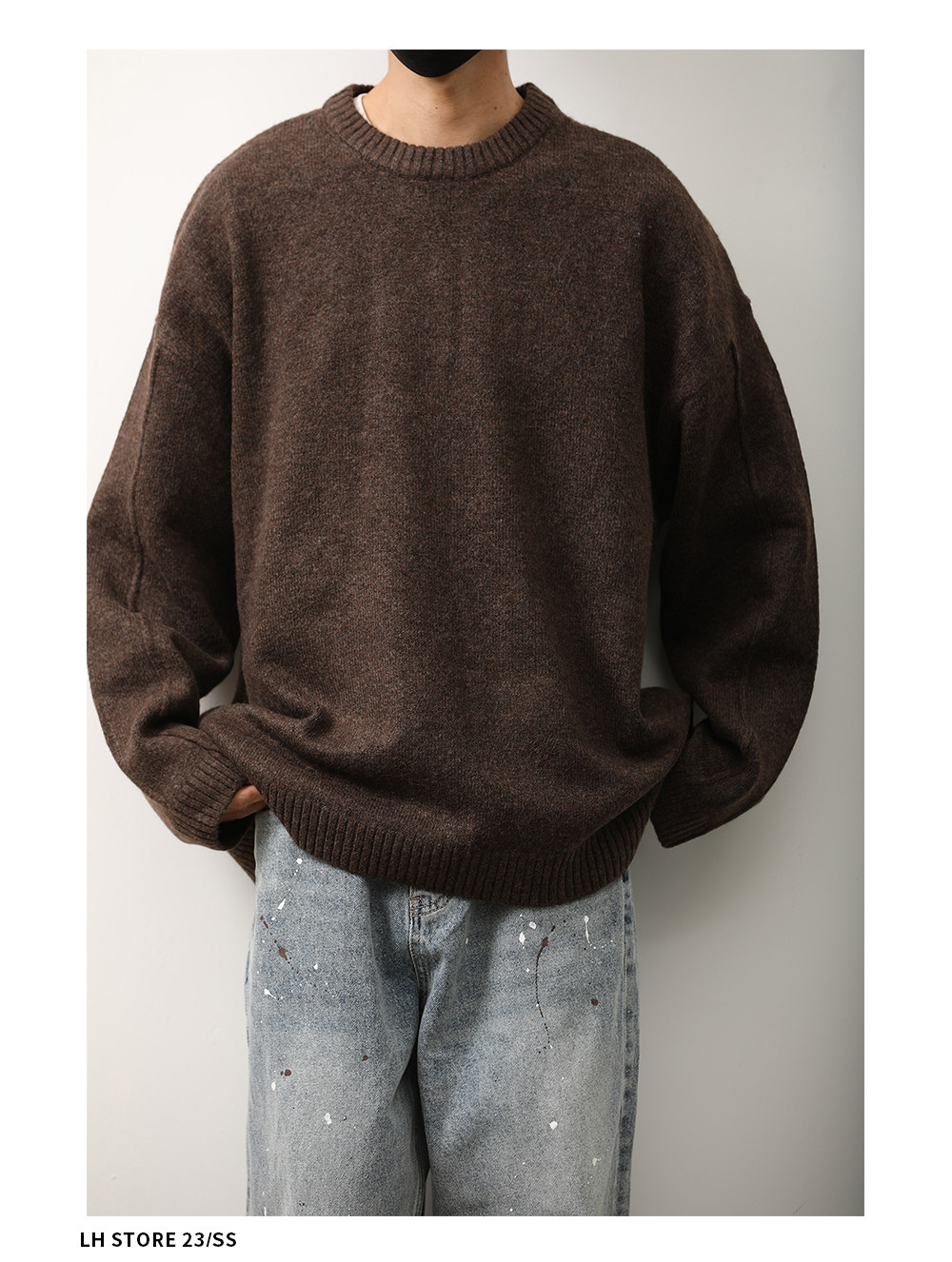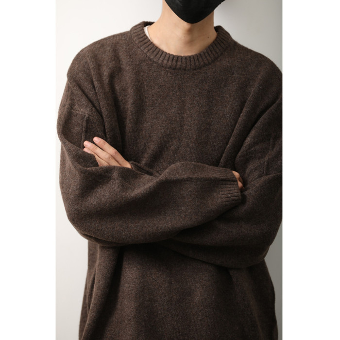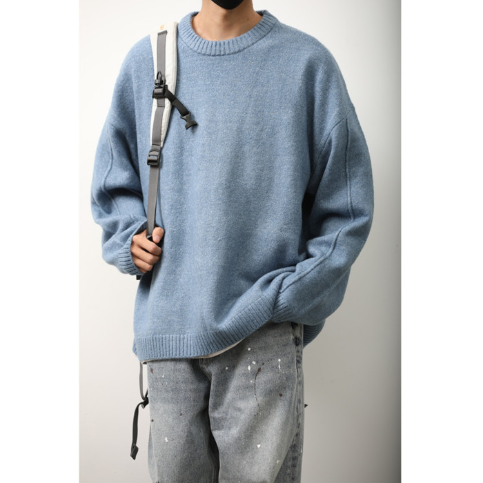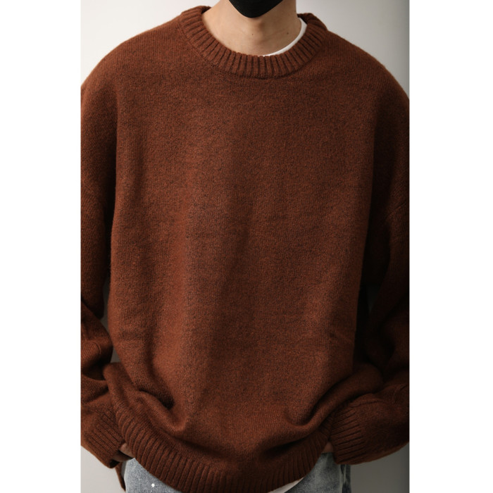 秋冬季日系復古純色圓領毛衣男女內搭休閒保暖基礎針織打底衫上衣