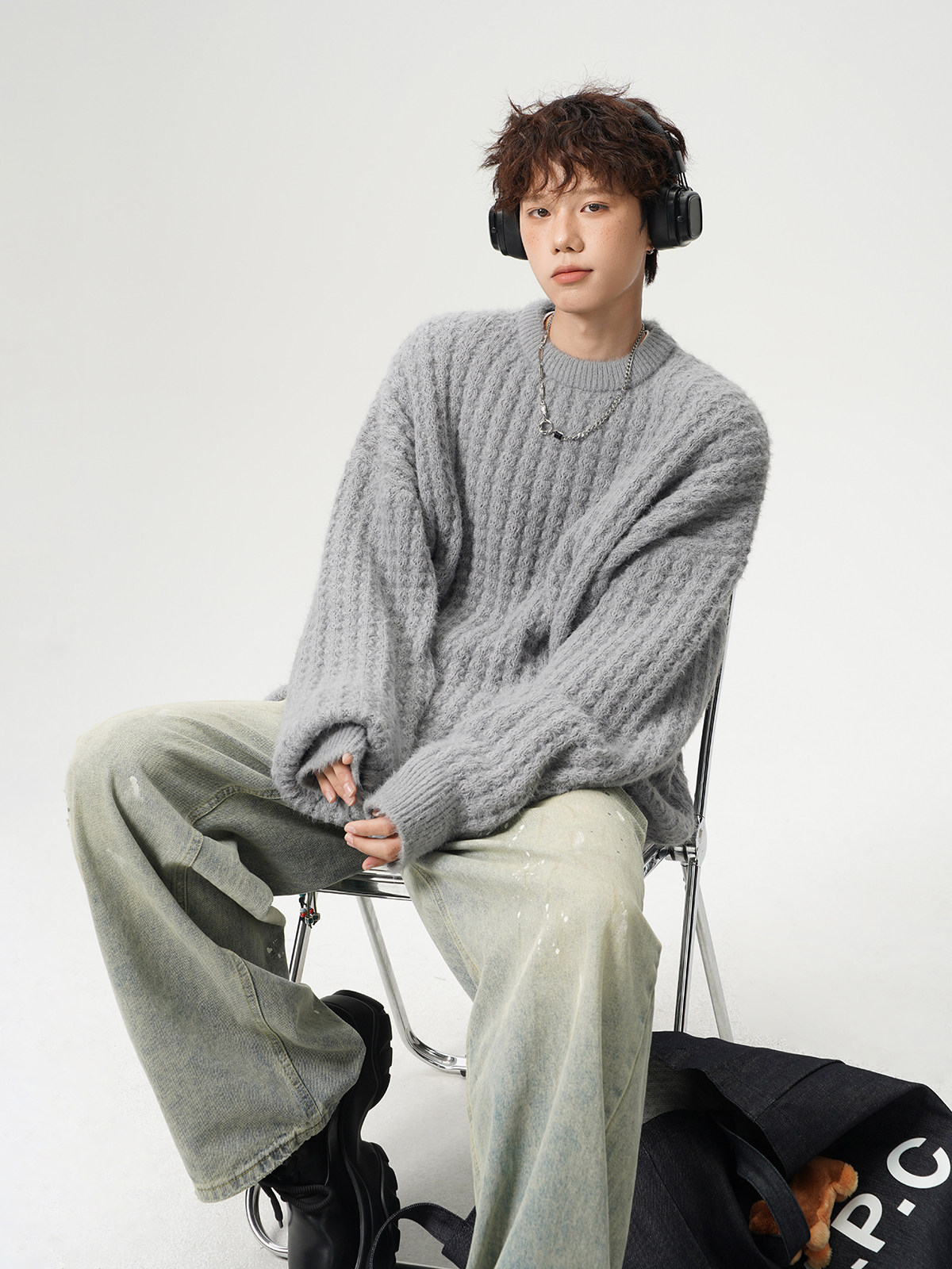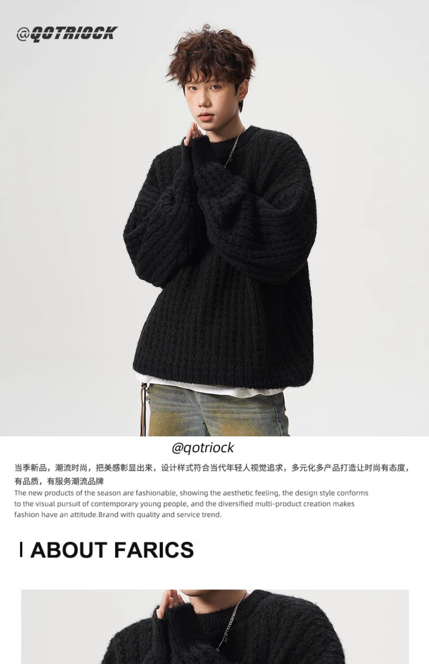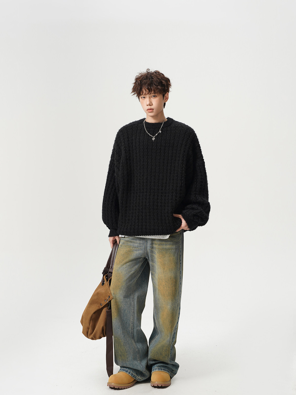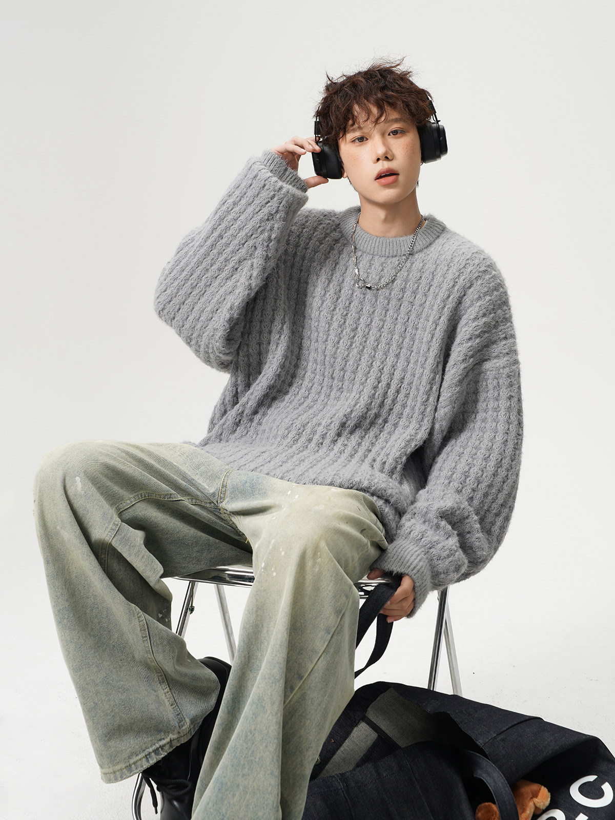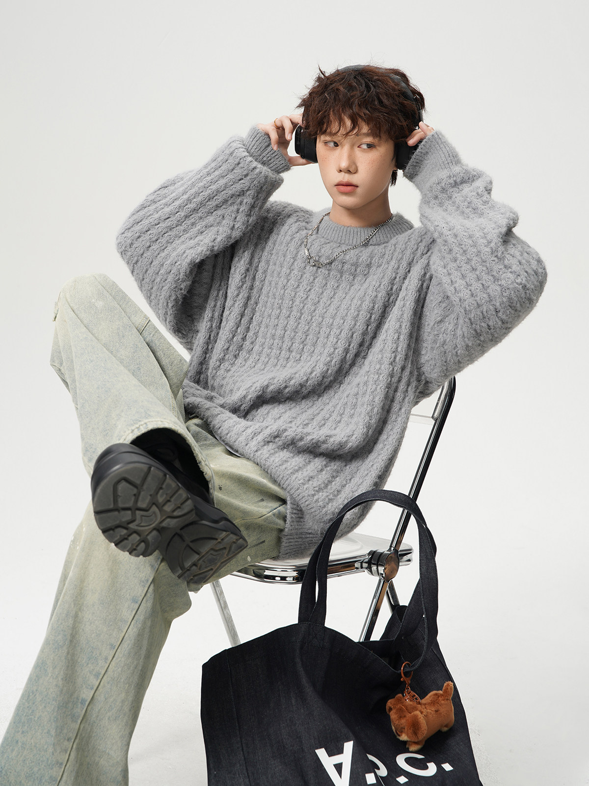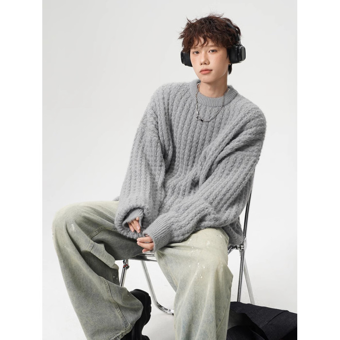 美式復古麻花圓領毛衣男秋季潮少年感針織衫外套寬鬆慵嬾風打底衫