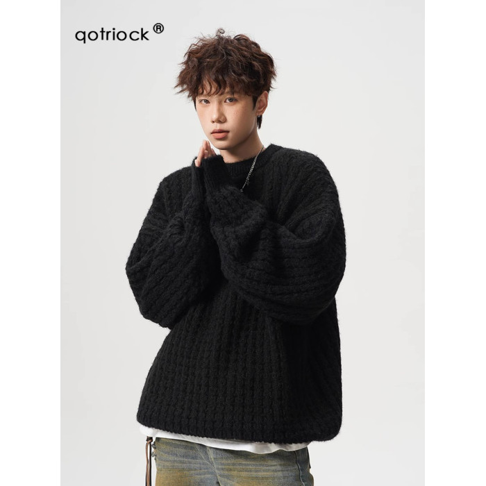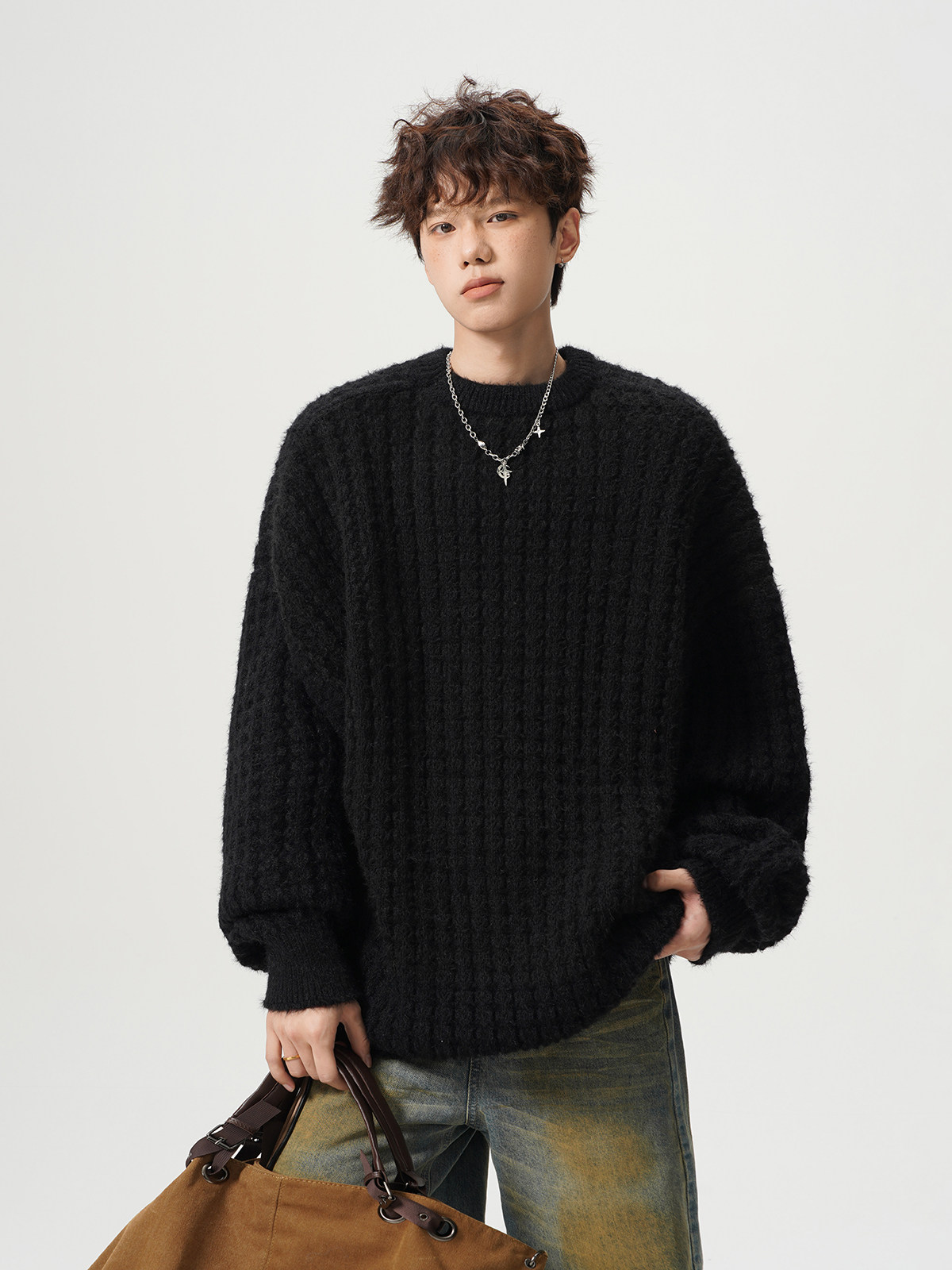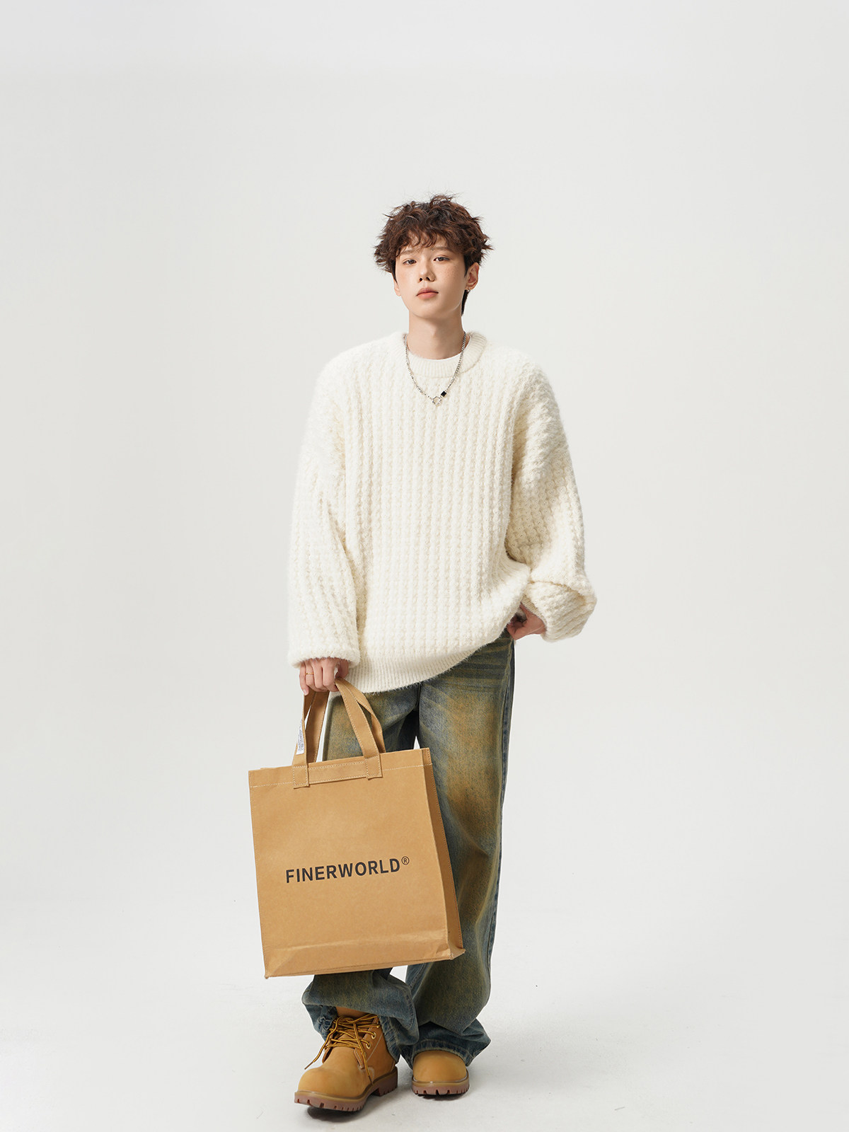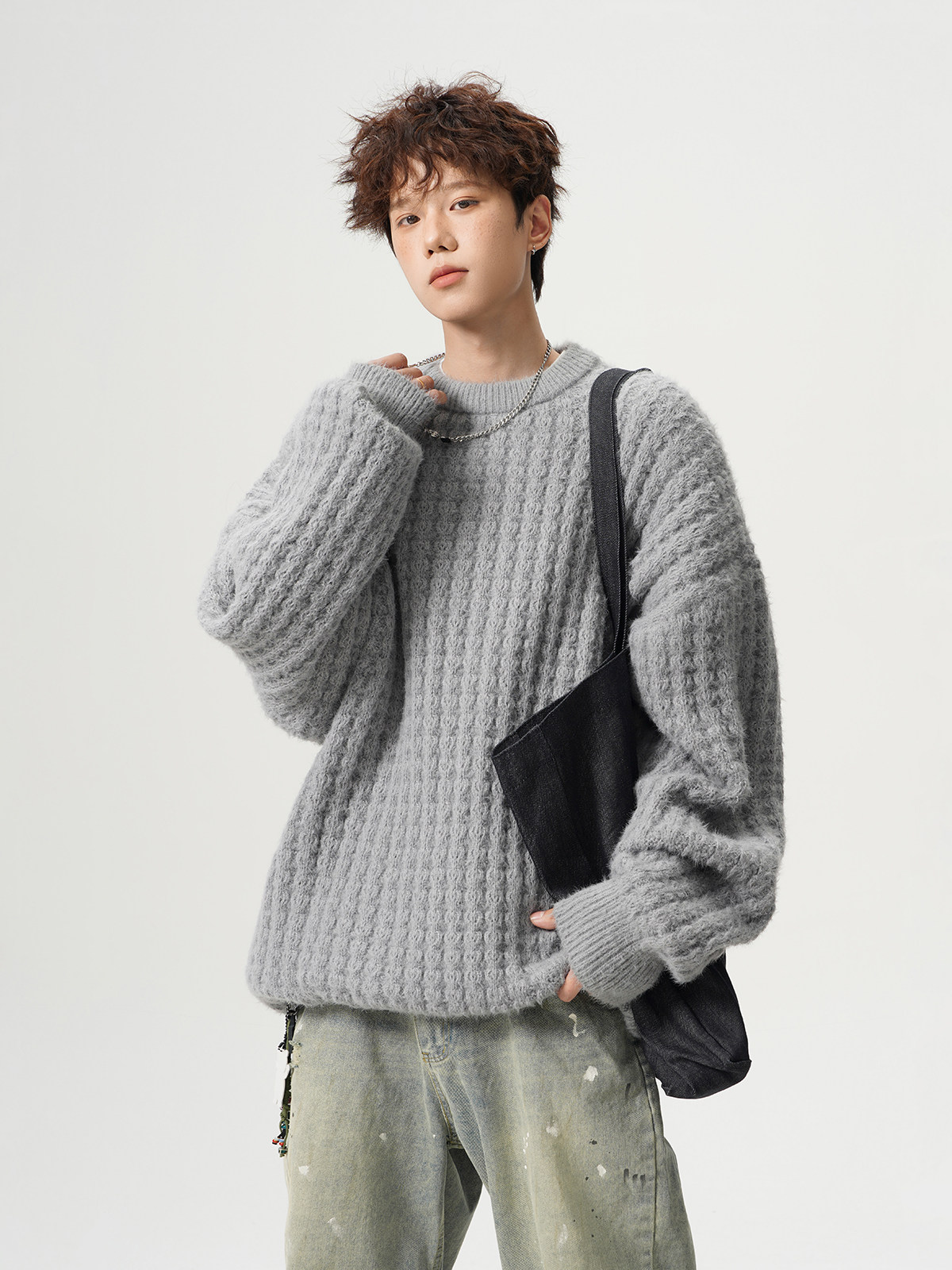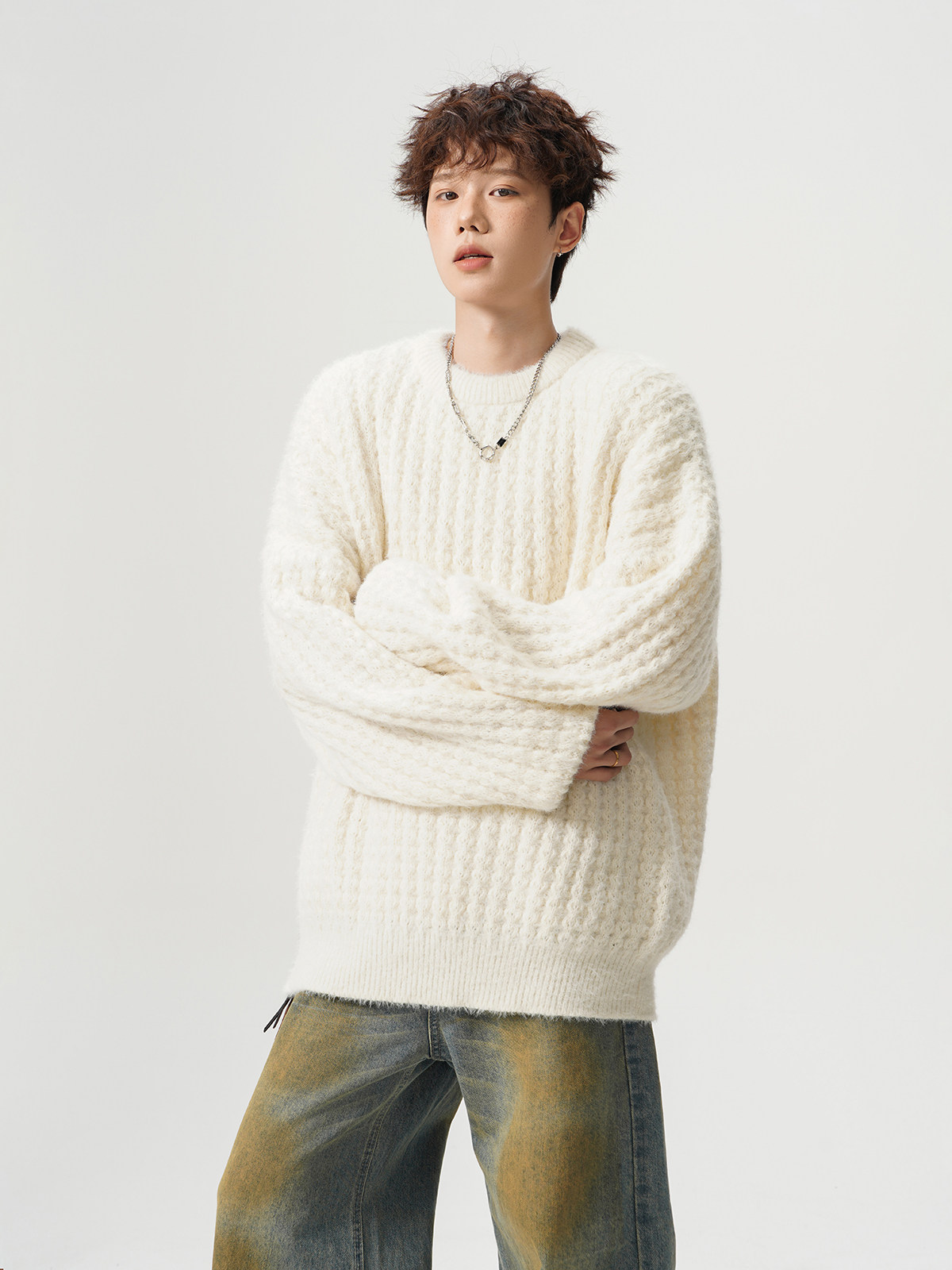 美式復古麻花圓領毛衣男秋季潮少年感針織衫外套寬鬆慵嬾風打底衫