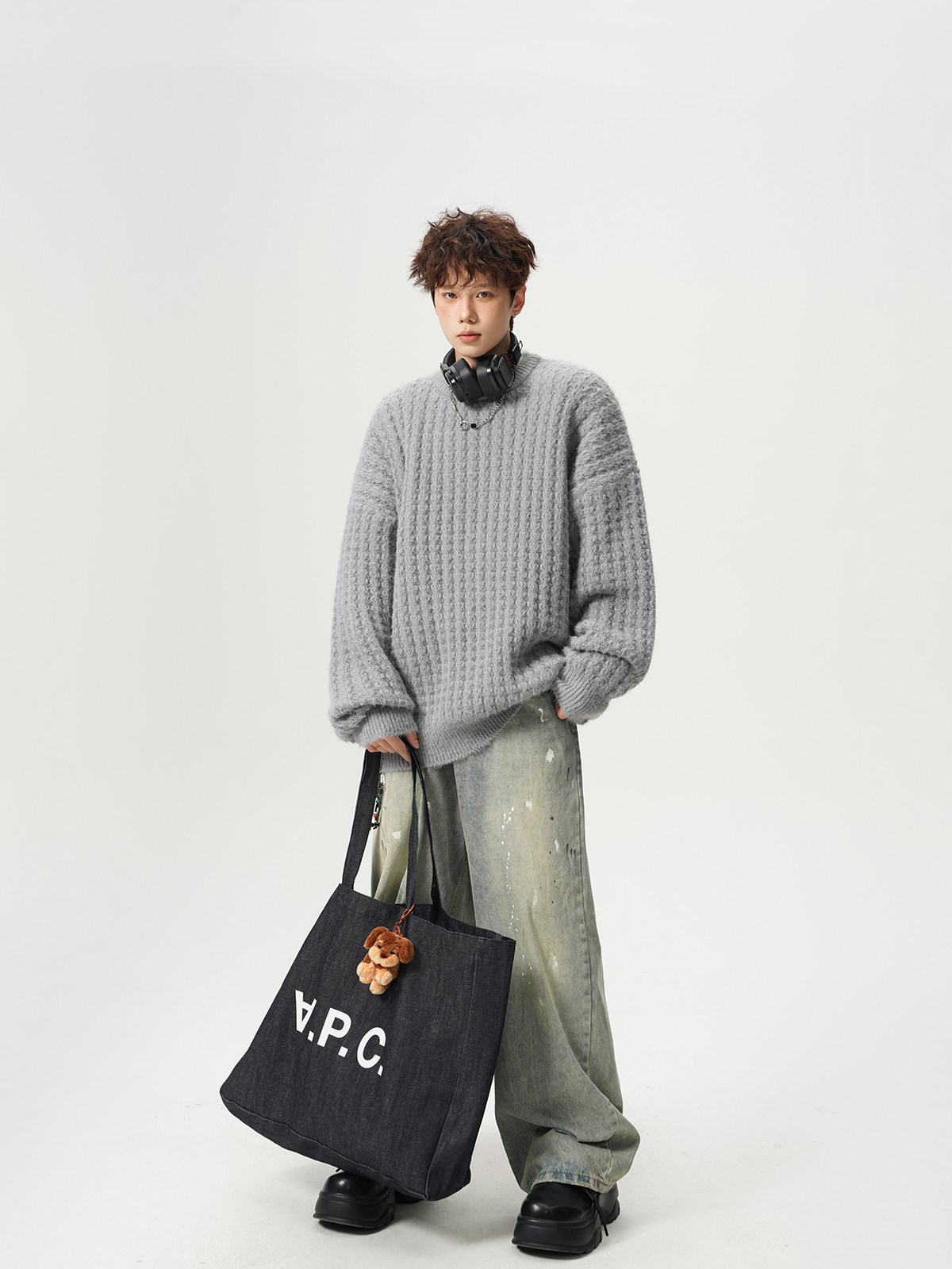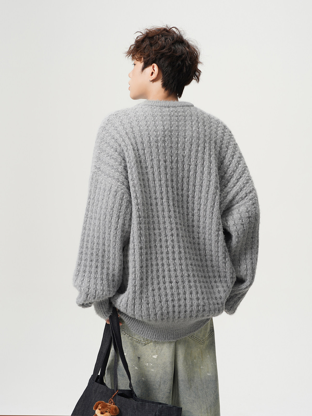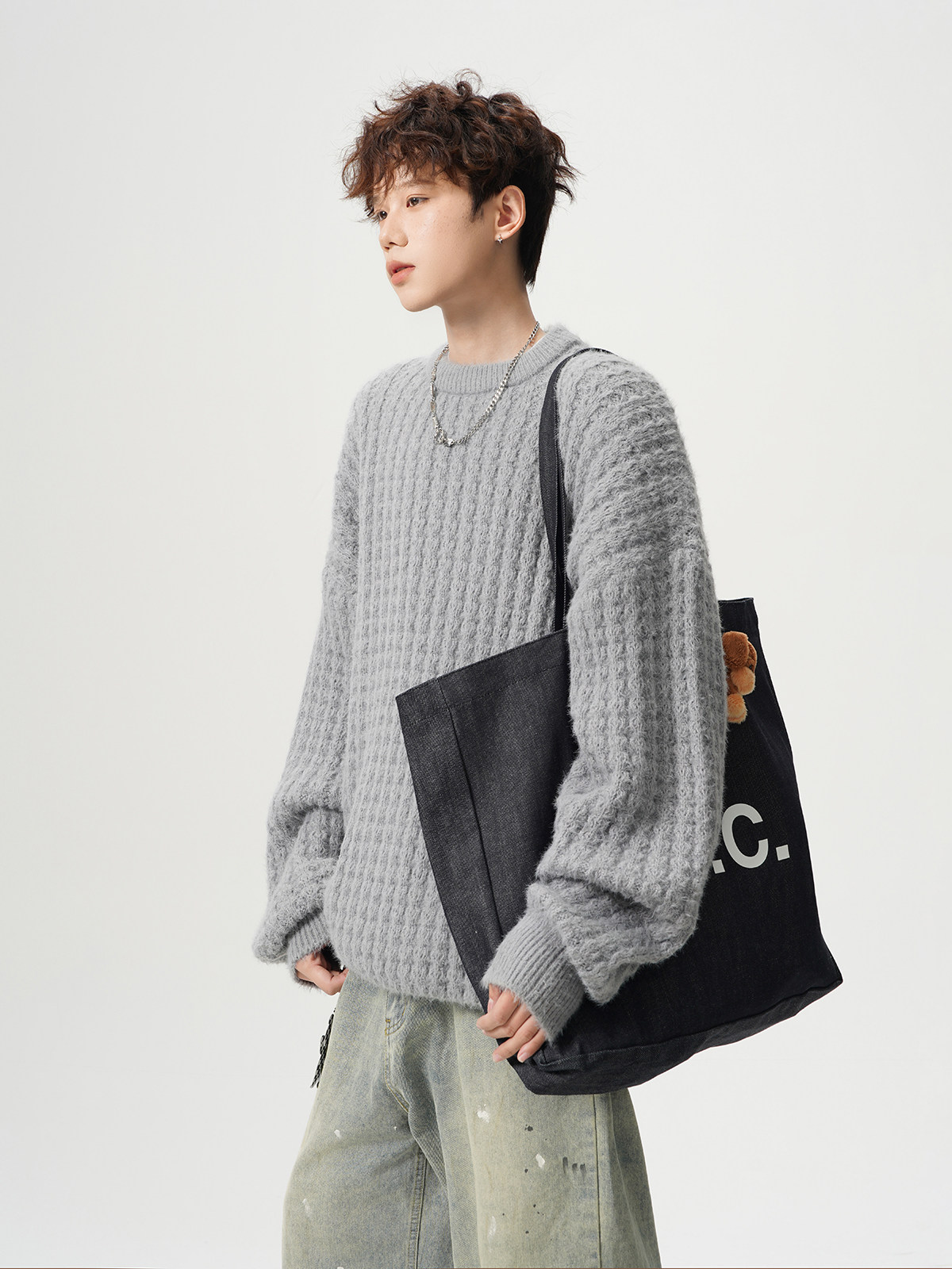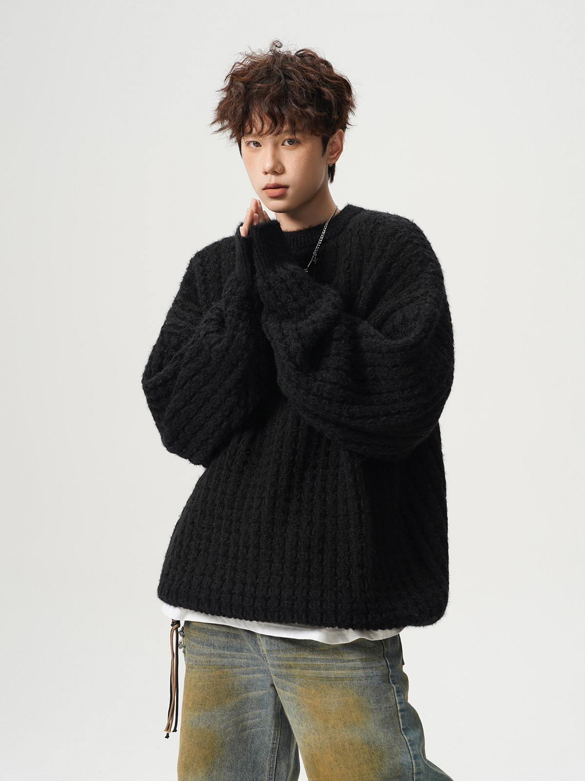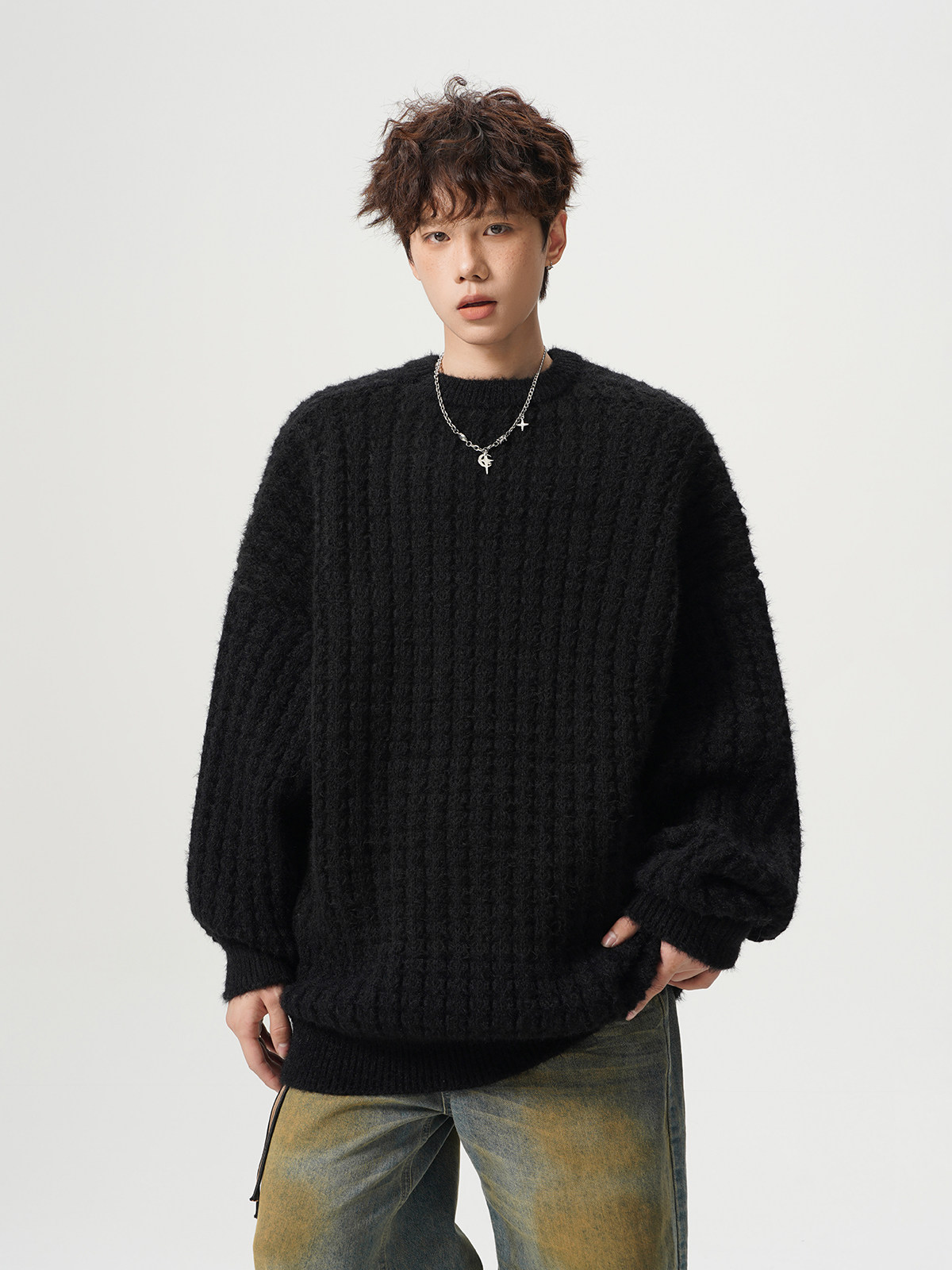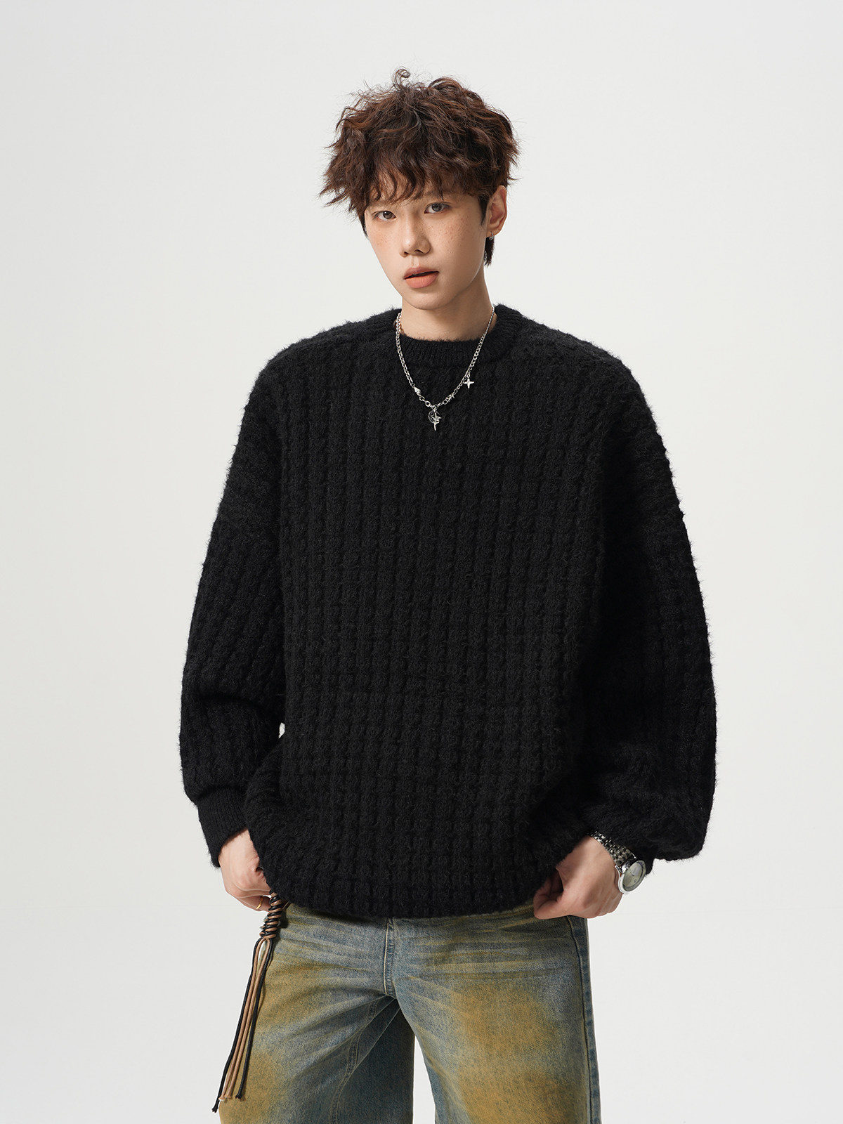 美式復古麻花圓領毛衣男秋季潮少年感針織衫外套寬鬆慵嬾風打底衫