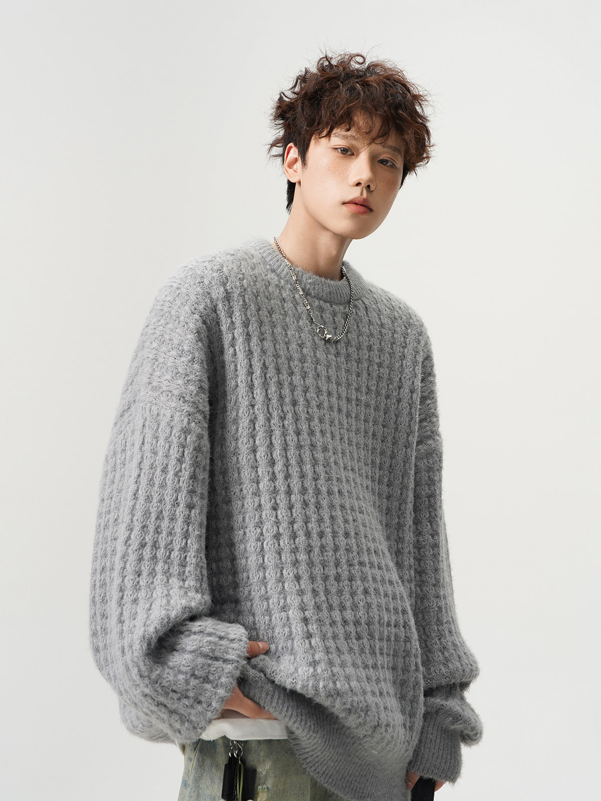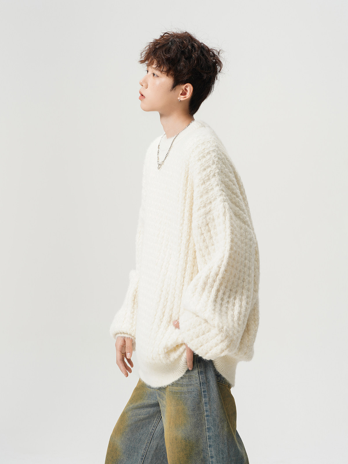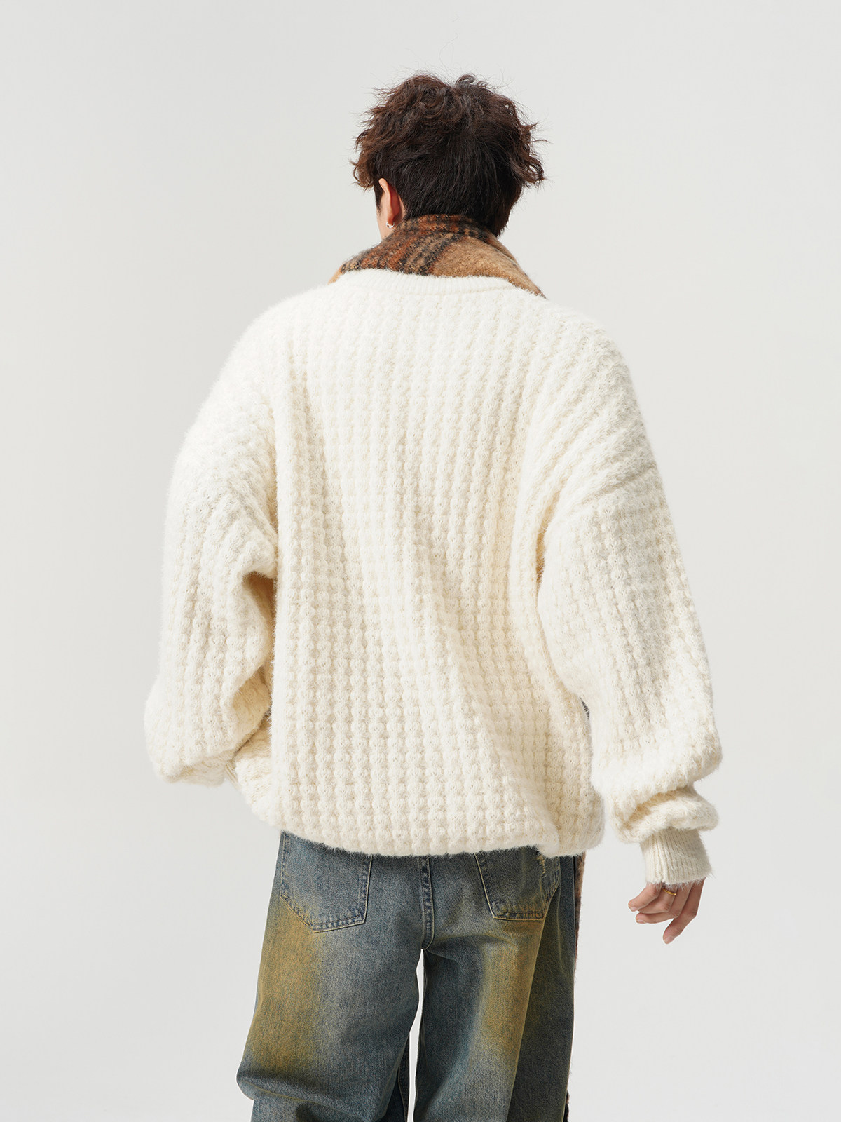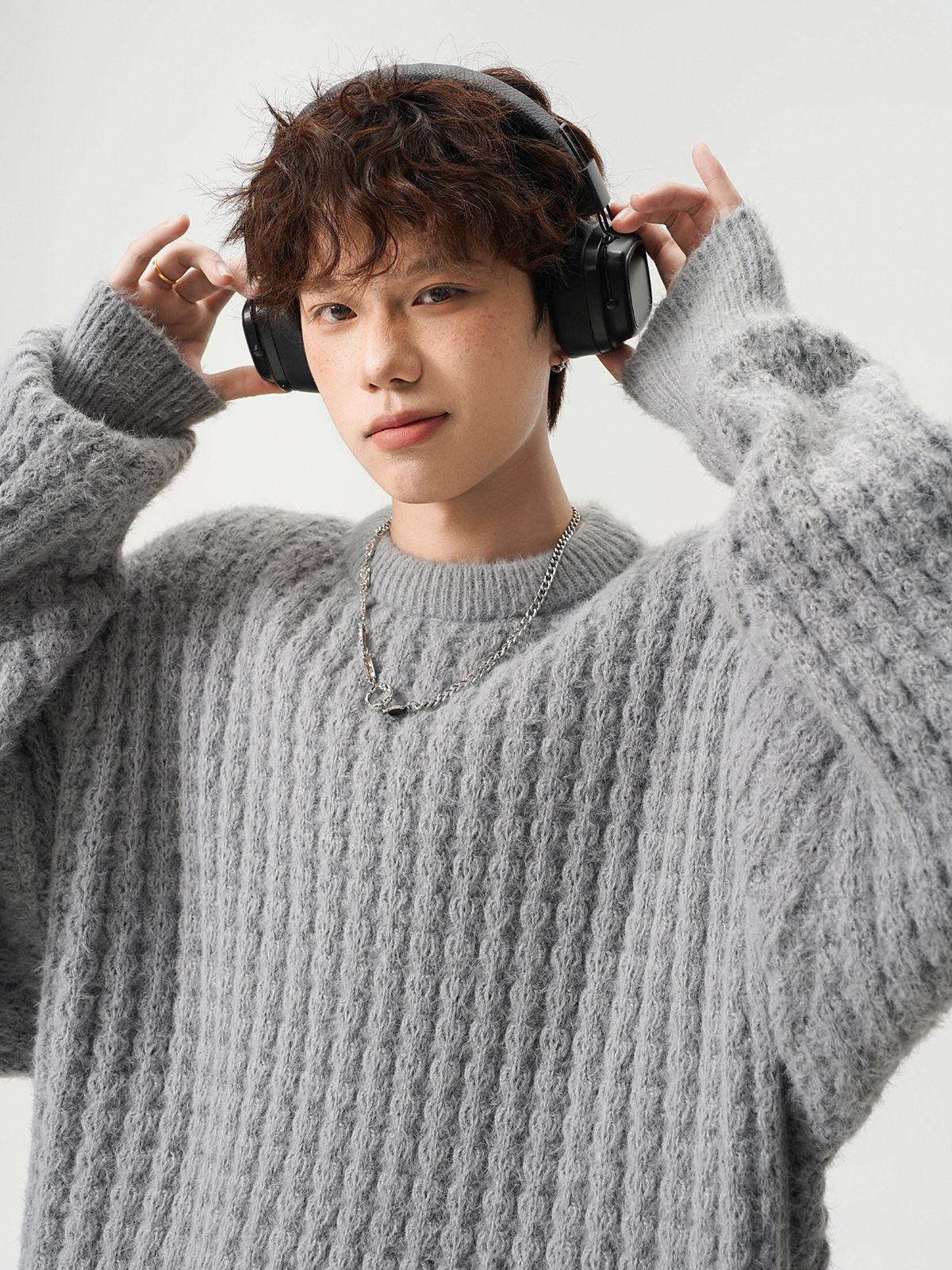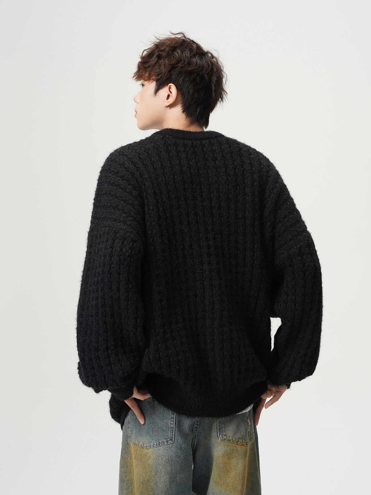 美式復古麻花圓領毛衣男秋季潮少年感針織衫外套寬鬆慵嬾風打底衫