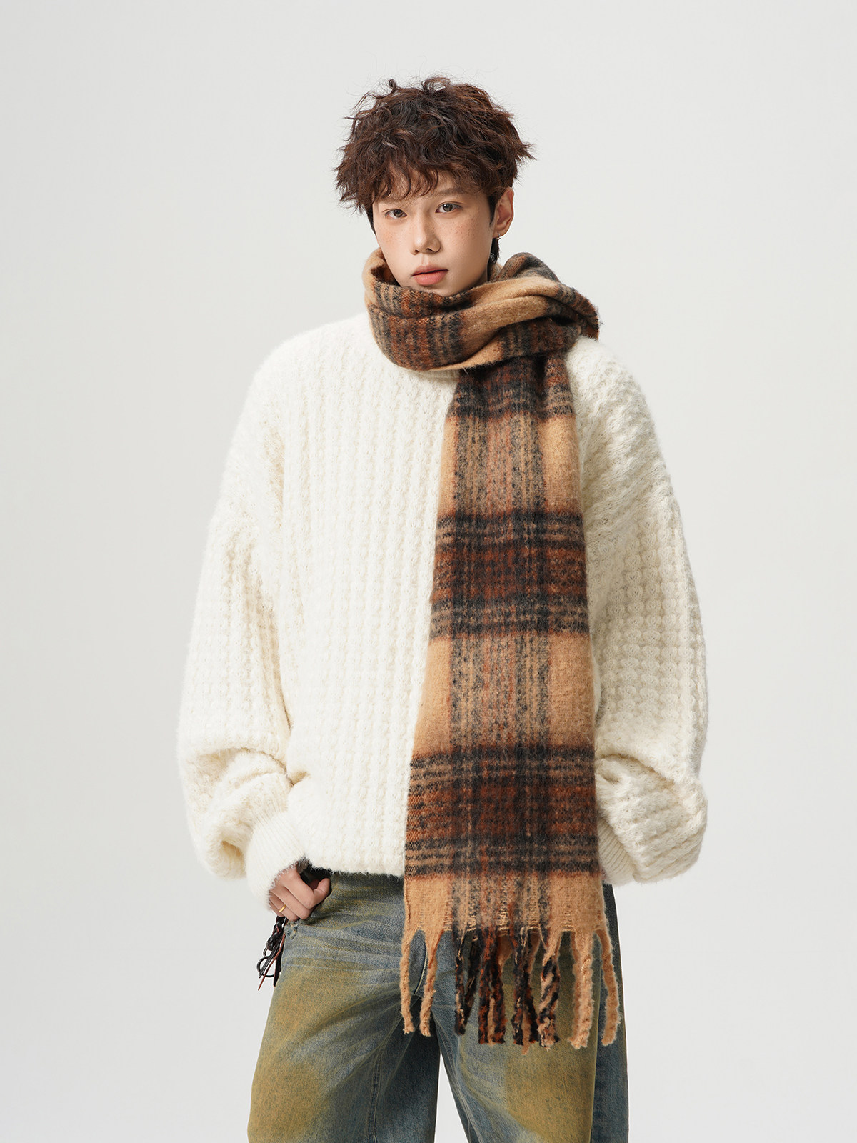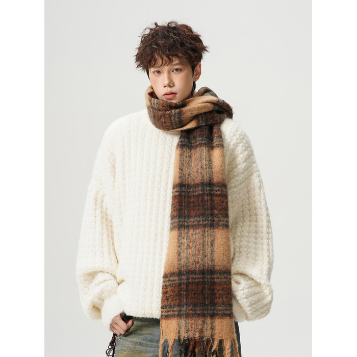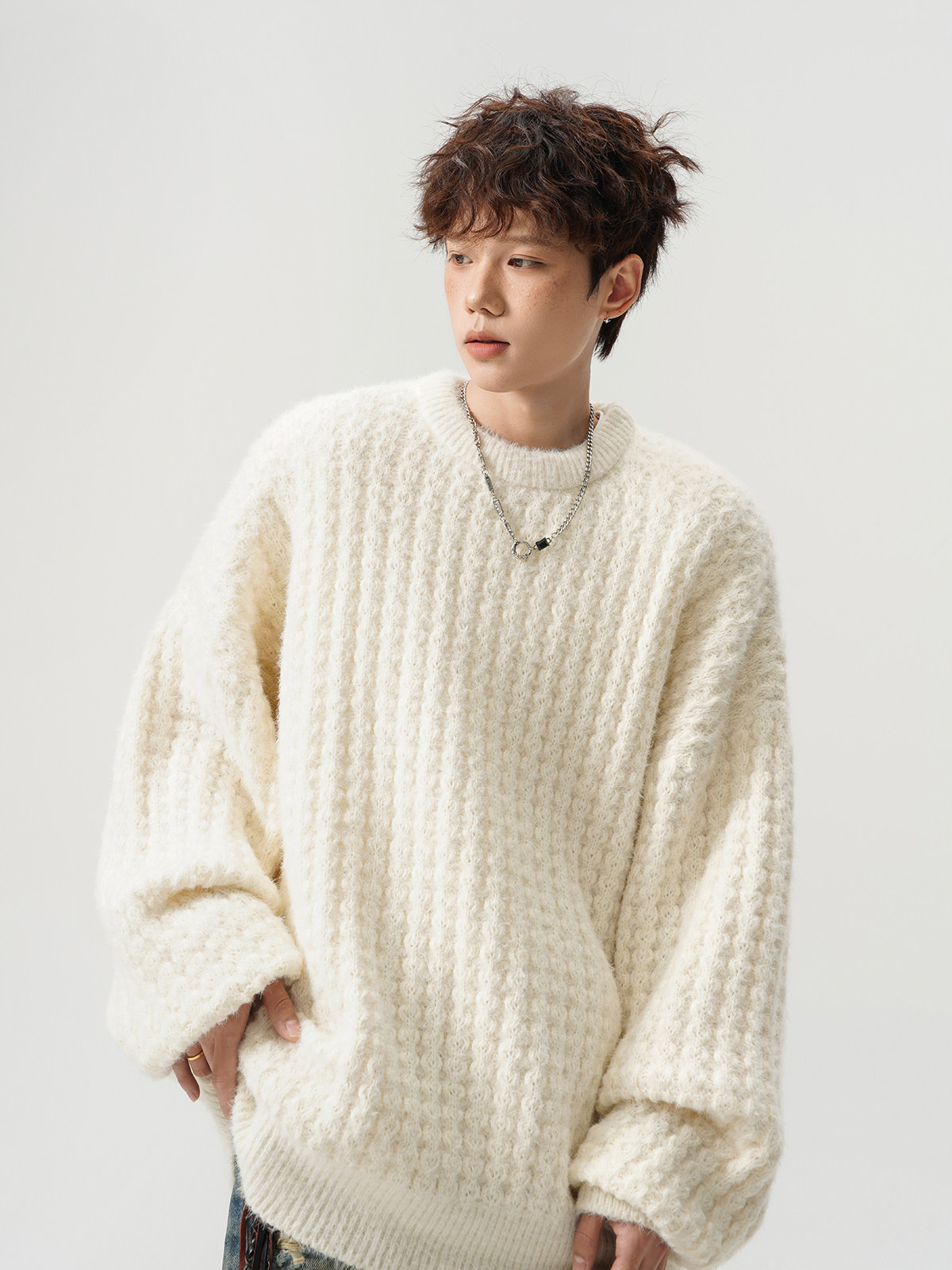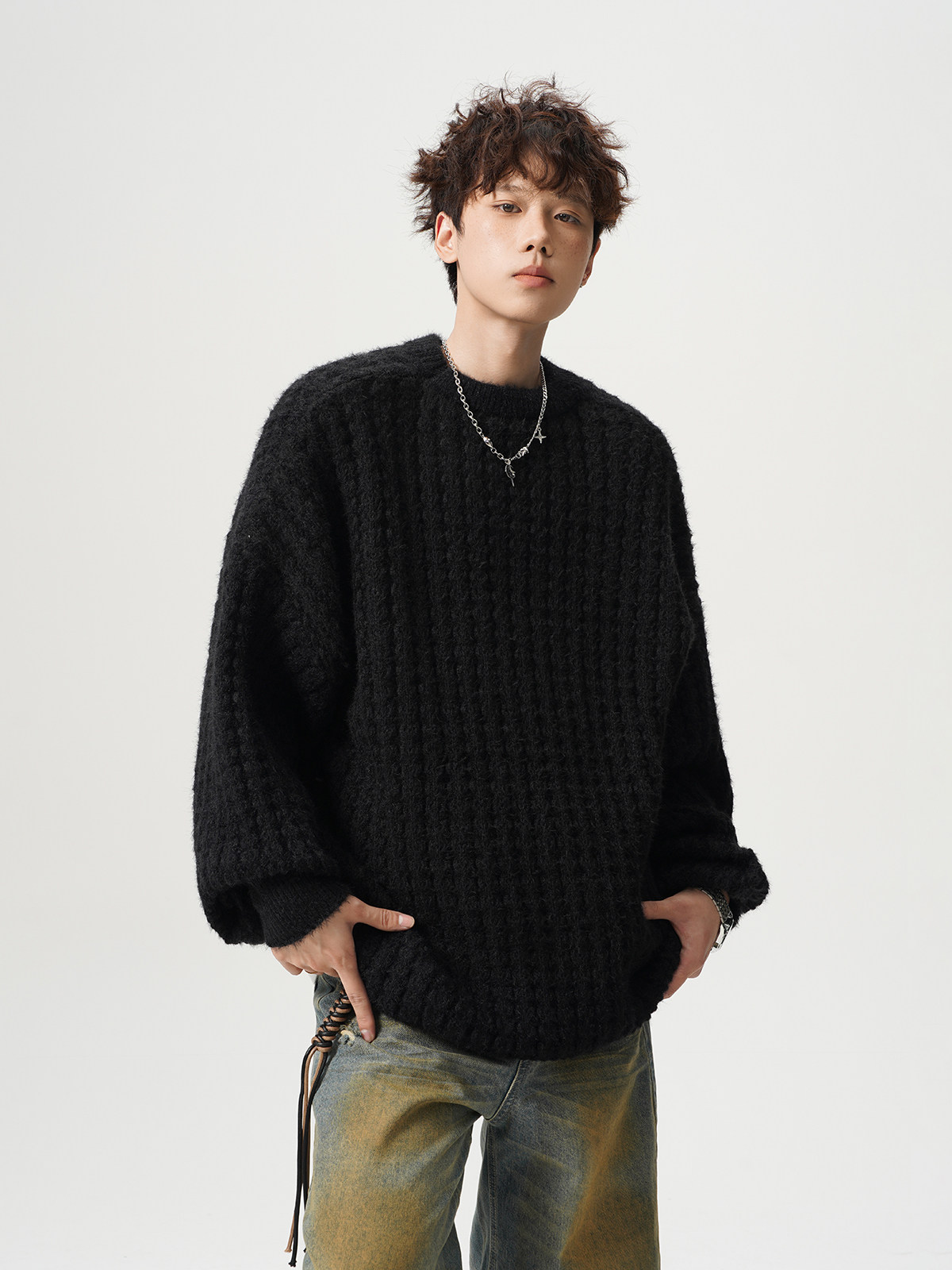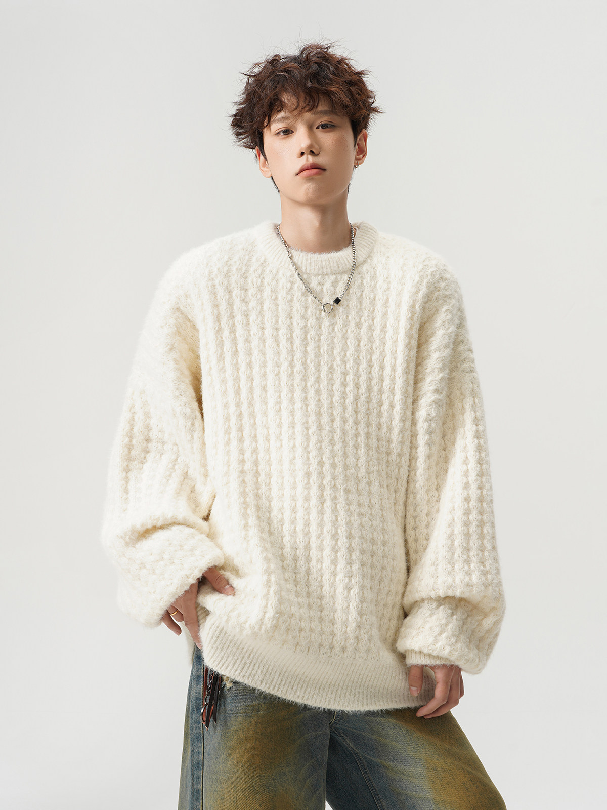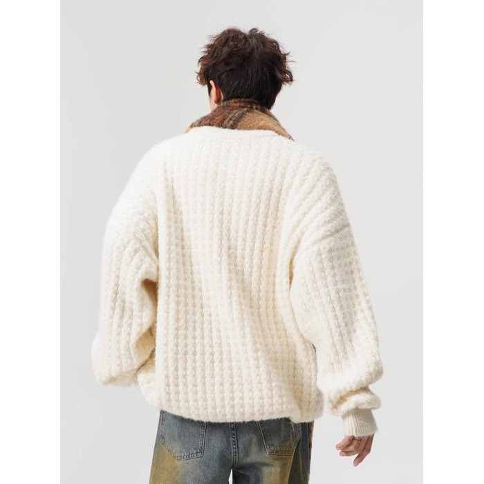 美式復古麻花圓領毛衣男秋季潮少年感針織衫外套寬鬆慵嬾風打底衫
