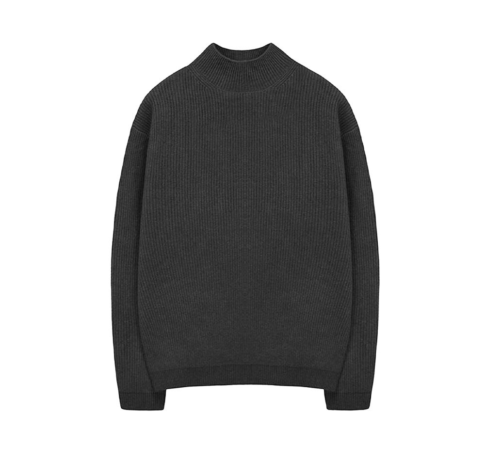 深灰色半高領毛衣男薄款高級感毛衫針織衫寬鬆中領內搭打底衫上衣