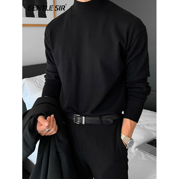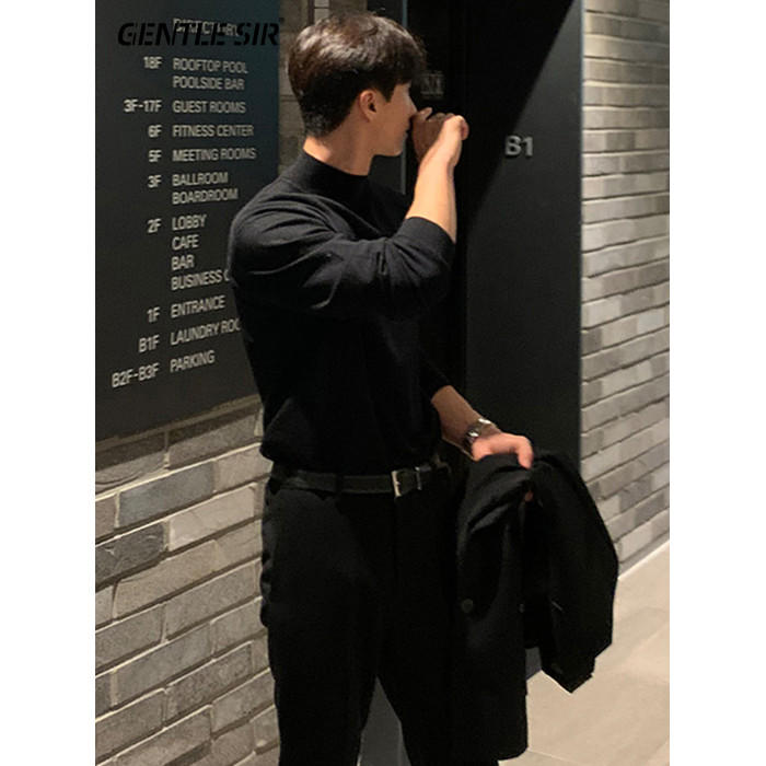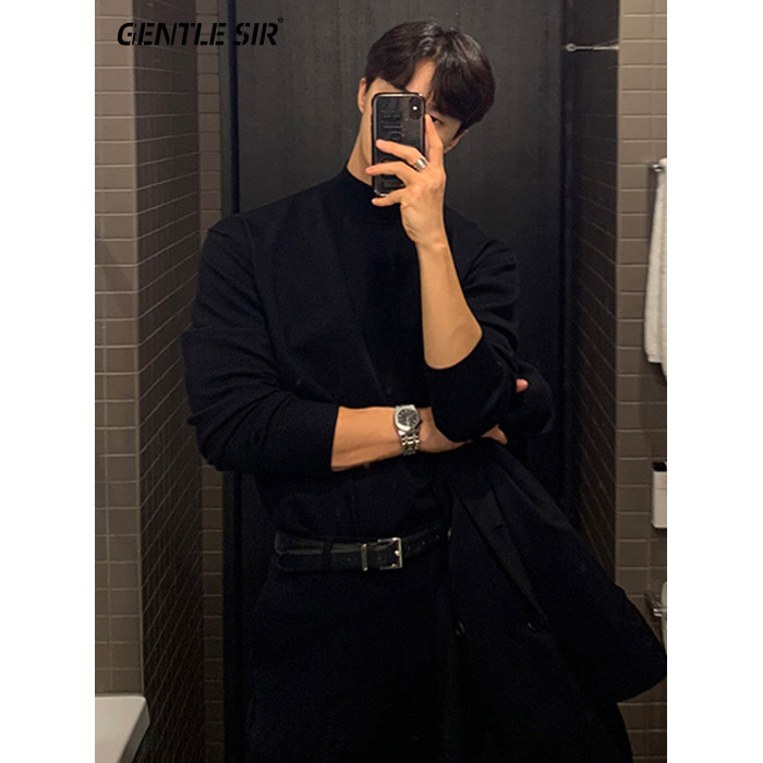 半高領毛衣男加厚慵嬾風中領打底秋冬春季潮流加絨內搭保暖針織衫