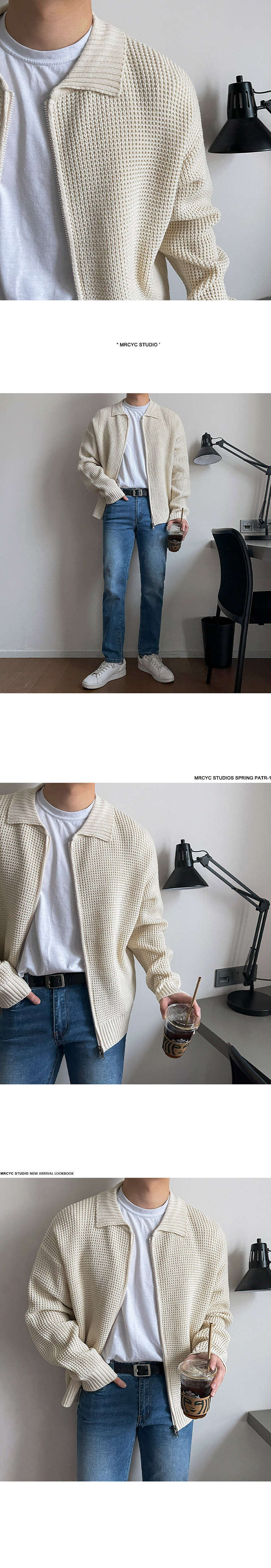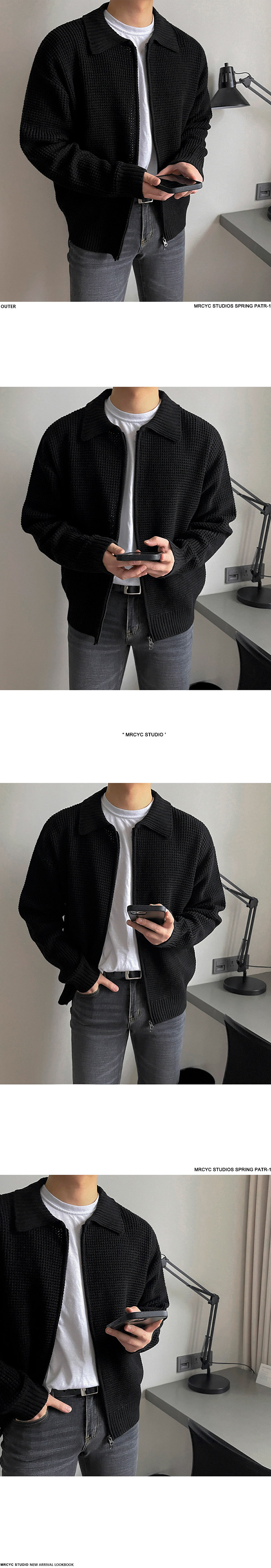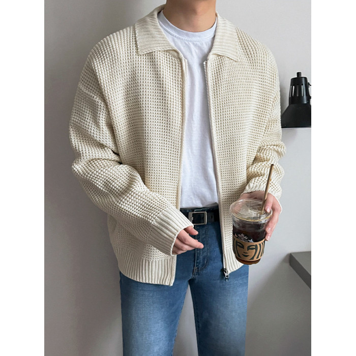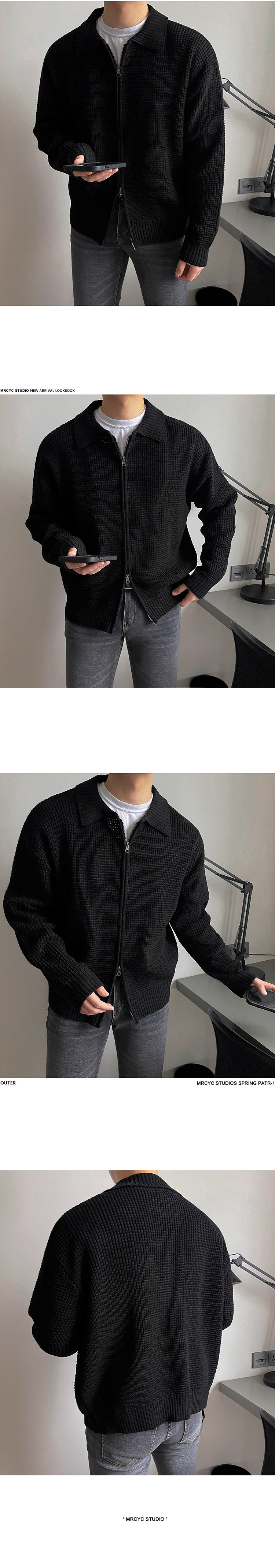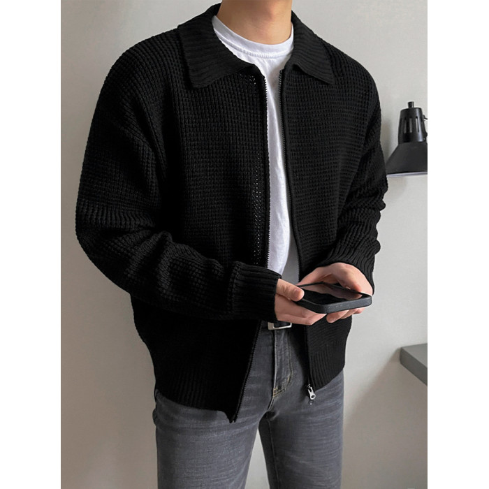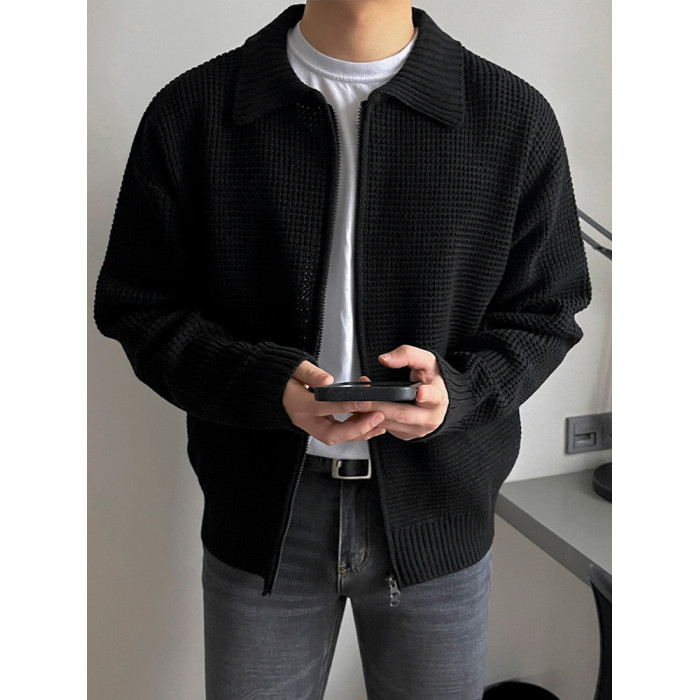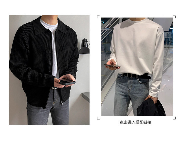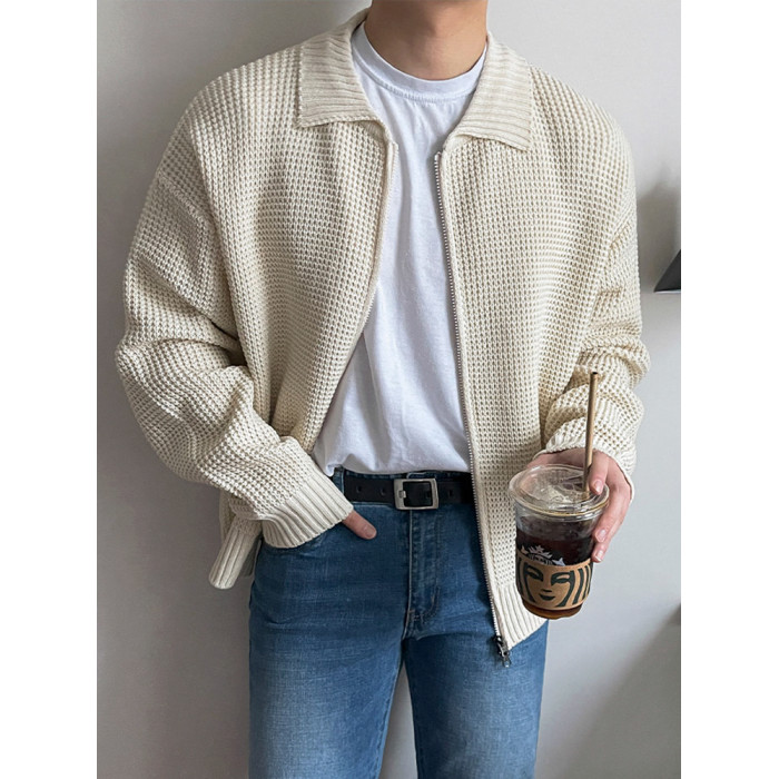 MRCYC繙領針織衫開衫男士秋季韓系潮流毛衣外套寬鬆休閒純色上衣