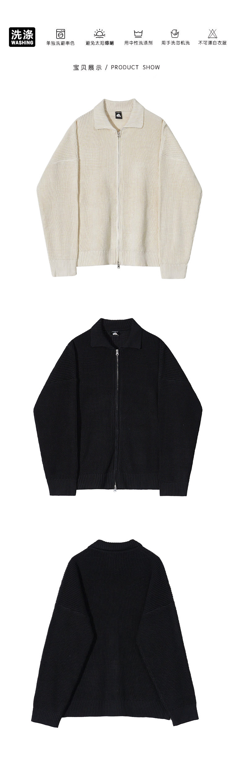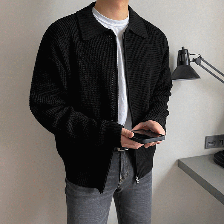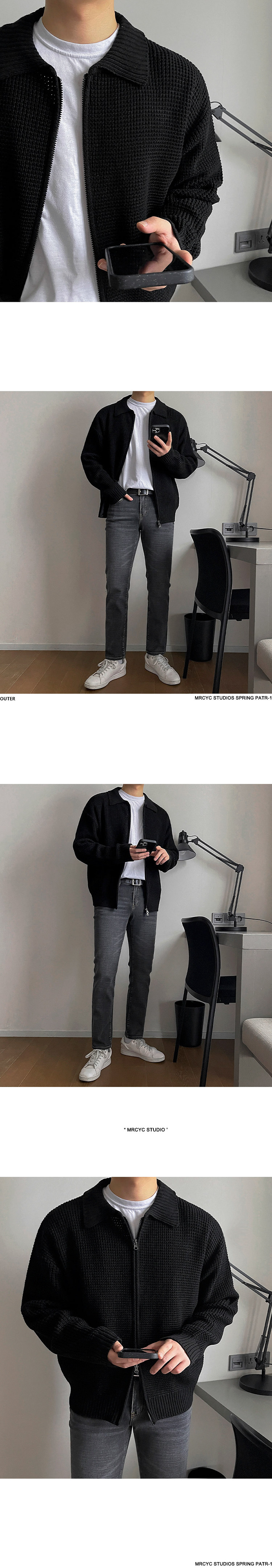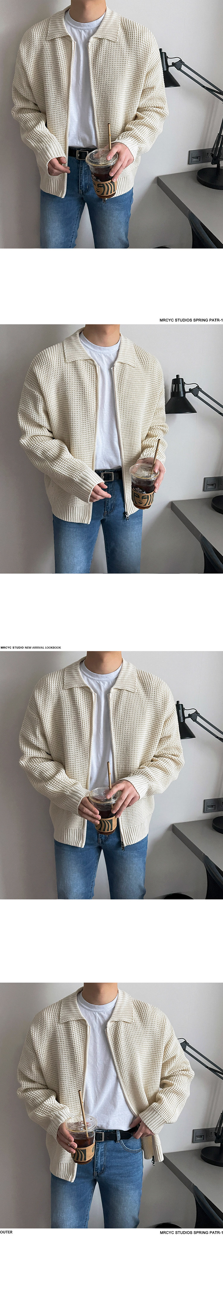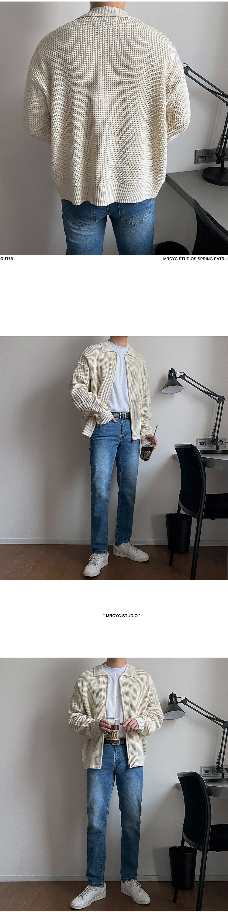 MRCYC繙領針織衫開衫男士秋季韓系潮流毛衣外套寬鬆休閒純色上衣
