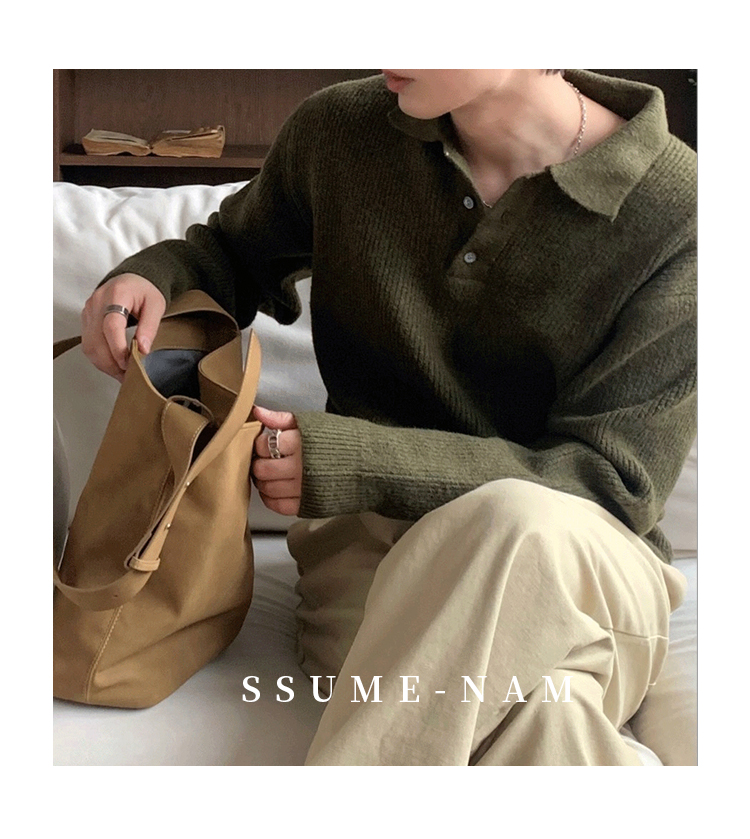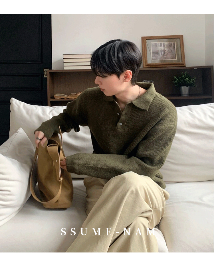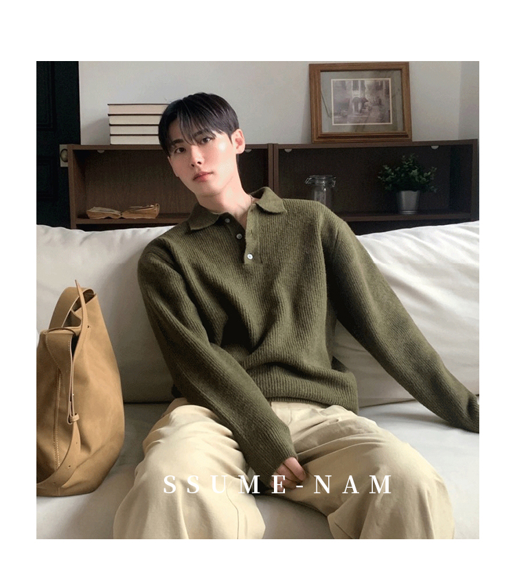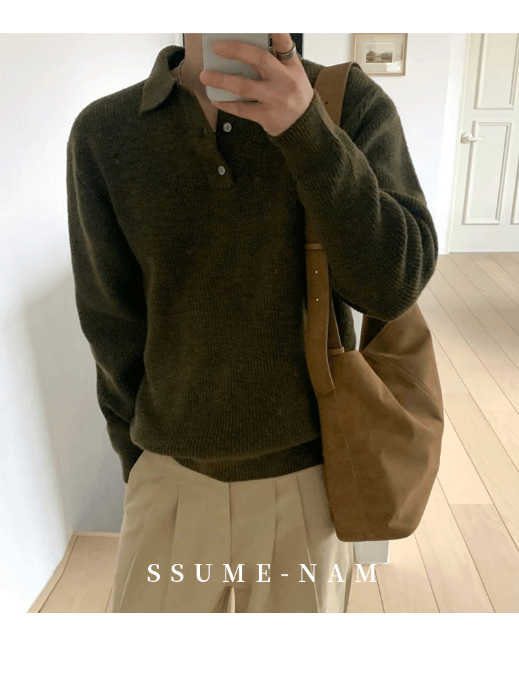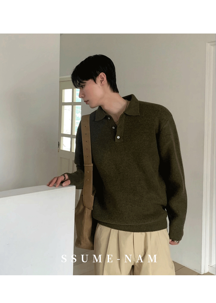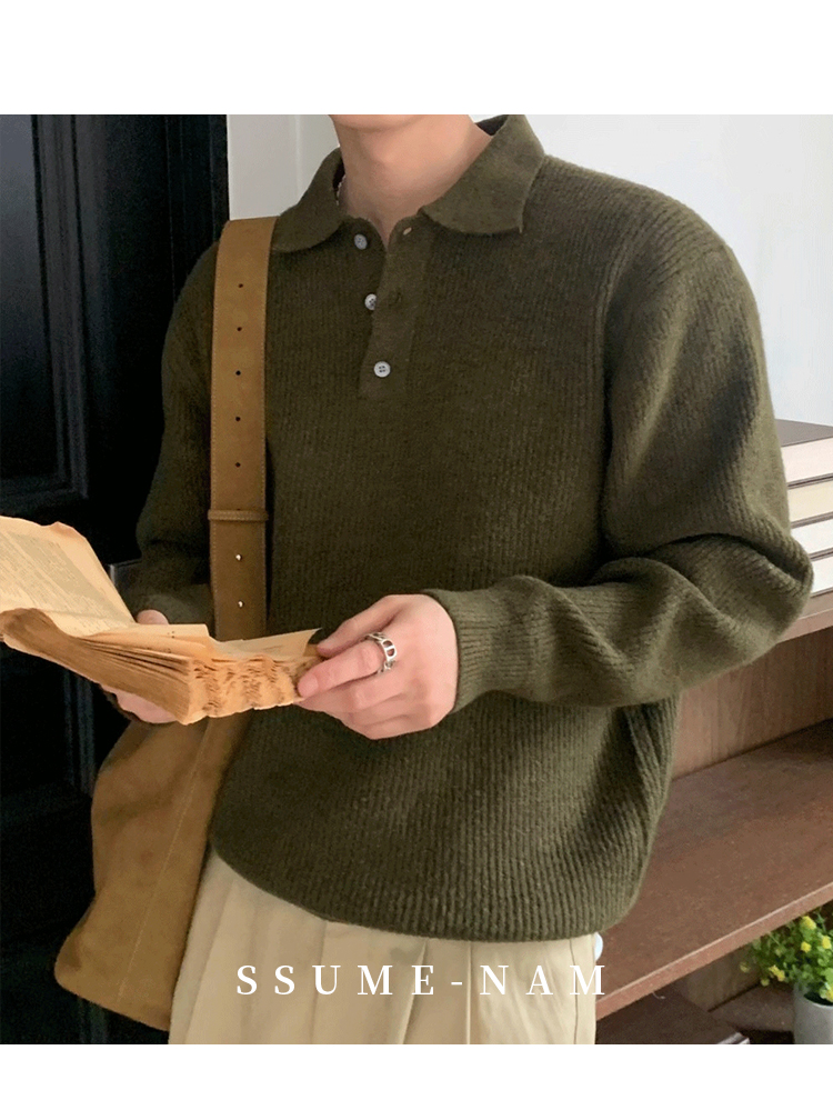 SSUMENAM「老錢風 紋理感 」polo領毛衣男秋冬季寬松翻領針織衫