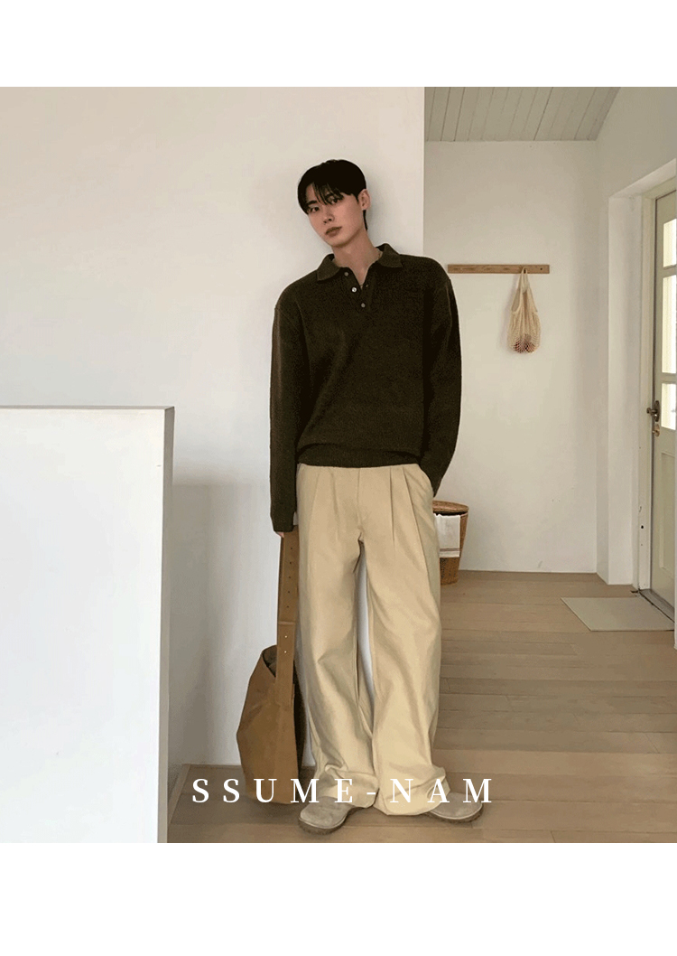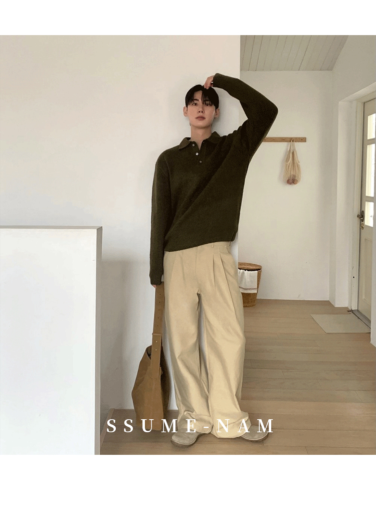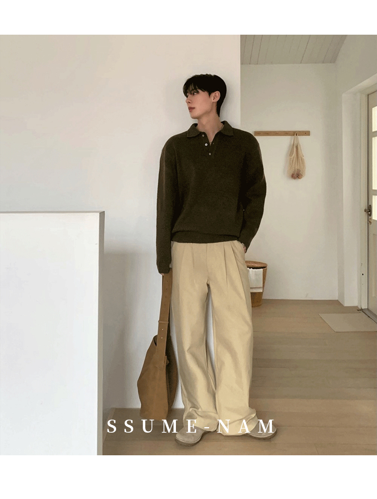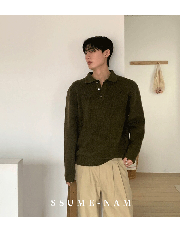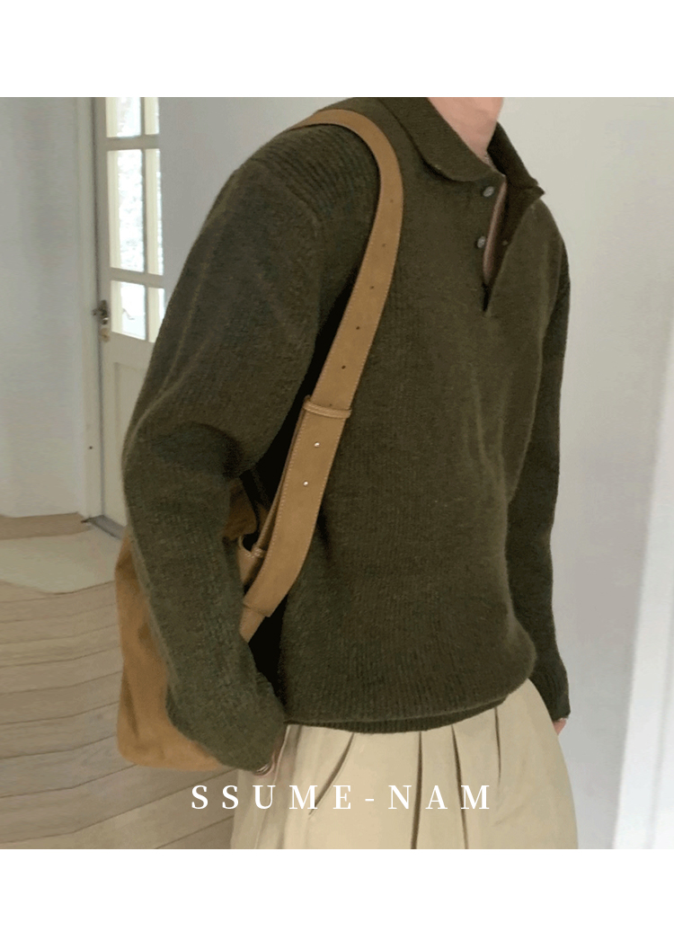 SSUMENAM「老錢風 紋理感 」polo領毛衣男秋冬季寬松翻領針織衫