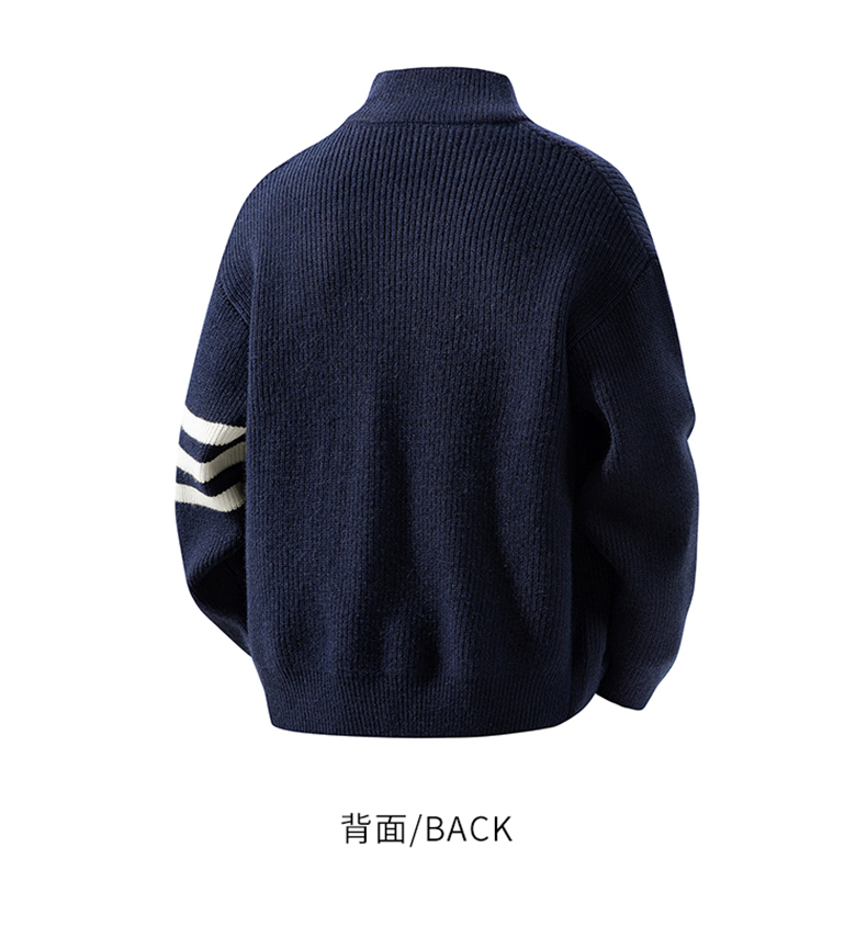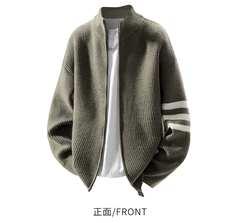 WASSUP KRISH條紋立領慵懶開衫毛衣男秋季休閒寬松輕熟風針織外套