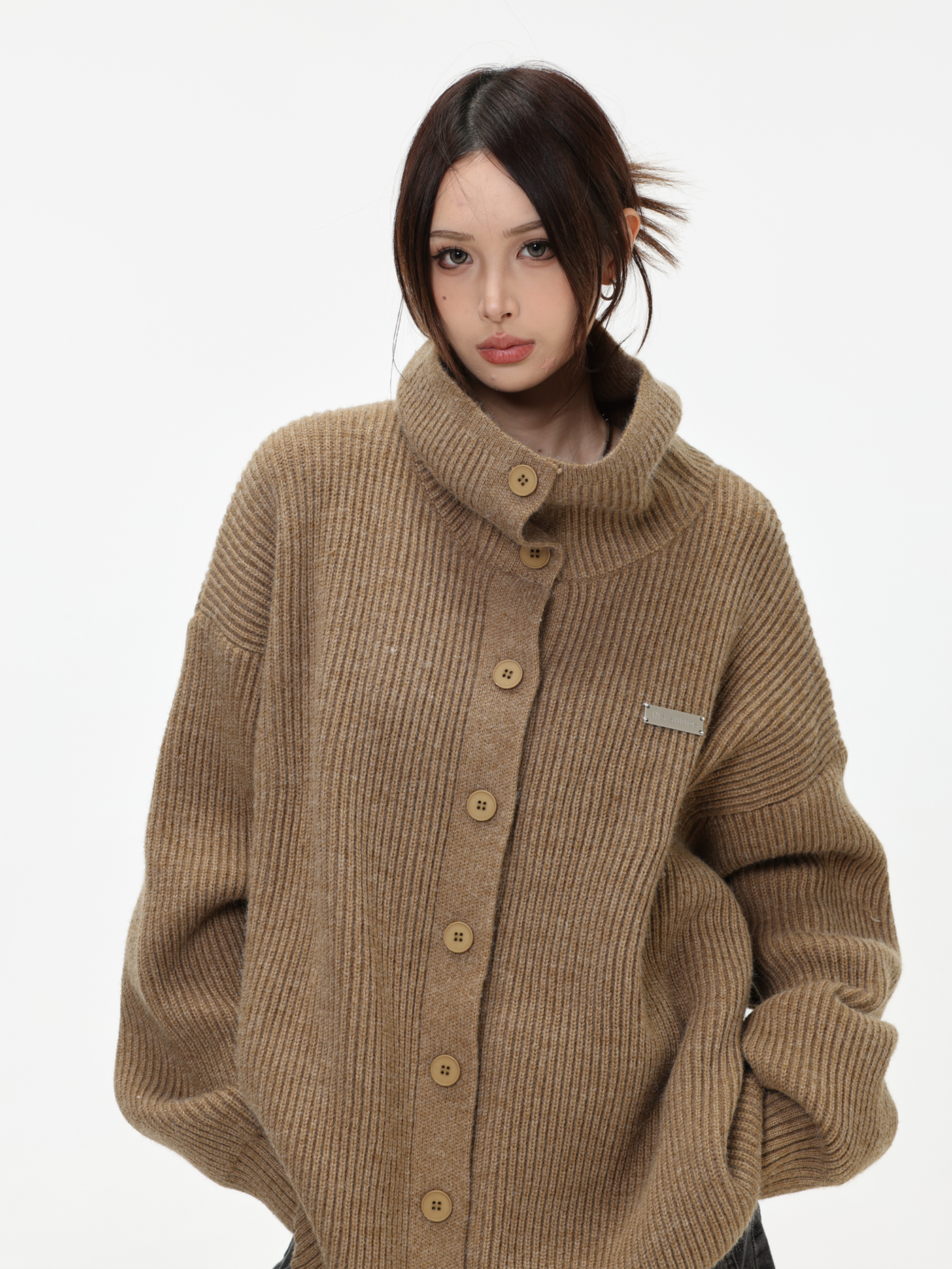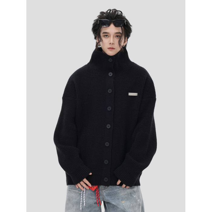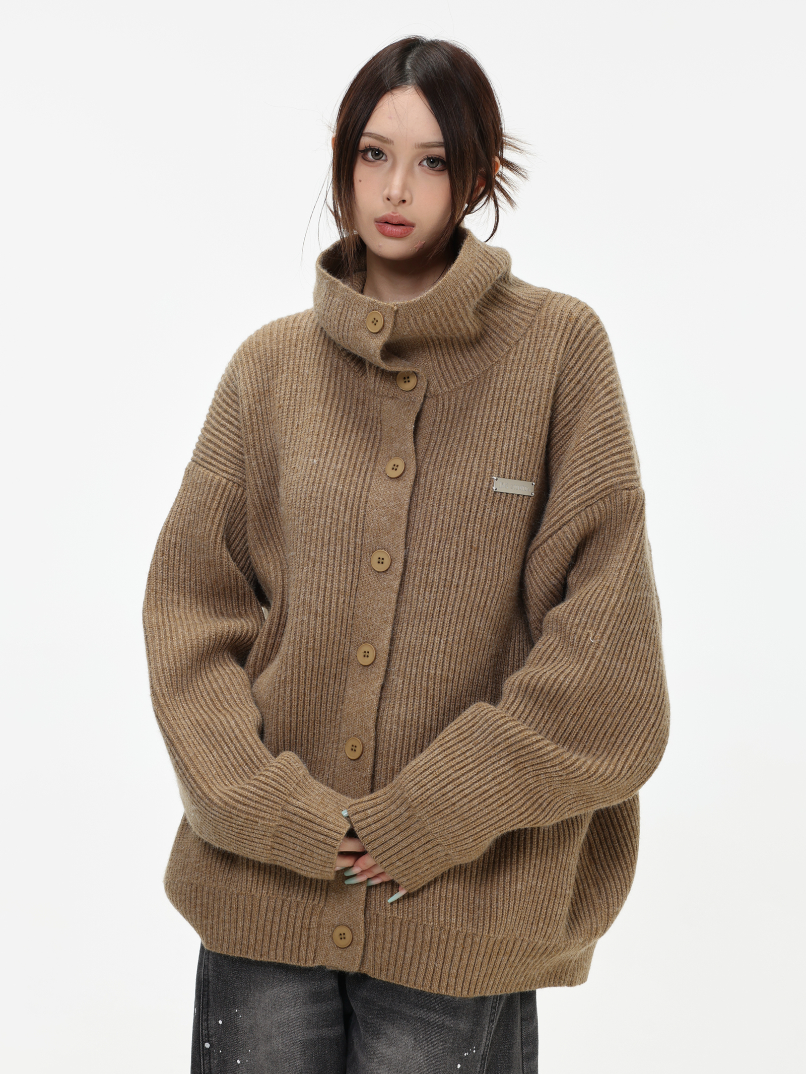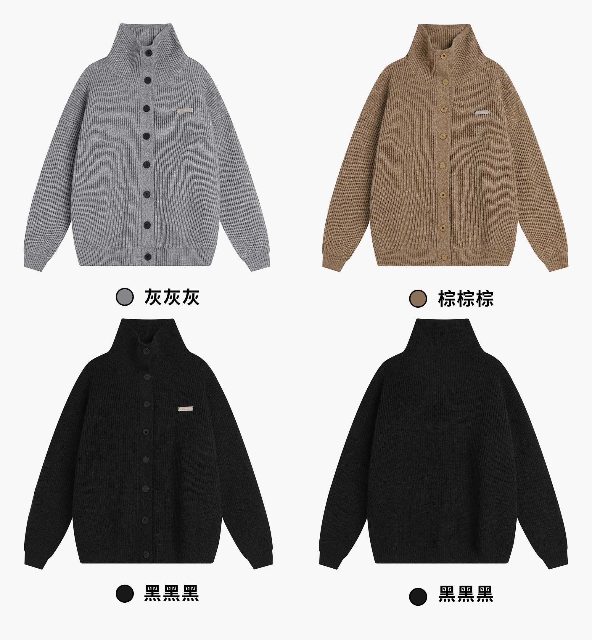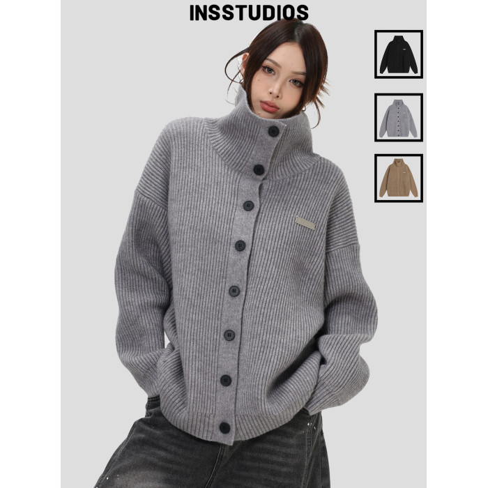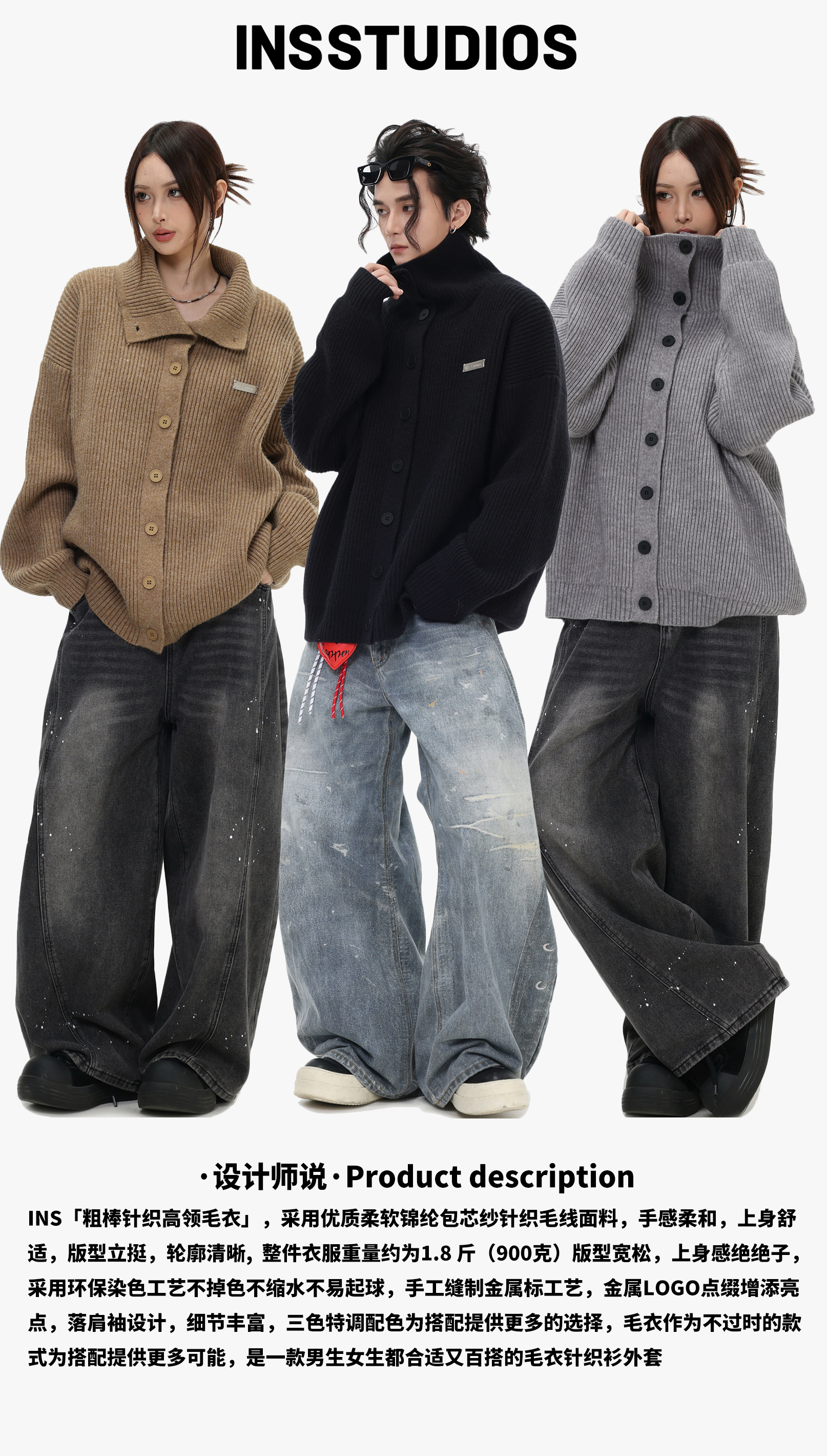 INSstudios 國潮情侶美式「粗棒針織高領毛衣」寬松開衫上衣外套